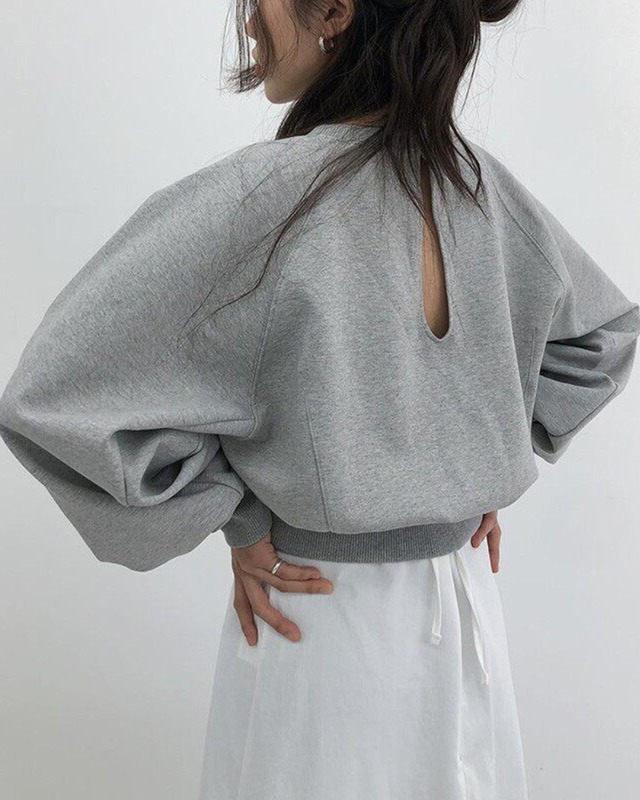 バックスタイルにさりげないスリットデザインを施した、ショート丈スウェットトップス。丸みのあるボリューム袖とコンパクトな丈感がバランス良く、スタイルアップ効果のあるシルエットです。シンプルなフロントデザインに対し、後ろ姿で差がつく一枚。スカートやワイドパンツとも相性が良く、カジュアルながらも洗練された印象で着用できます。 【size】 F 肩幅38cm / 胸囲98cm / 着丈50cm 注意事項 手作業による計測のため実際のサイズと1~3cm程度の誤差がある場合がございます。 【color】グレー お届けについて こちらの商品は海外より直接発送となるため、ご入金から2~4週間前後で発送いたします。 ※不良があった場合、良品交換のためお時間をいただくことがございます。 ご購入前に必ずこちらをお読みください https://official.velion-store.com/about ▶ 他のカットソーを見る https://official.velion-store.com/categories/7182349 ▶ 全ての商品を見る https://official.velion-store.com/categories/7182322 #バックデザイン #ショートスウェット #ボリューム袖 #グレートップス #モードカジュアル