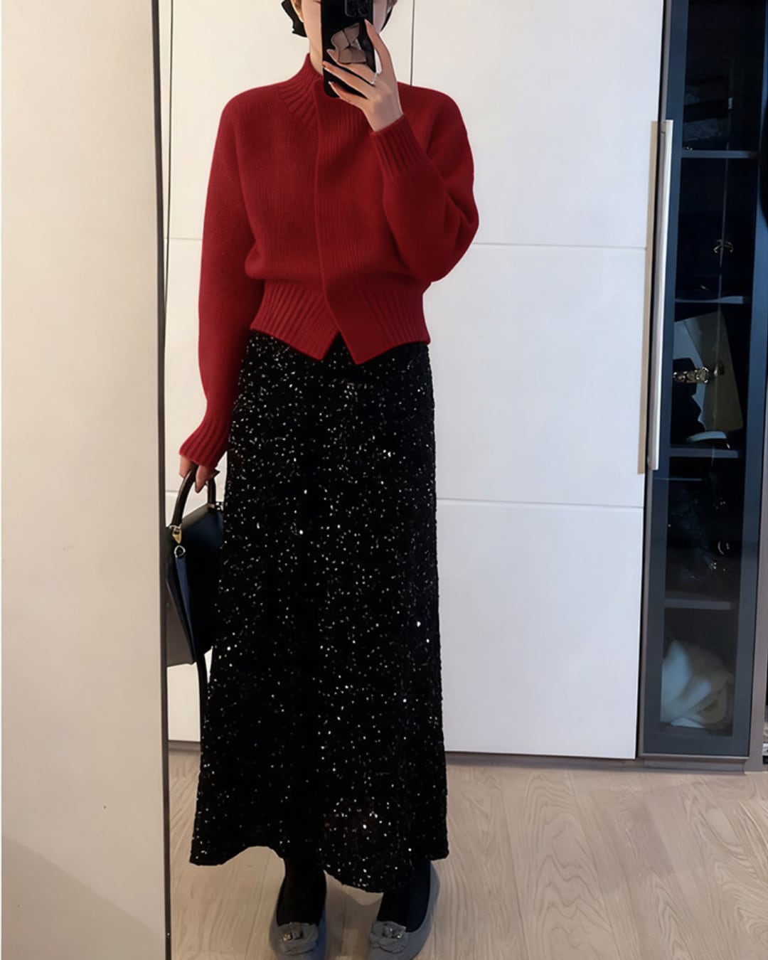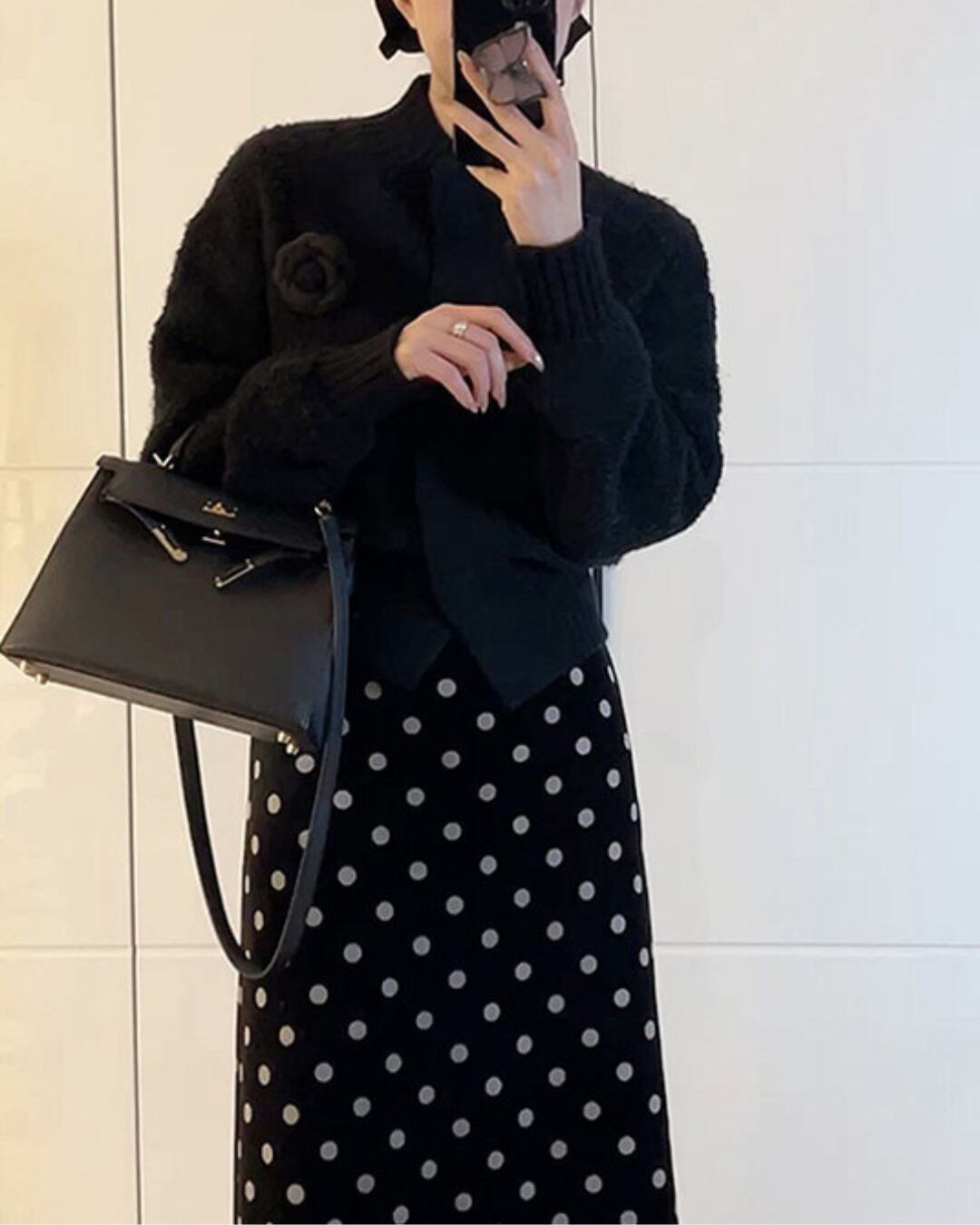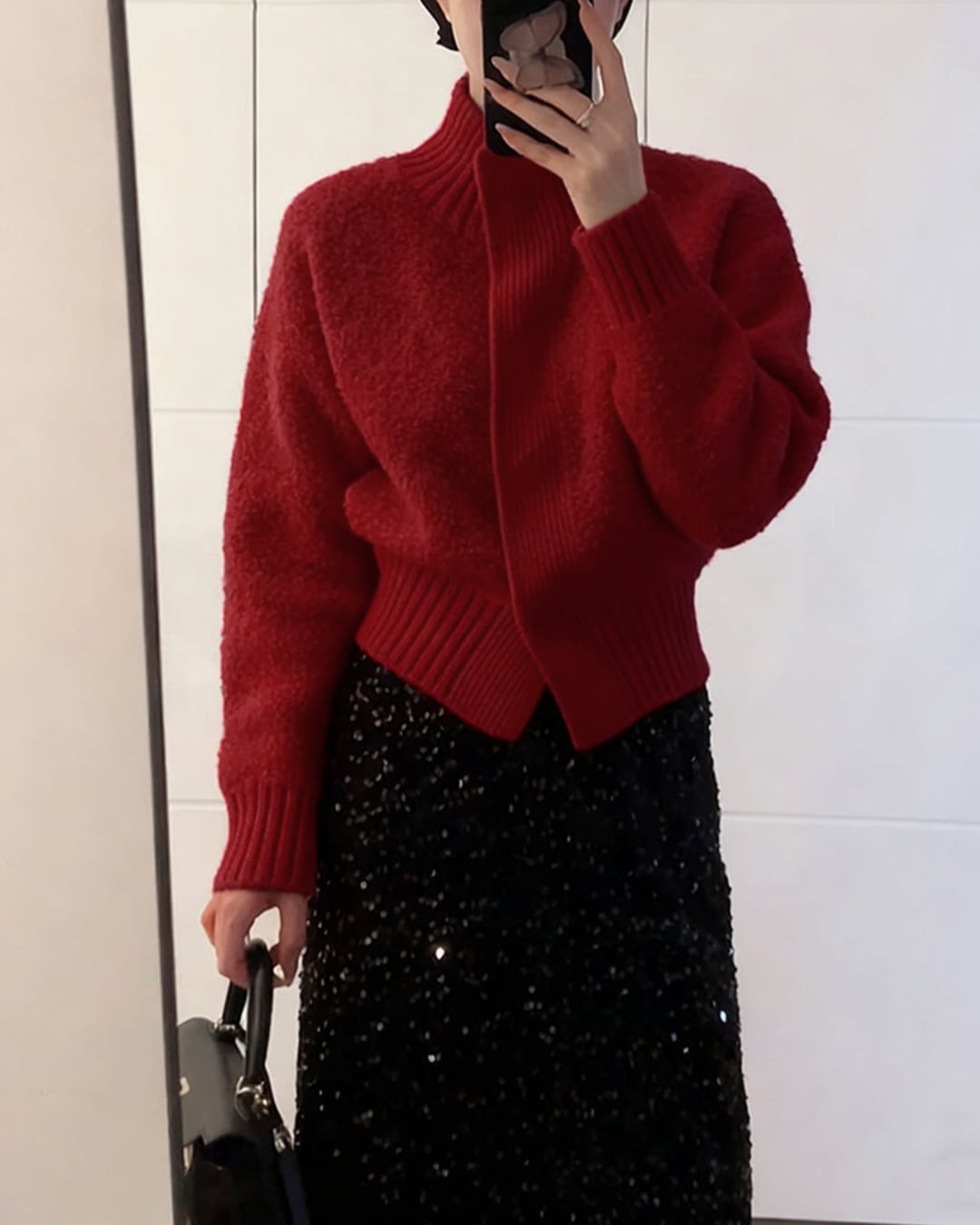 #ショート丈 #カーディガン #立ち襟 #ニットトップス #ボリューム袖 #あったかコーデ