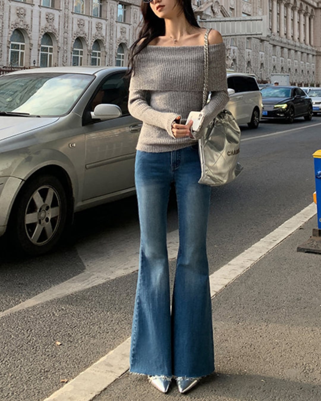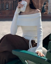 #オフショルダー #リブニット #大人フェミニン #スリムフィット #長袖トップス #秋冬コーデ