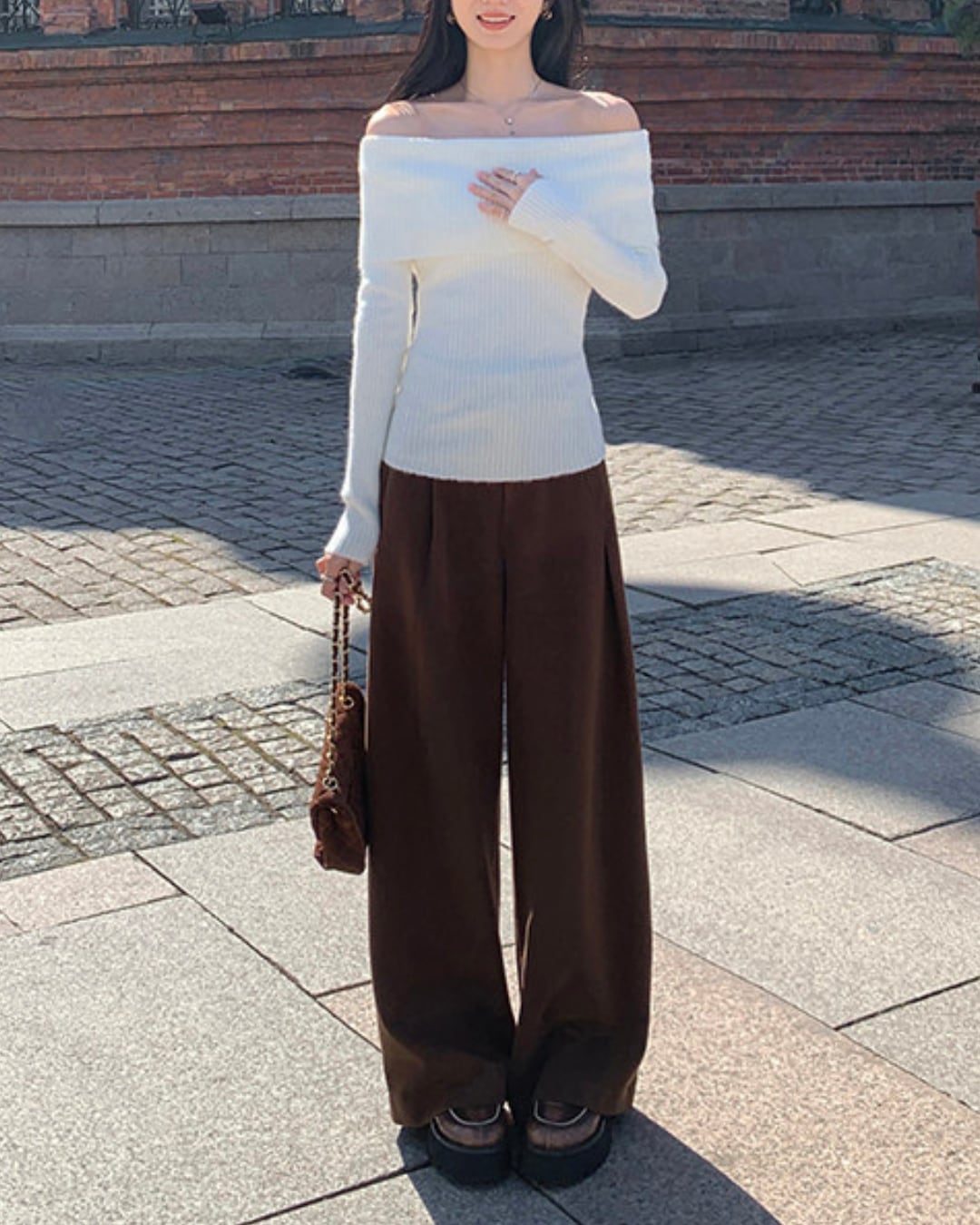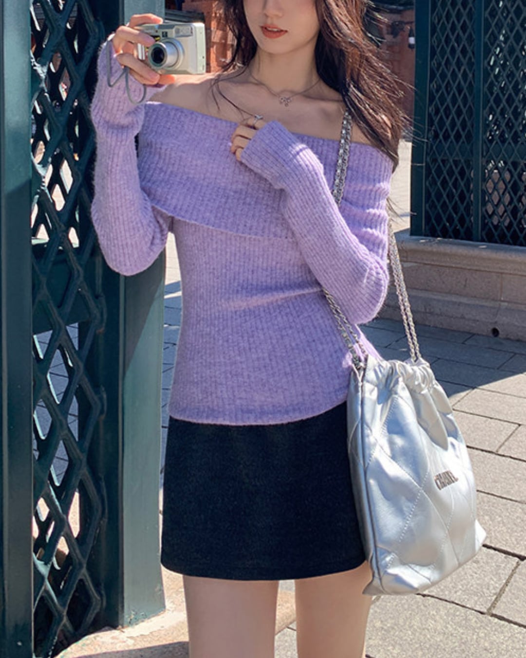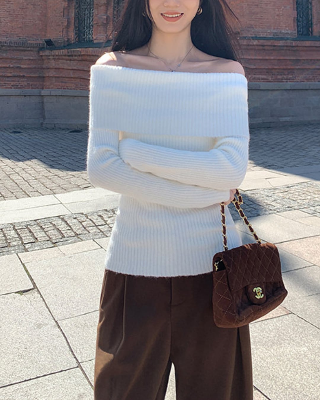 大きく開いたデコルテラインを美しく魅せる、上品なオフショルダーデザイン。柔らかな肌ざわりと伸縮性のあるリブ編みニットで、ボディラインに心地よくフィットします。フェミニンで大人可愛い印象を演出できる、秋冬コーデに大活躍のアイテムです。
