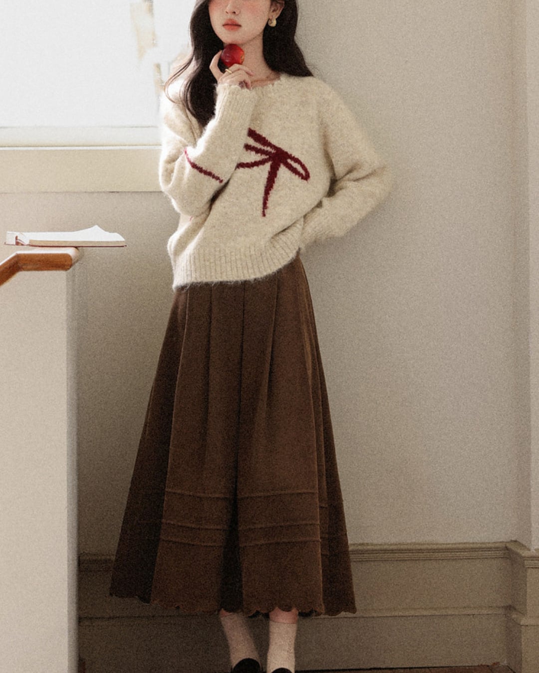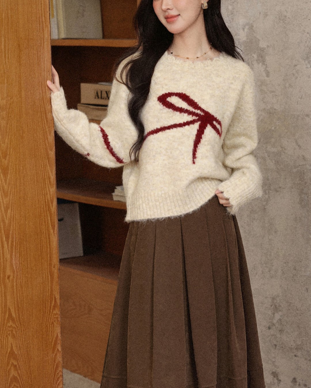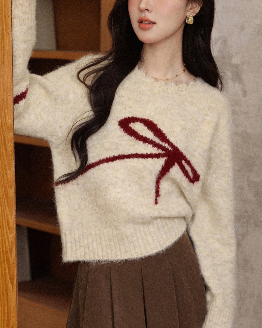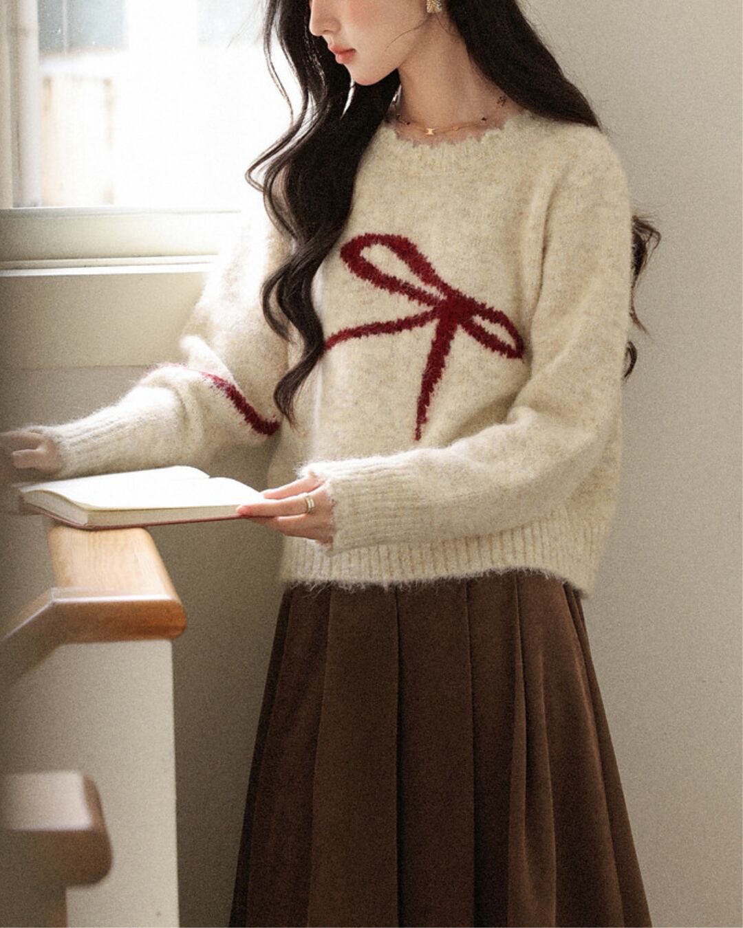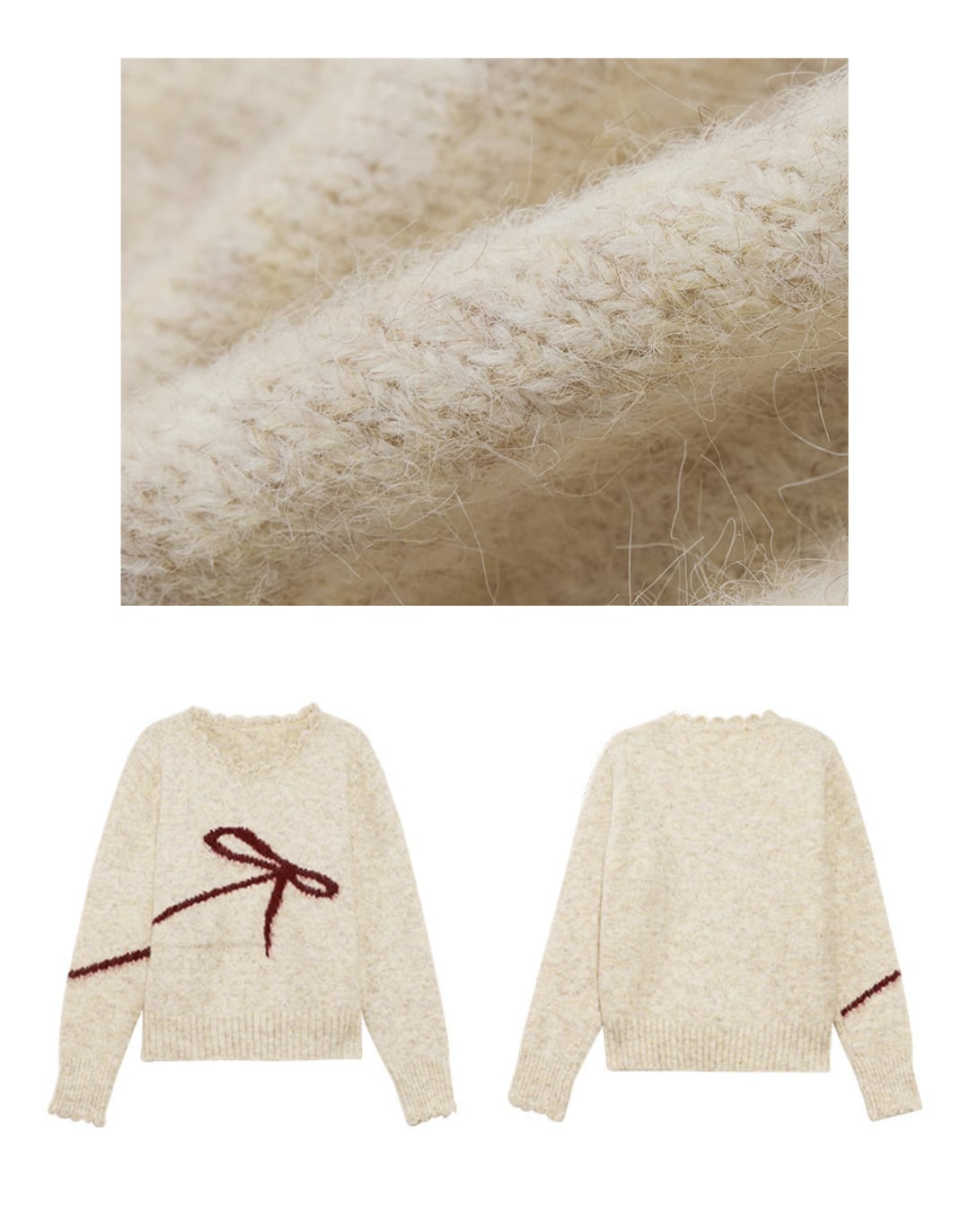 大きめのリボンモチーフが目を惹く、甘すぎない大人フェミニンなシャギーニット。ふんわりとした起毛感のある柔らかな素材で、着心地も抜群。丸みのあるシルエットがナチュラルな可愛さを演出してくれます。1枚で主役になる、秋冬にぴったりのアイテムです。