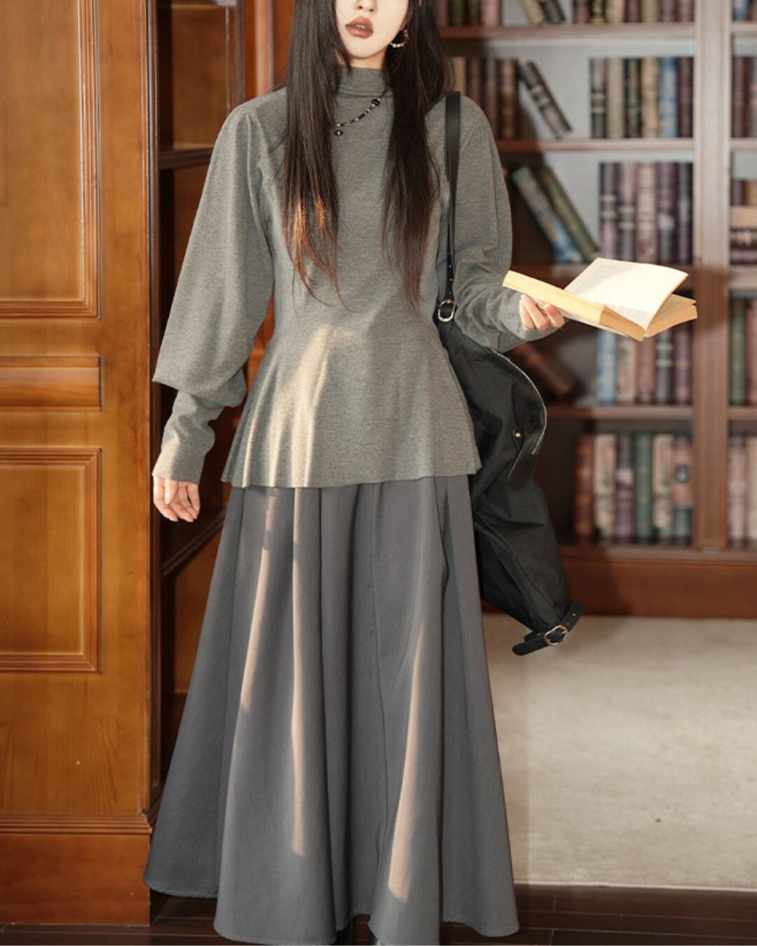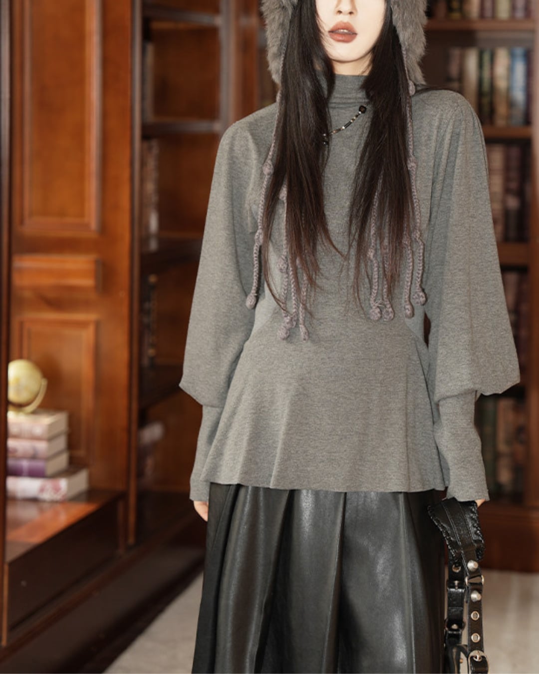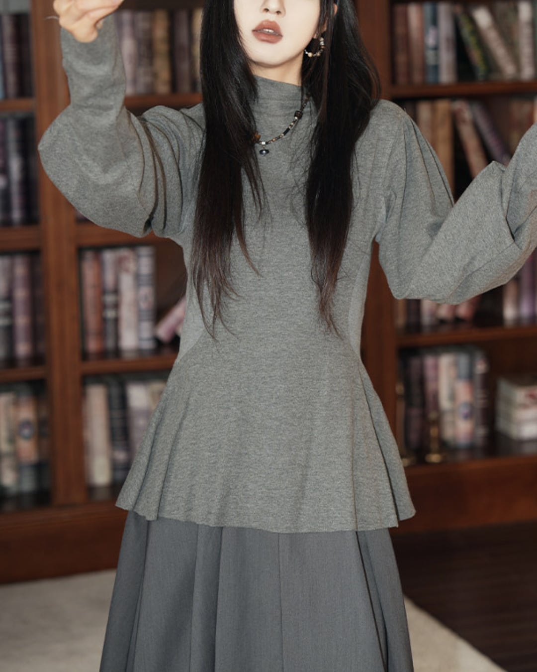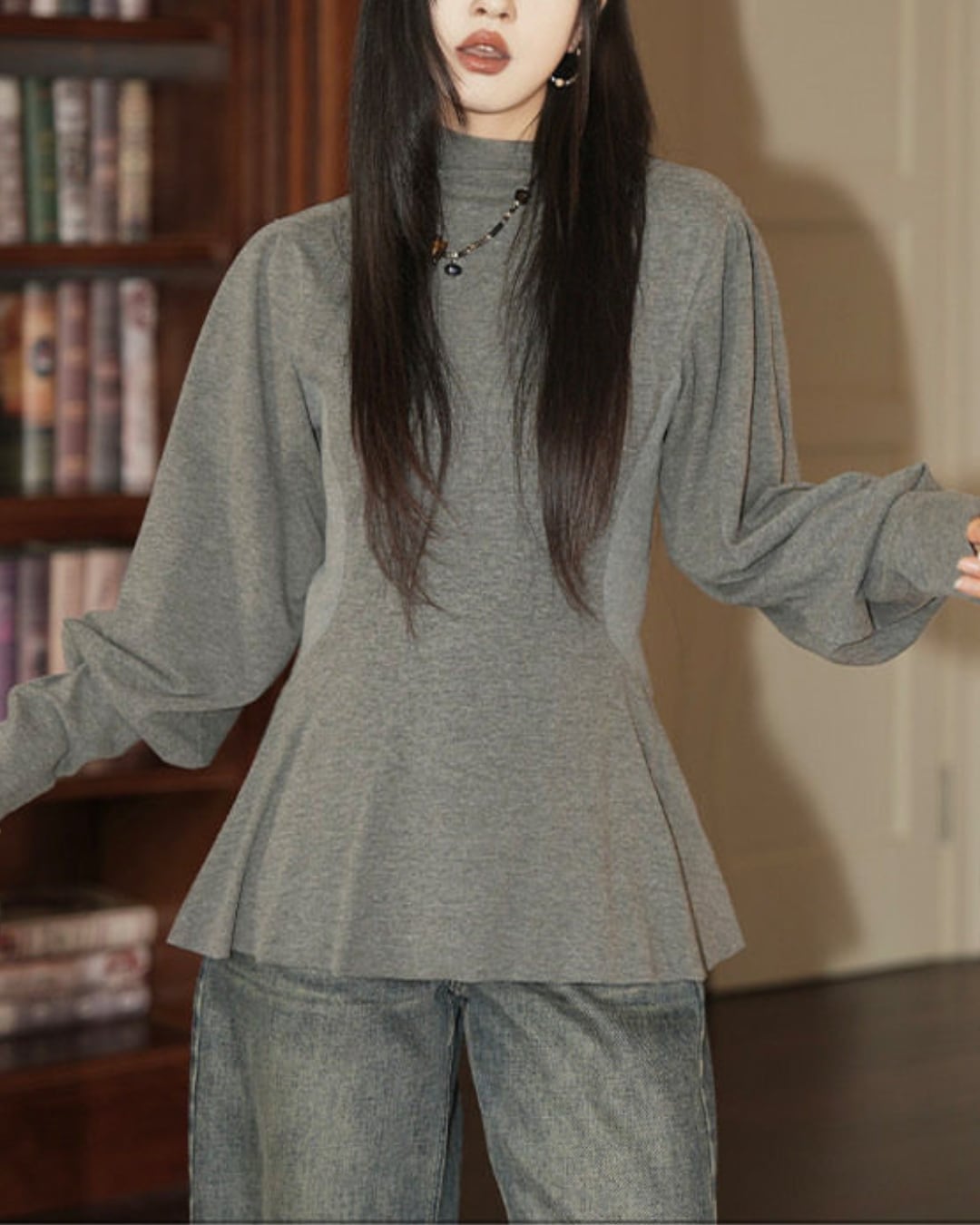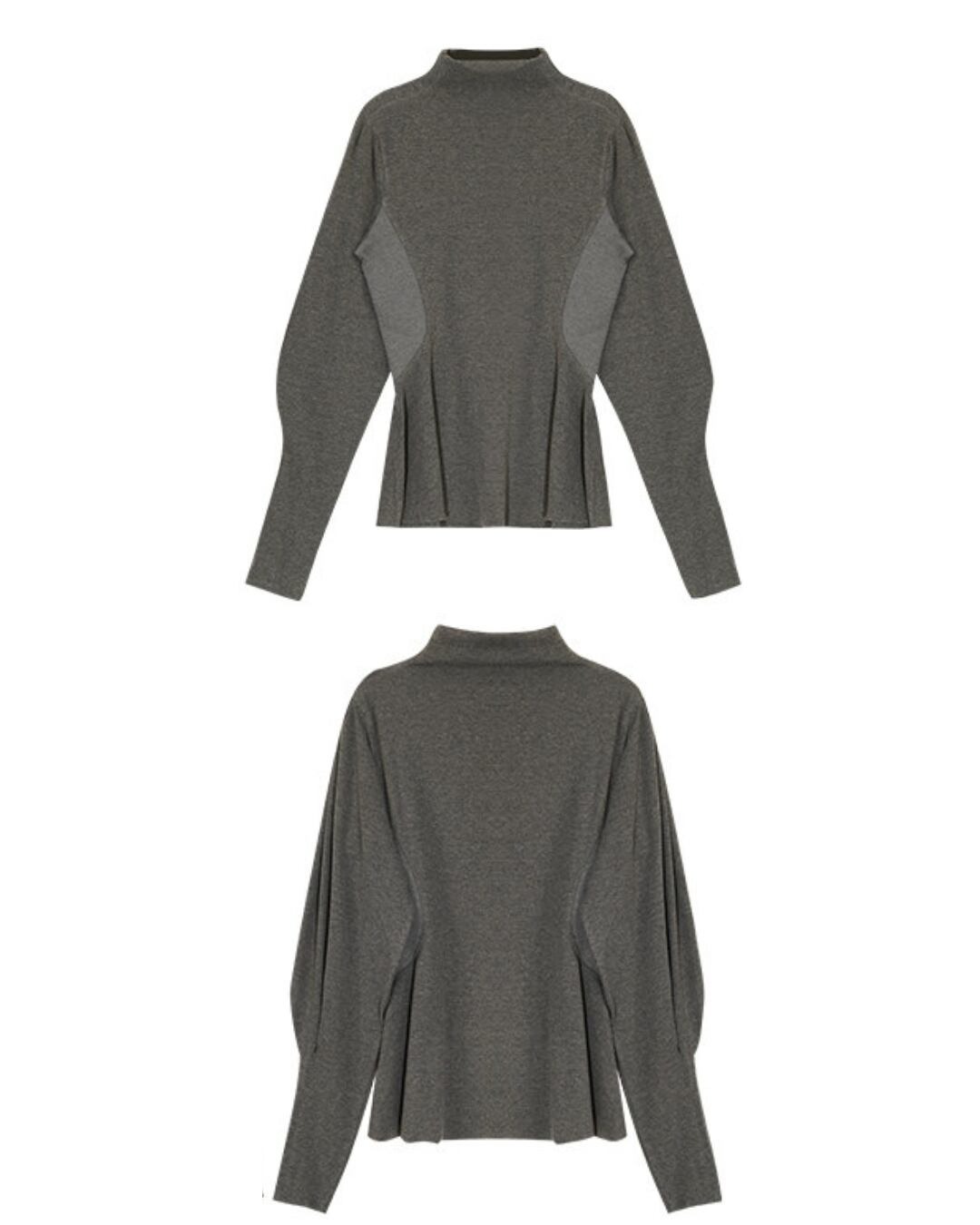 #ペプラムトップス #ランタンスリーブ #ハーフハイネック #グレートップス #体型カバー #大人カジュアル