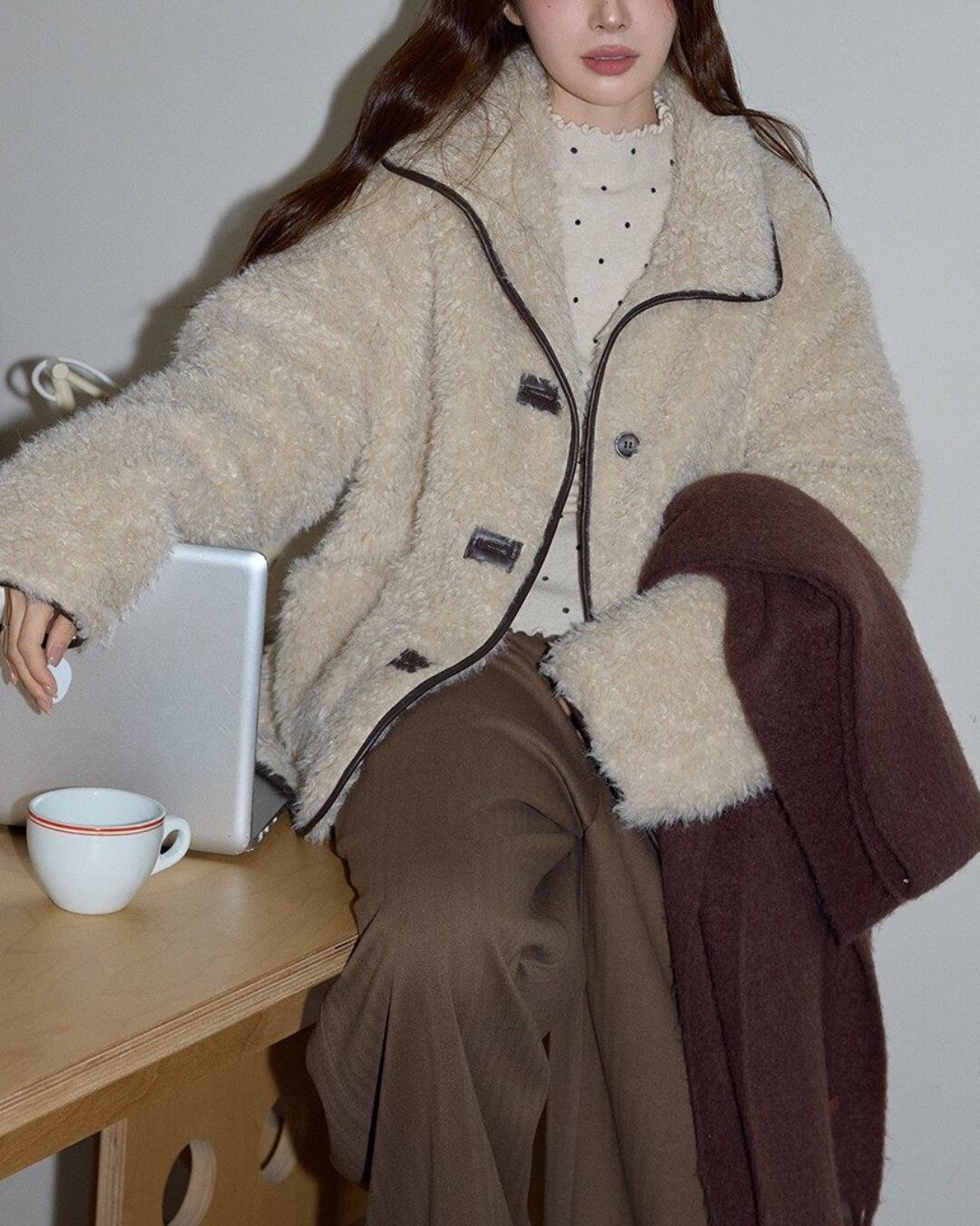 #リバーシブルジャケット #ボアジャケット #フェイクレザー #ブラウンアウター #ゆったりシルエット #体型カバー #秋冬コーデ
