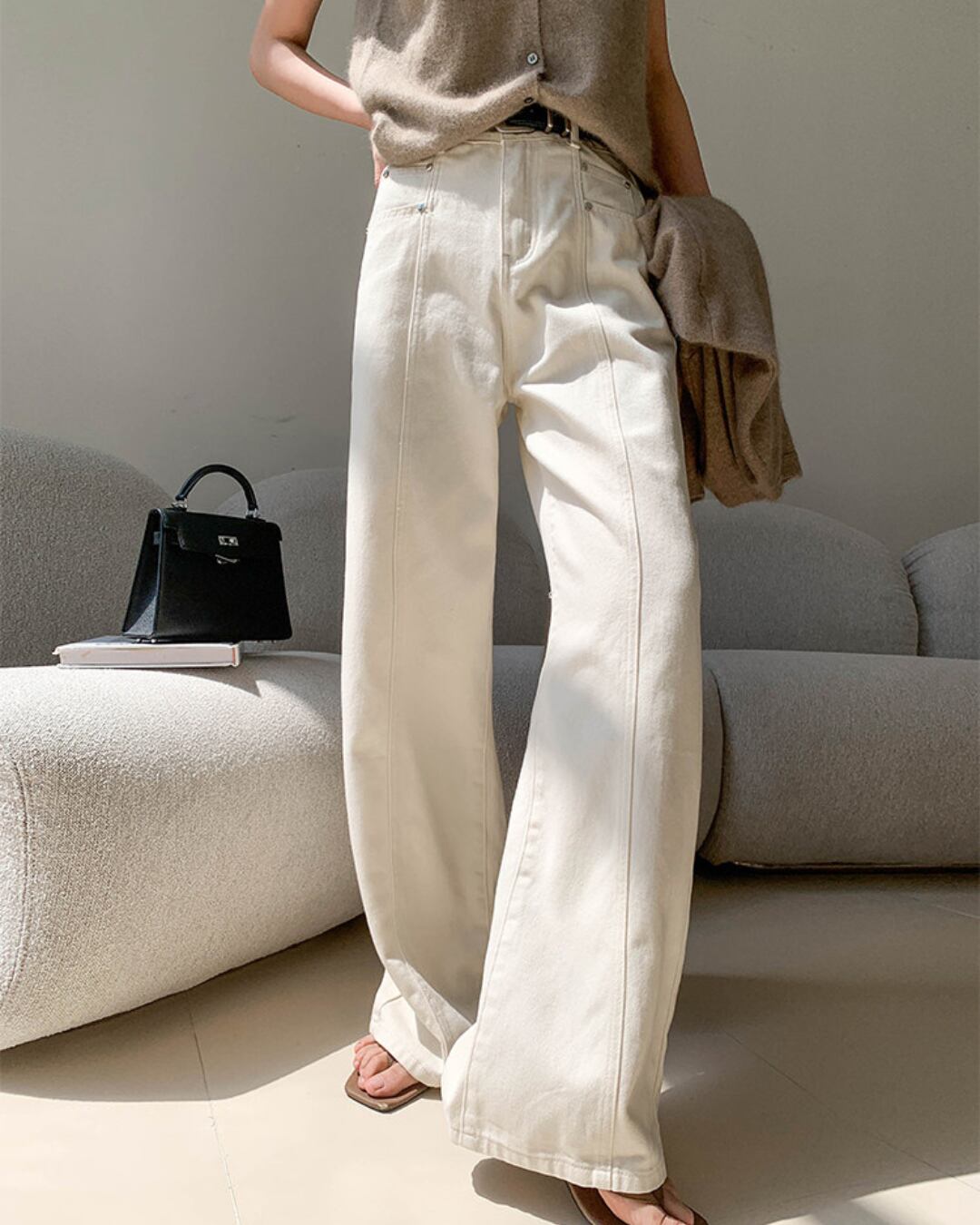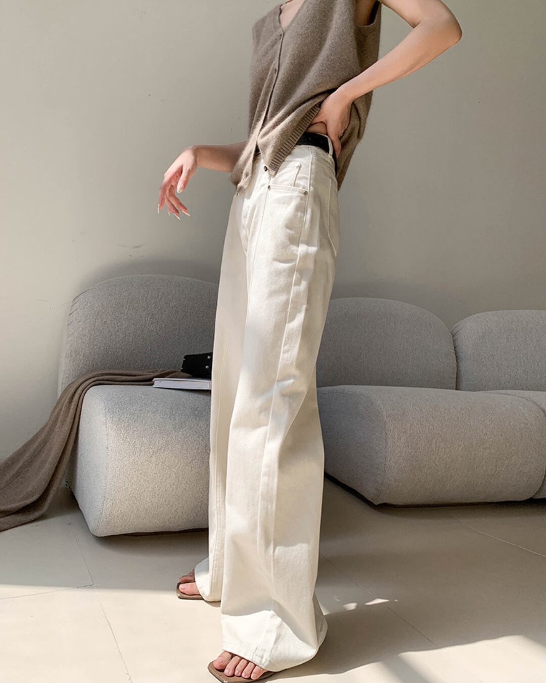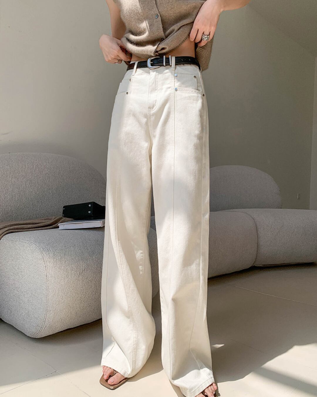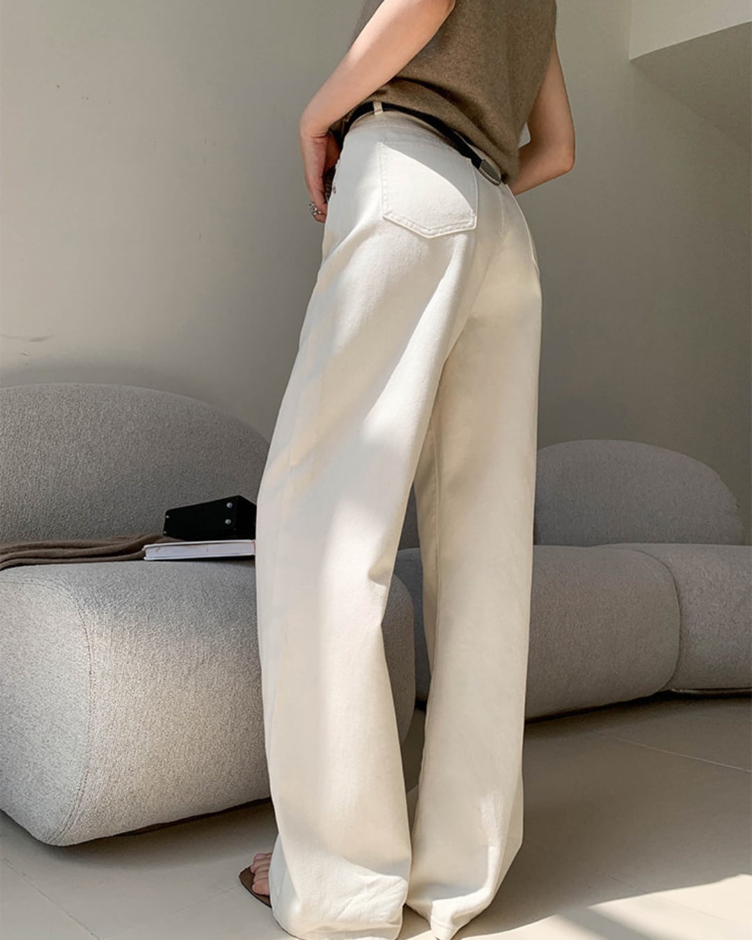 #ハイウエスト #ストレートパンツ #コットン100 #オフホワイト #美脚シルエット #カジュアルコーデ