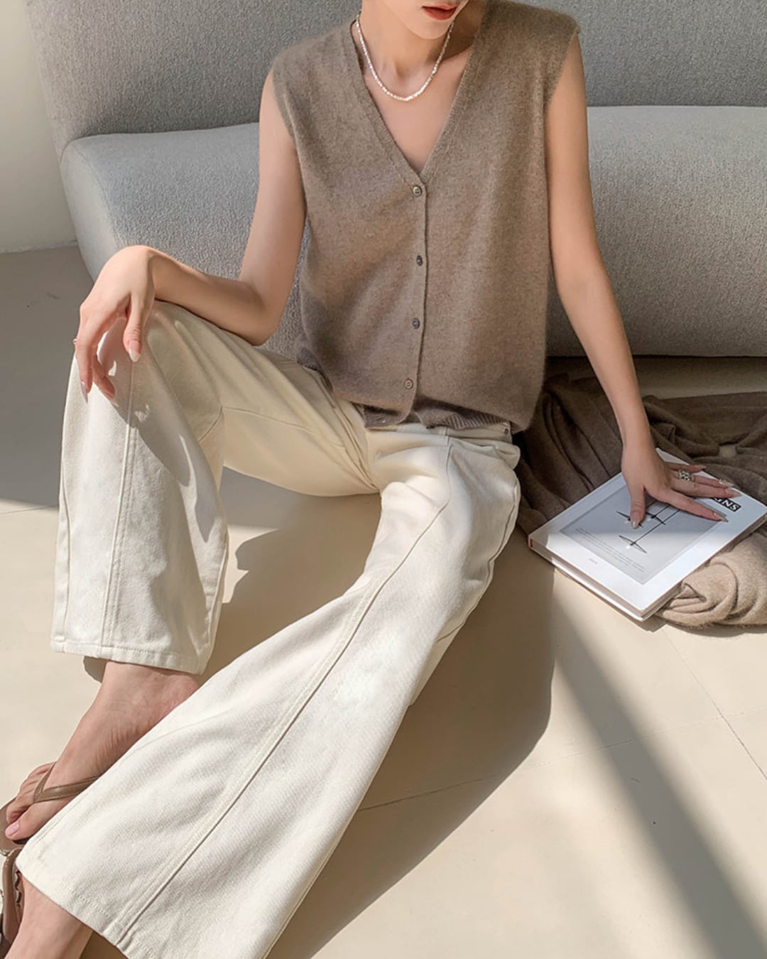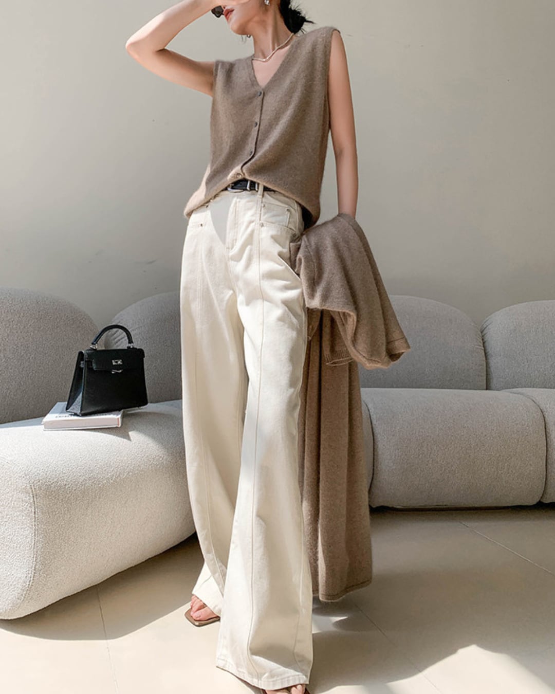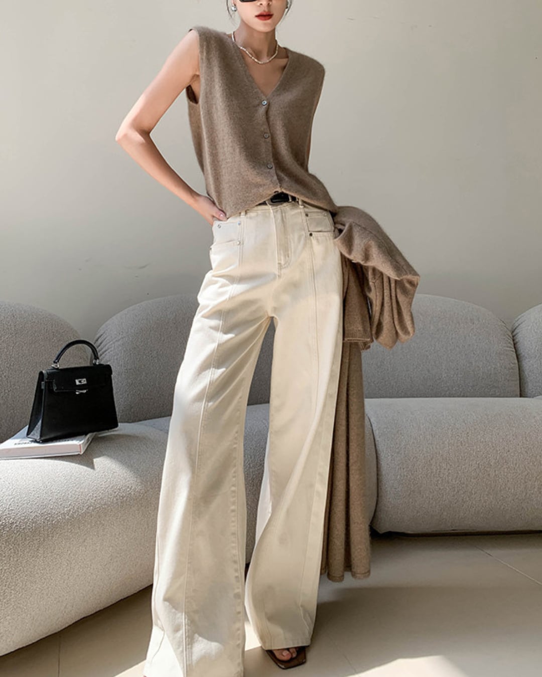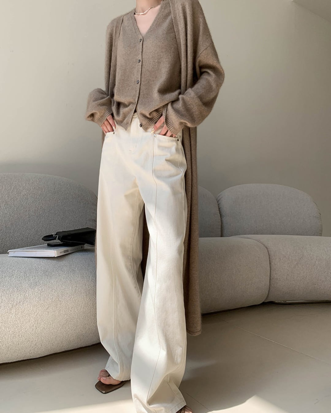 #ハイウエスト #ストレートパンツ #コットン100 #オフホワイト #美脚シルエット #カジュアルコーデ