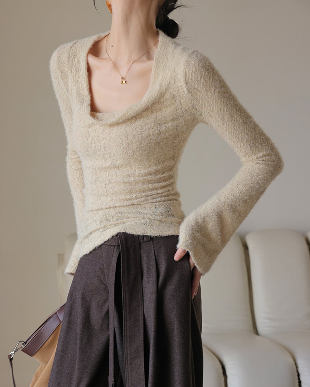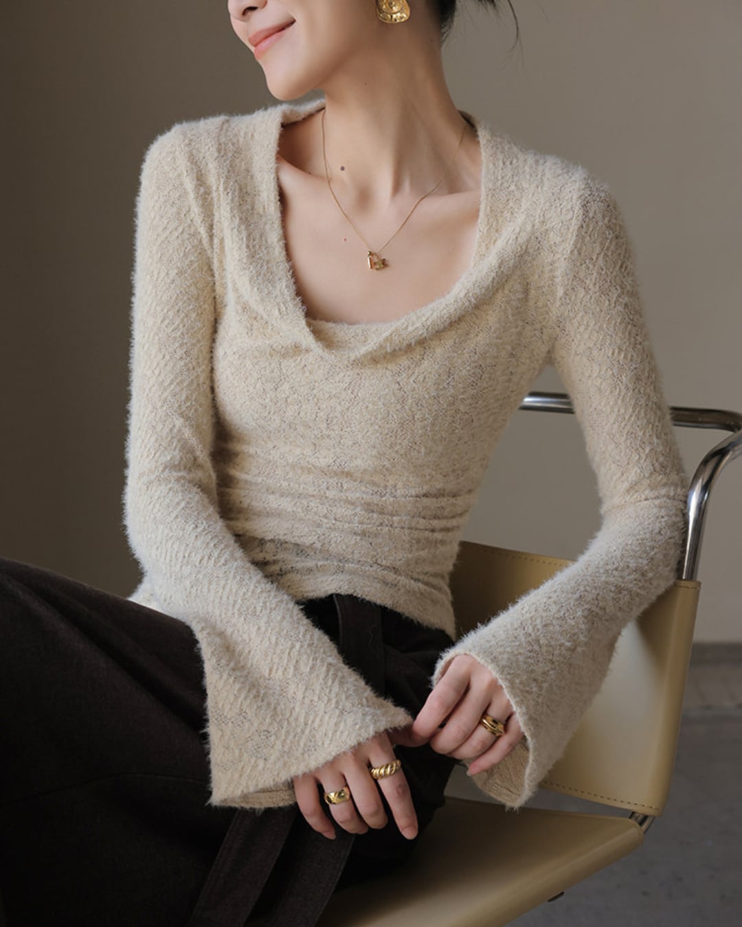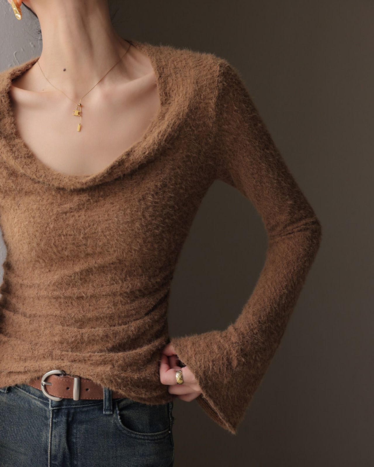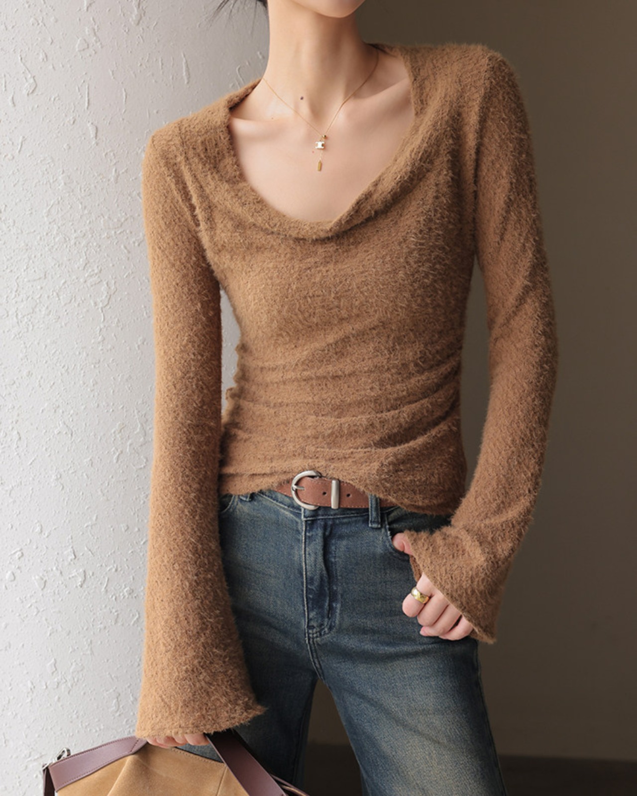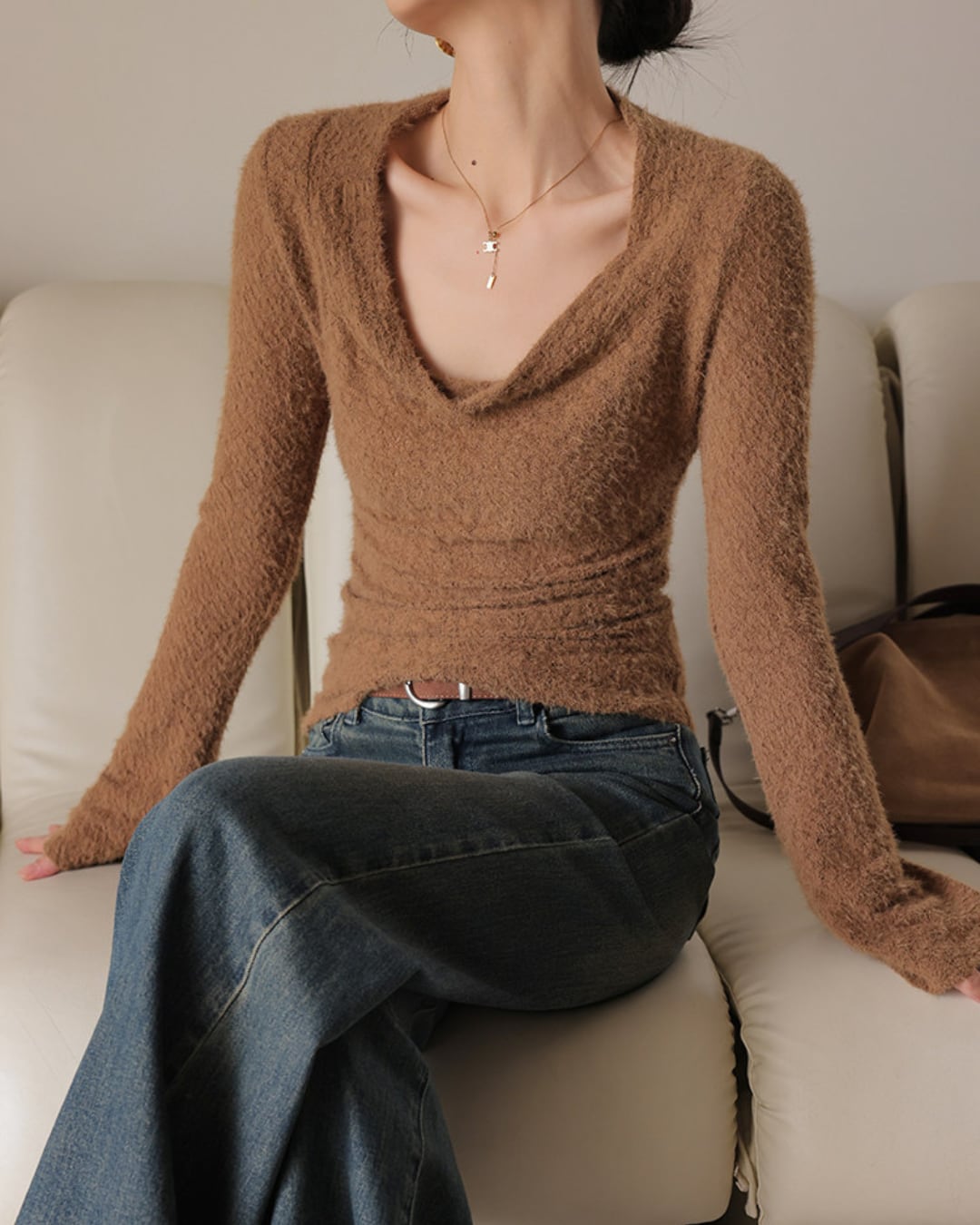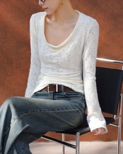 #フェザーニット #カシュクール風 #長袖トップス #フィットニット #レイヤード映え #デコルテ魅せ