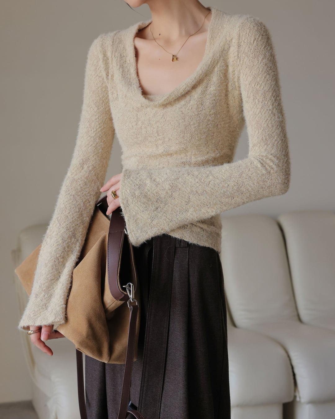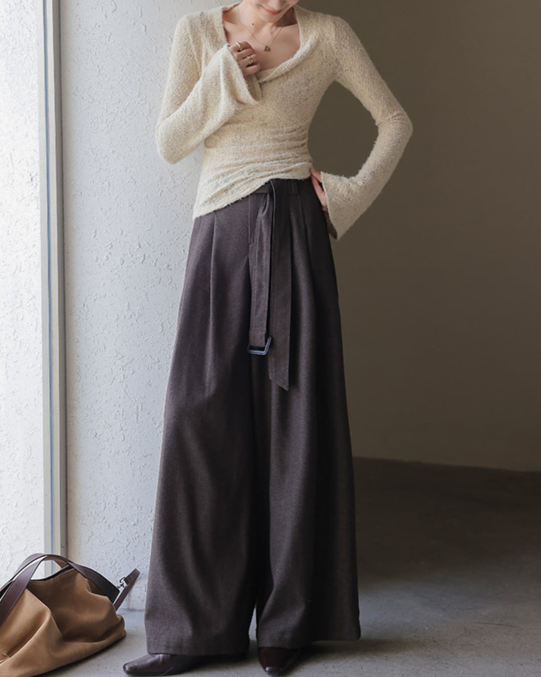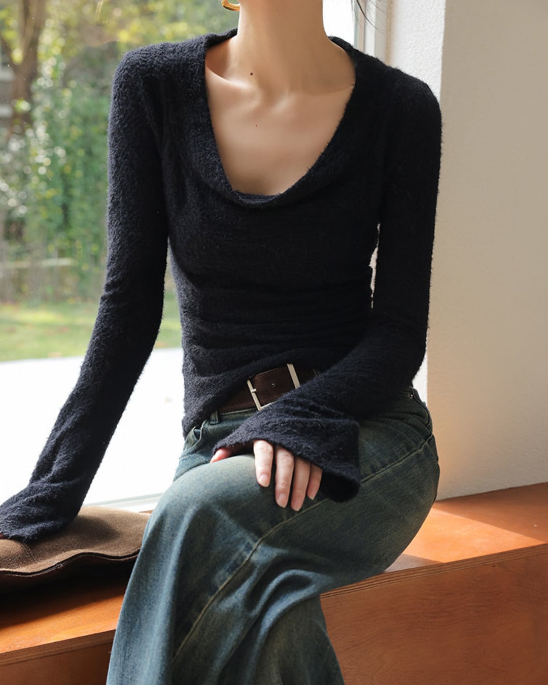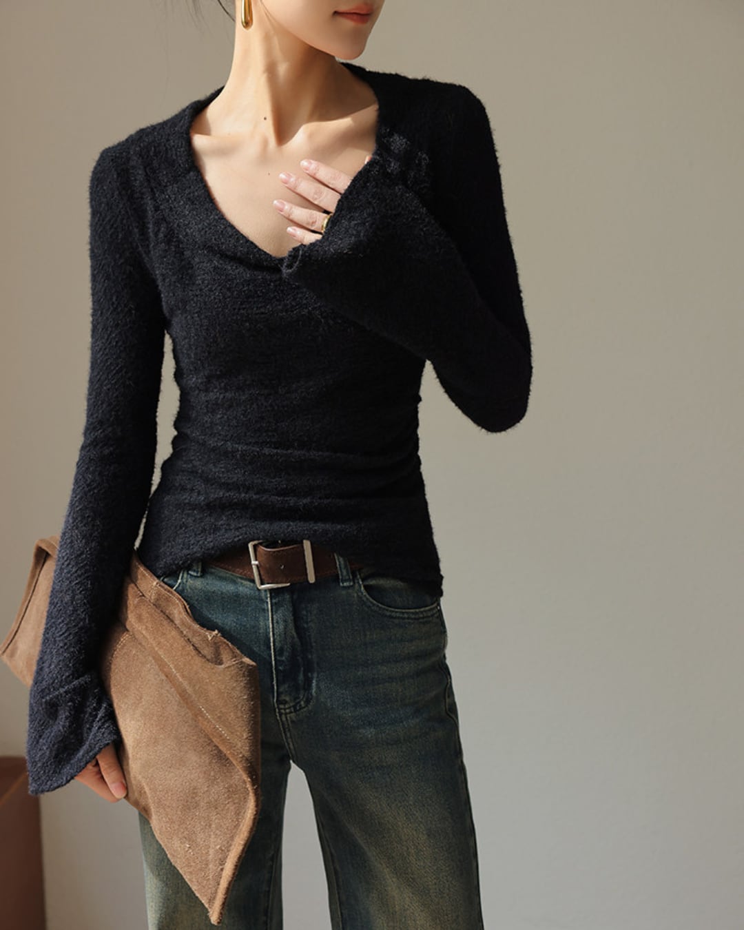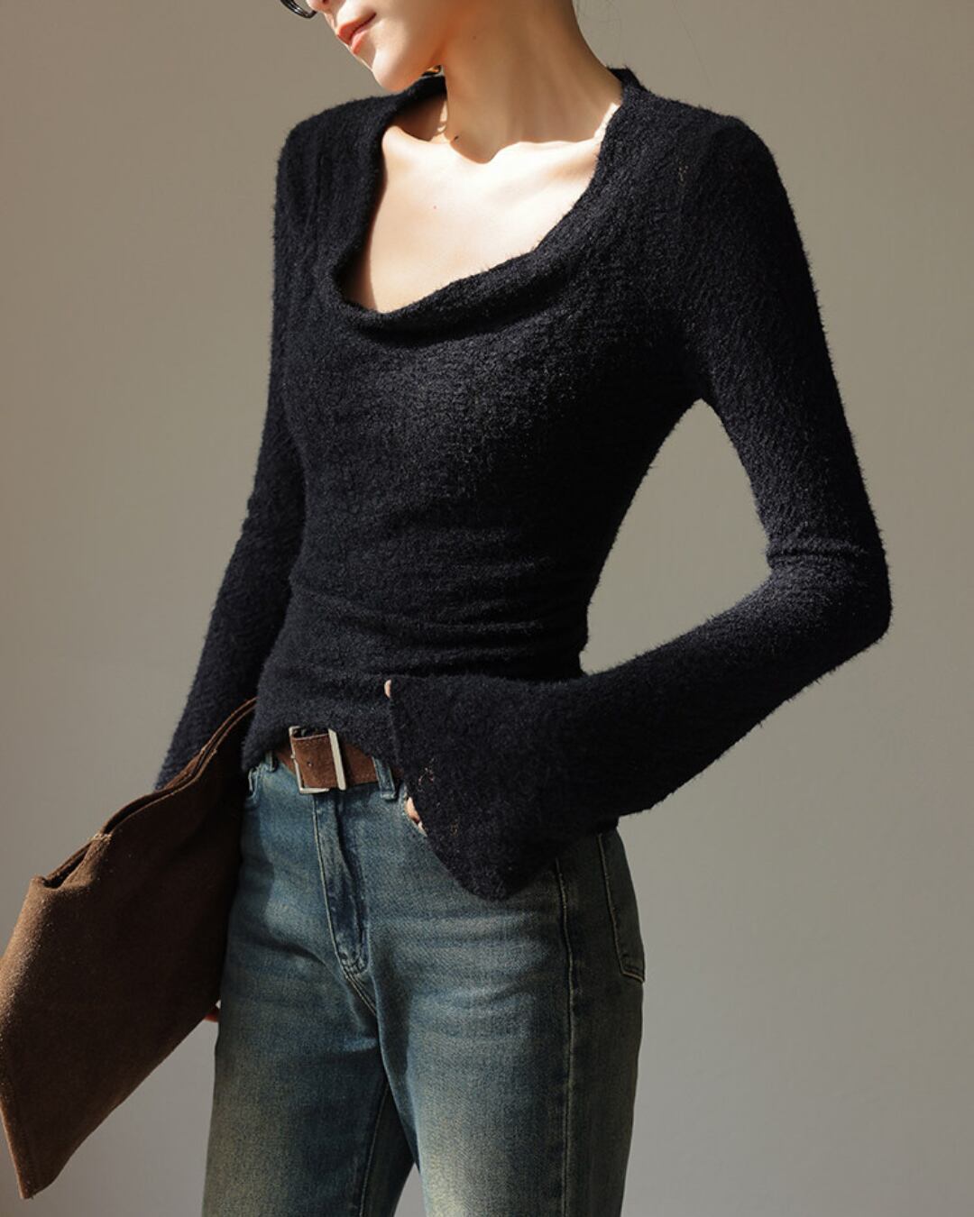 #フェザーニット #カシュクール風 #長袖トップス #フィットニット #レイヤード映え #デコルテ魅せ