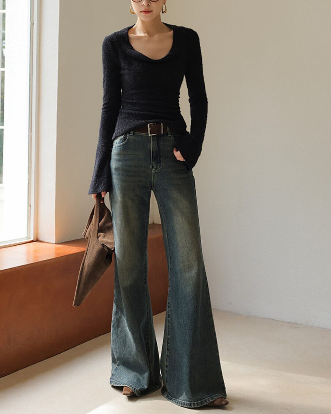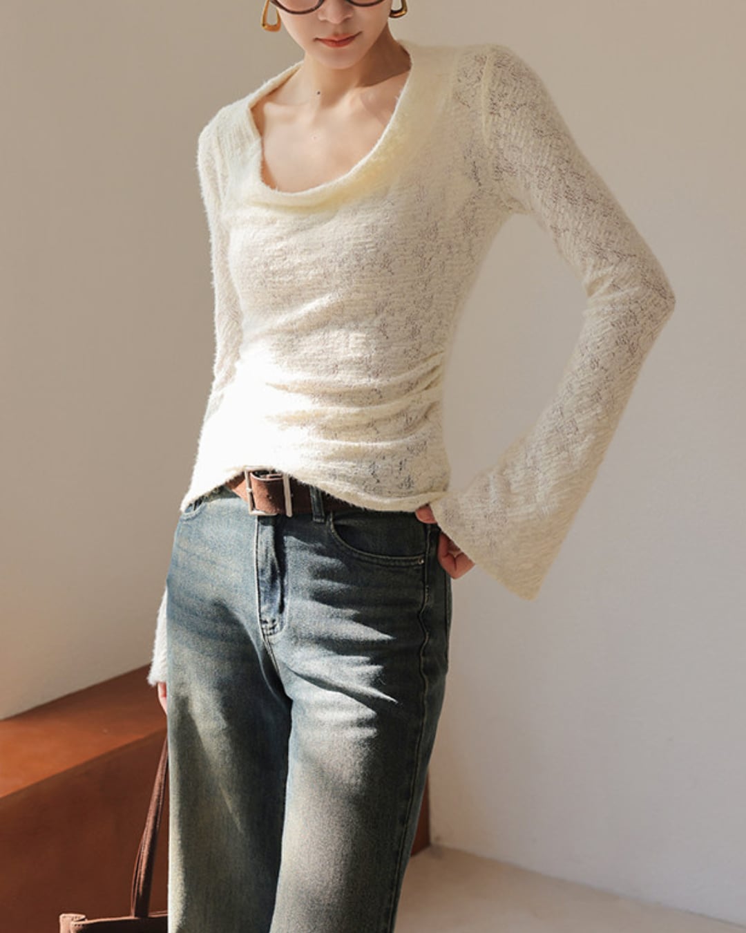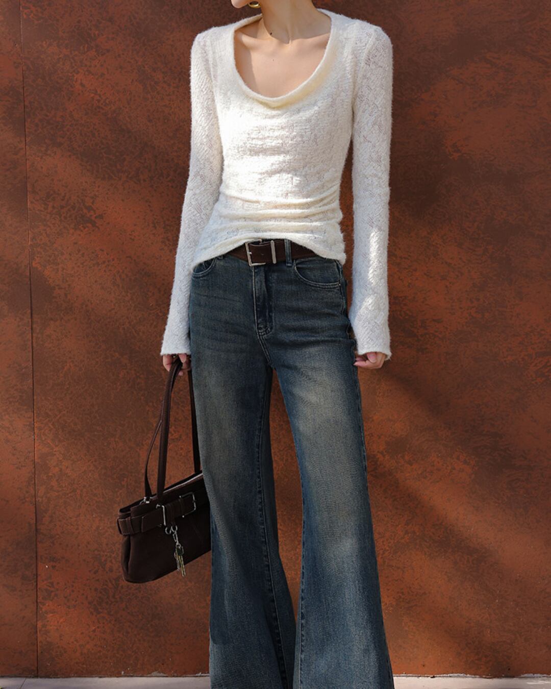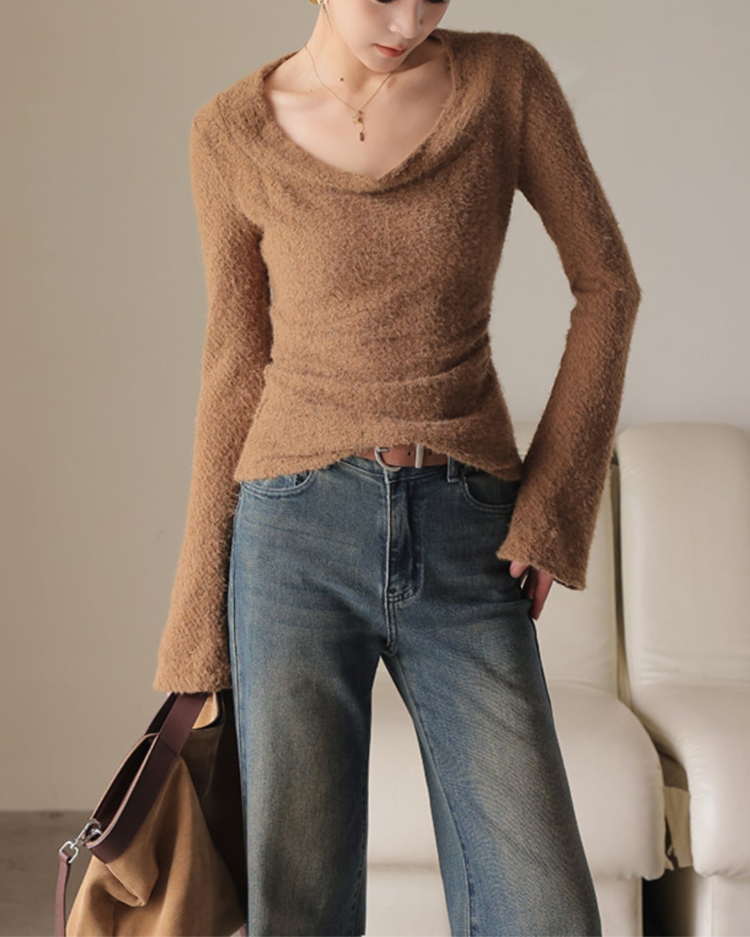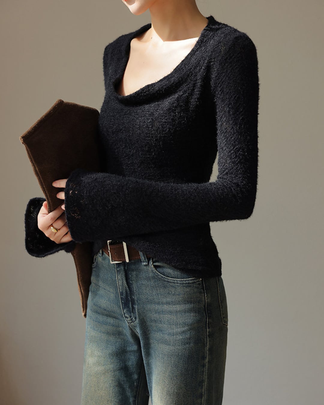 #フェザーニット #カシュクール風 #長袖トップス #フィットニット #レイヤード映え #デコルテ魅せ