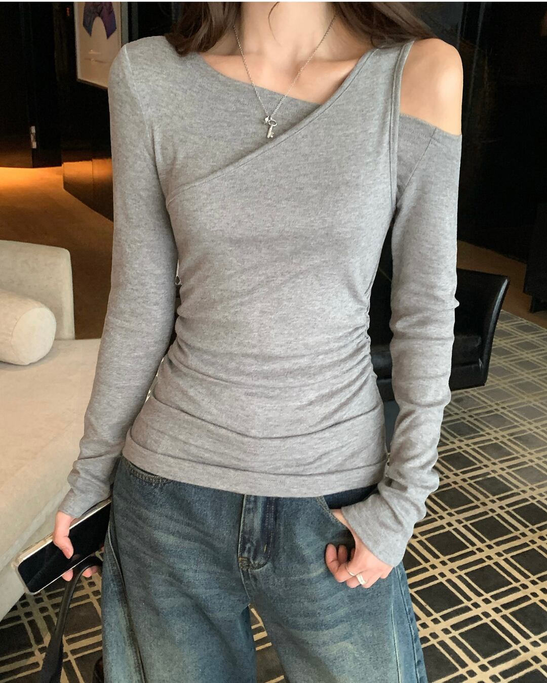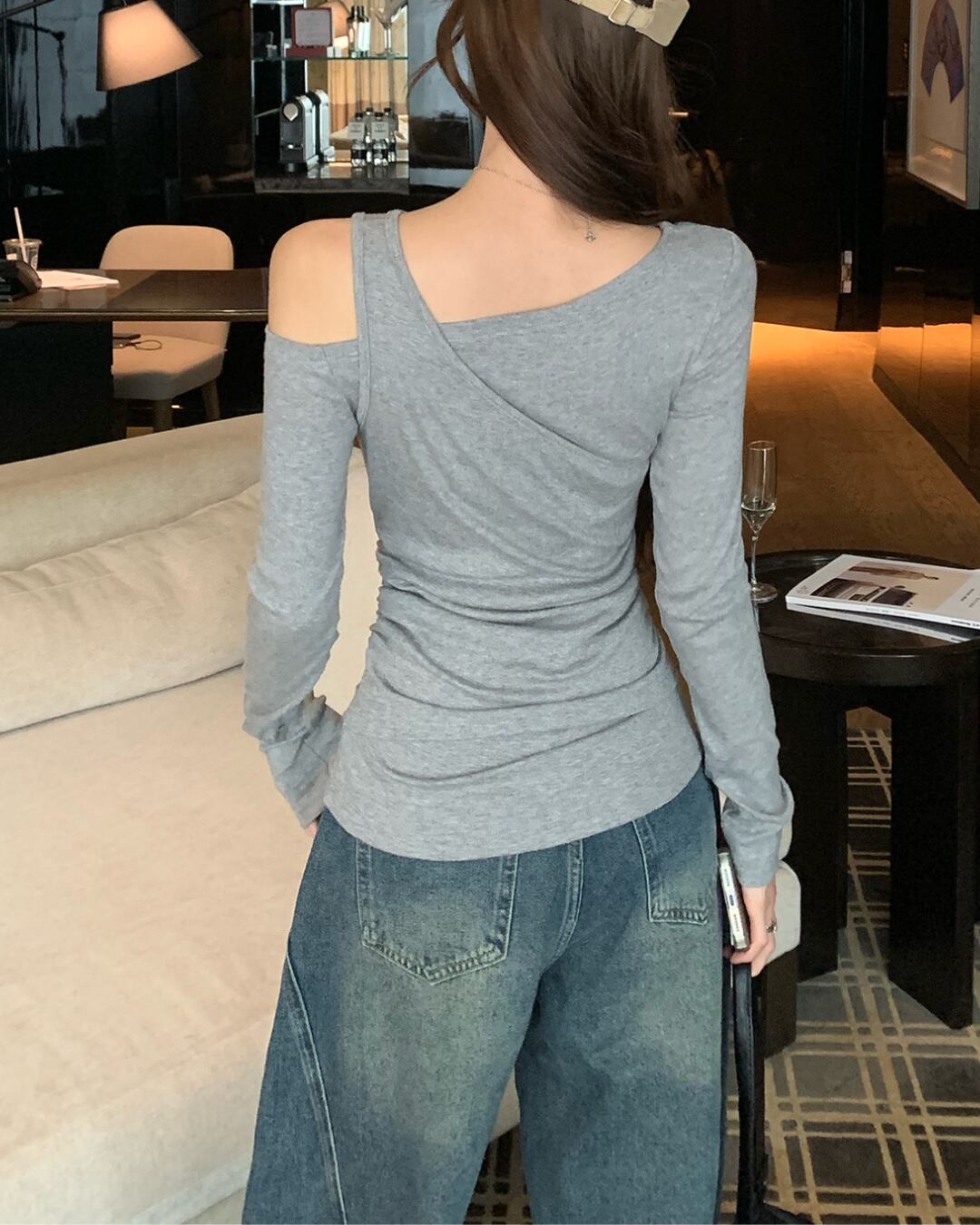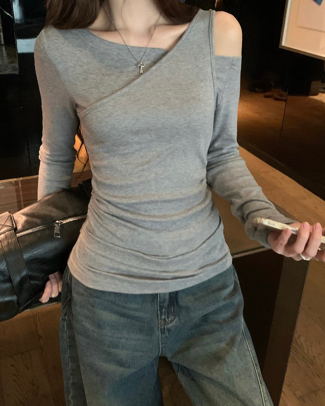 #オフショル #アシンメトリー #長袖トップス #フィットトップス #大人カジュアル