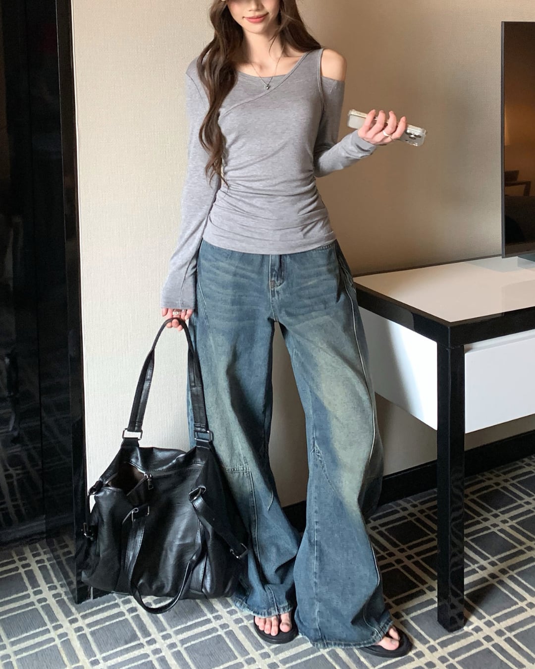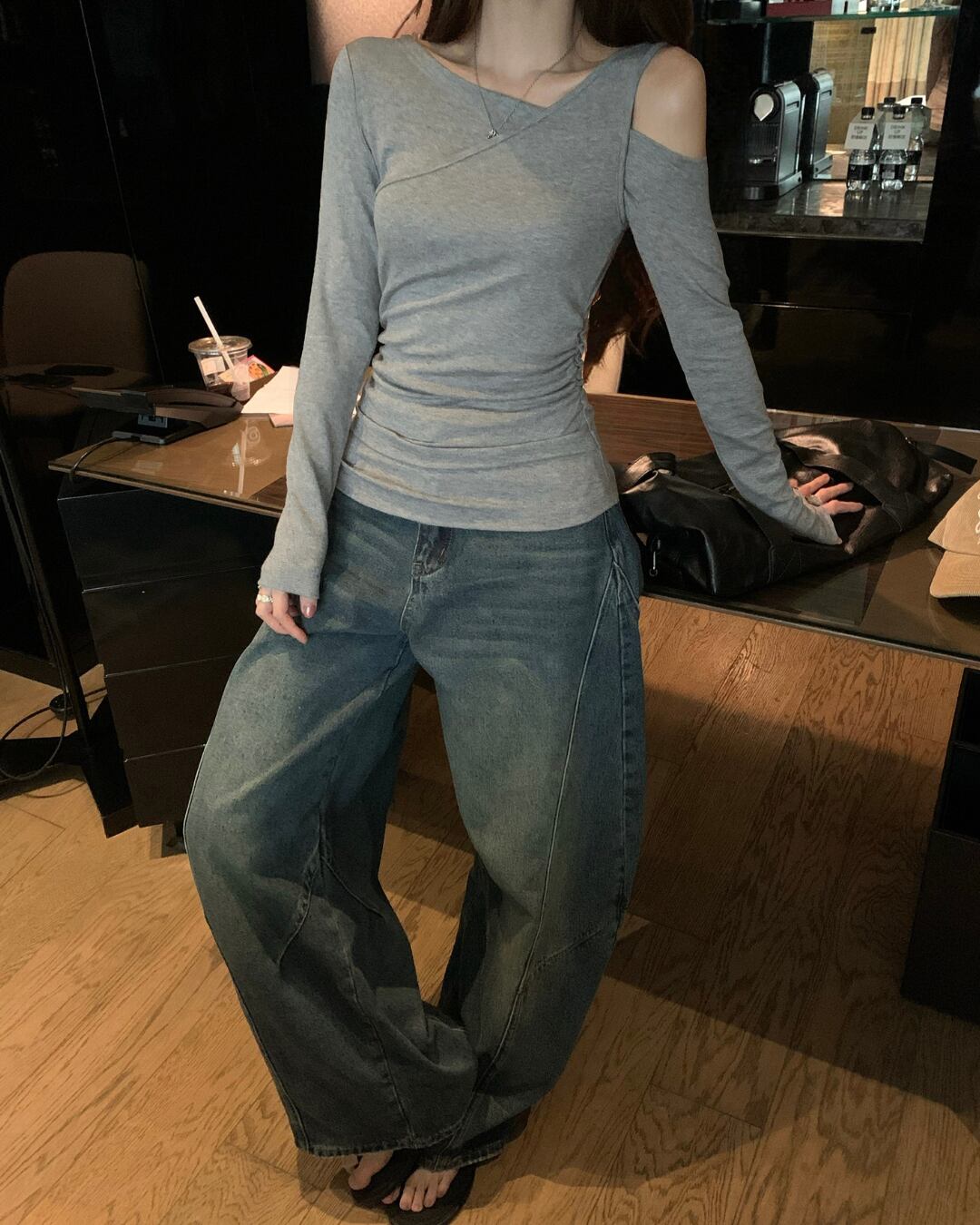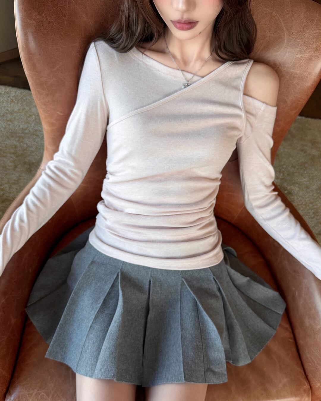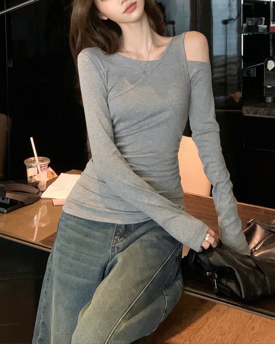 #オフショル #アシンメトリー #長袖トップス #フィットトップス #大人カジュアル