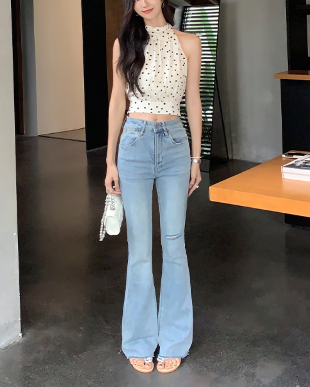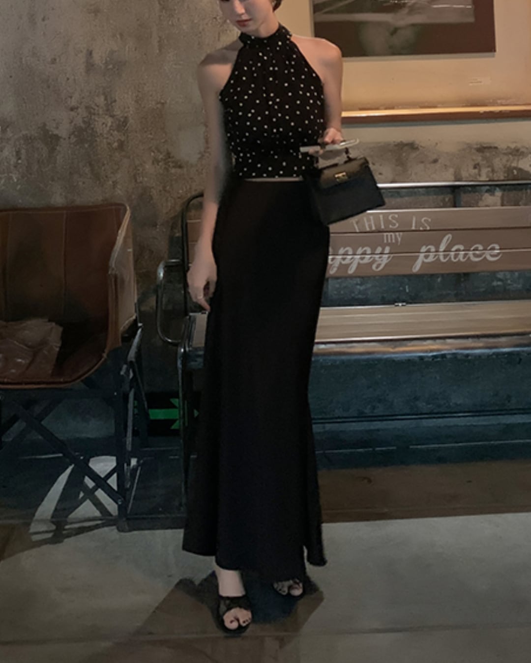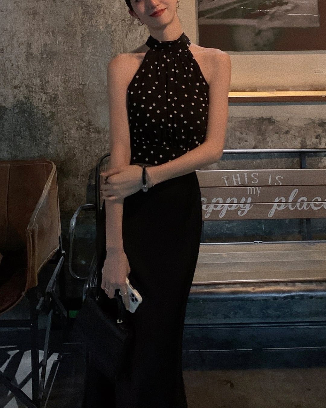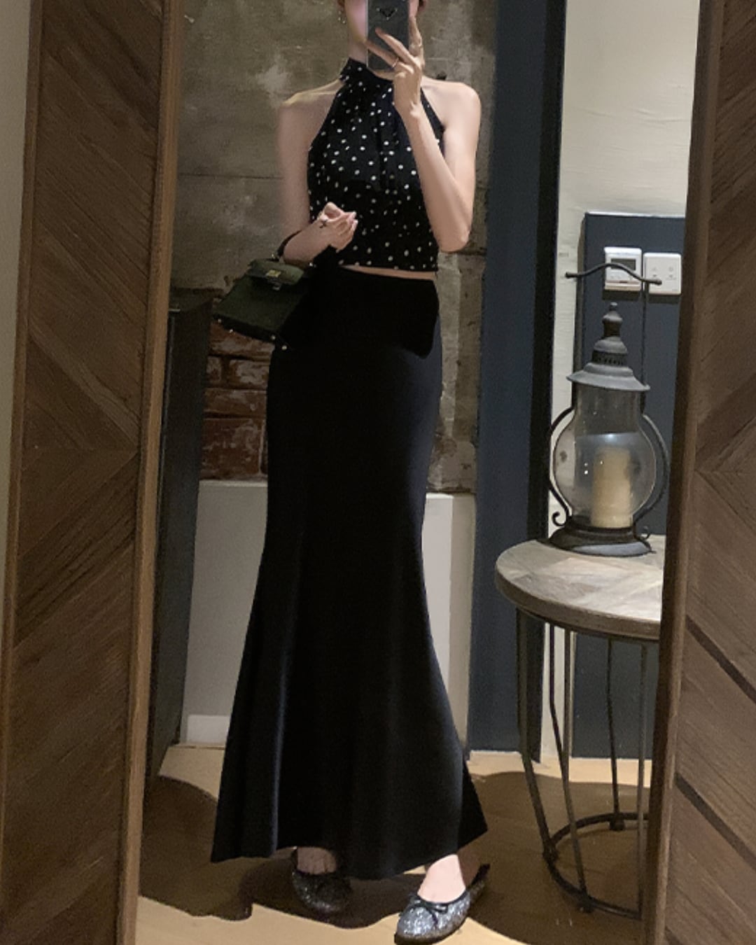#ドット柄 #ホルターネック #リボントップス #ノースリーブ #大人フェミニン