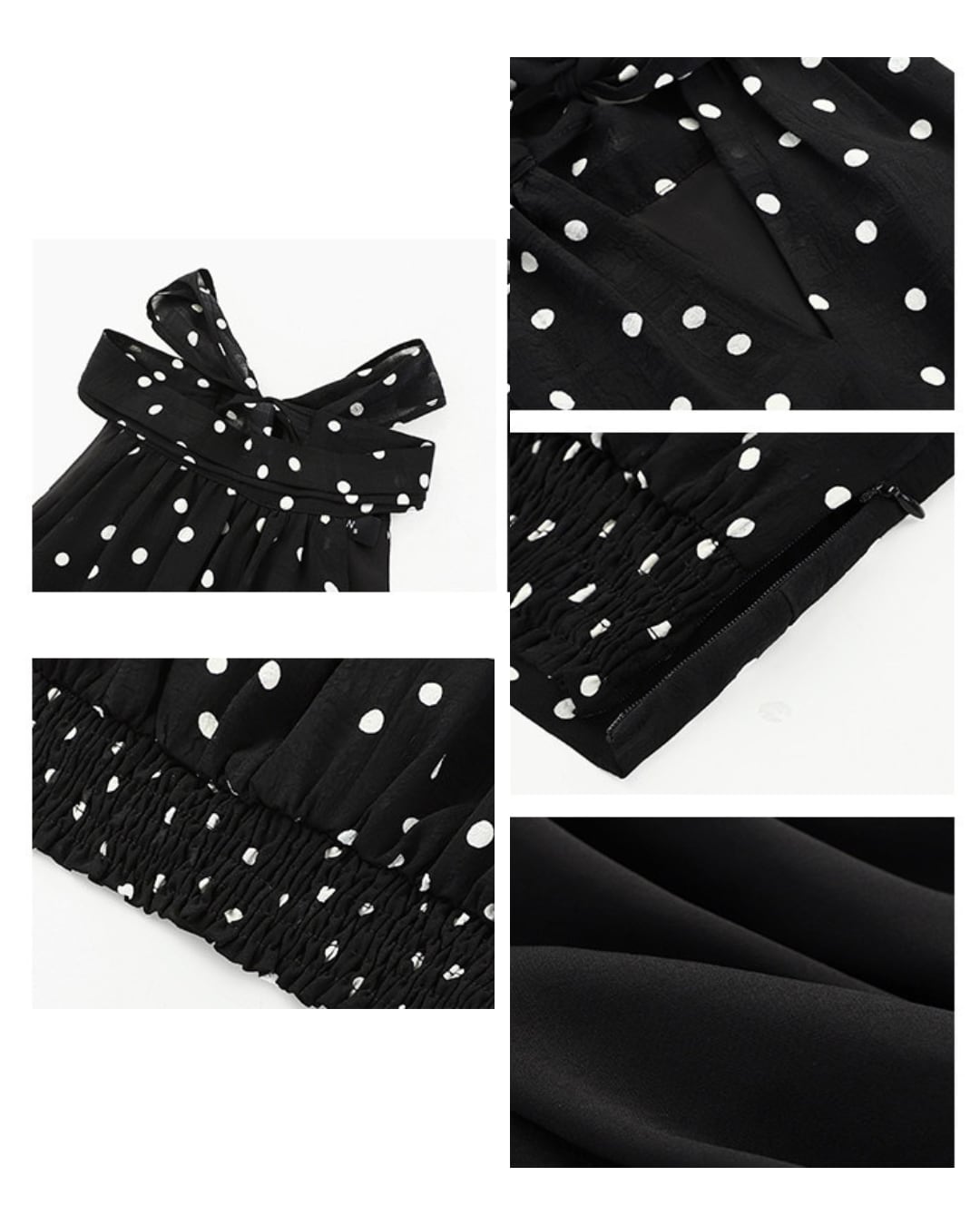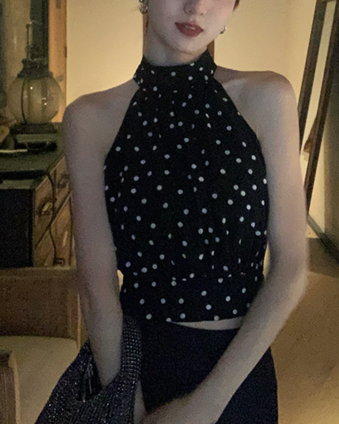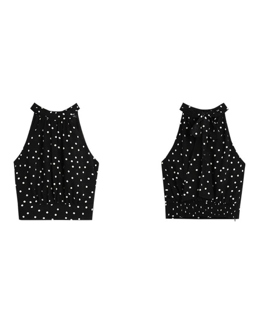ドット柄ホルターネックリボントップス V10038