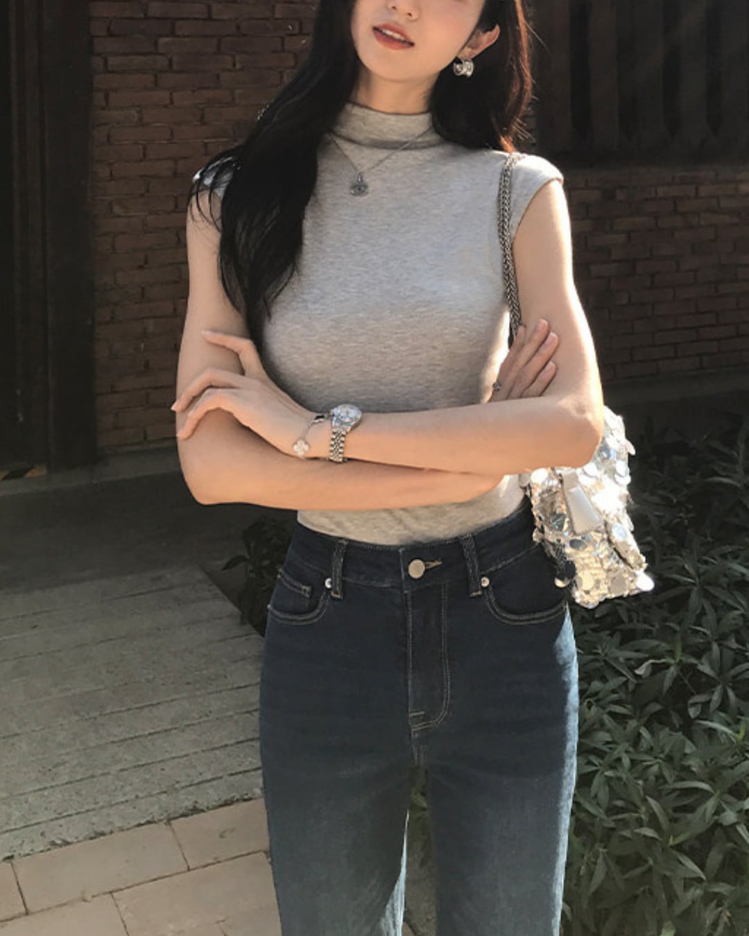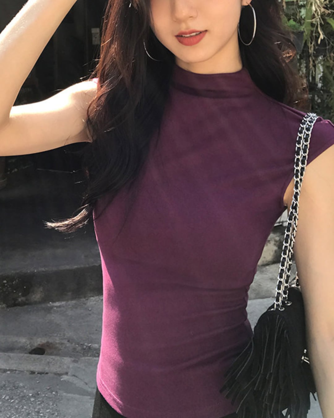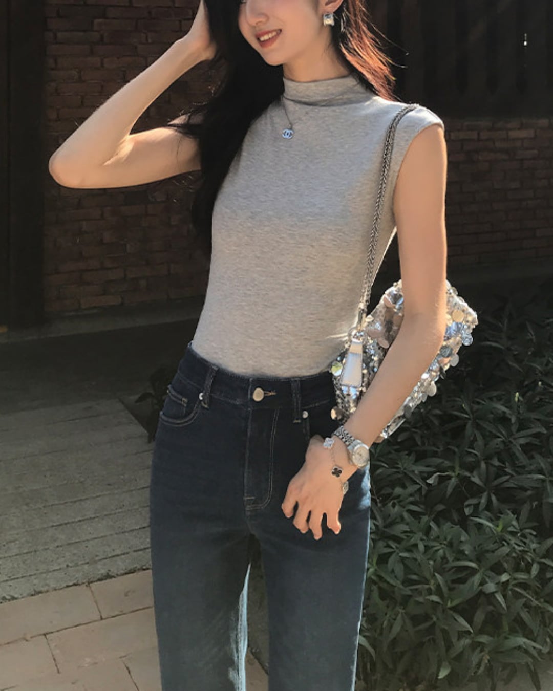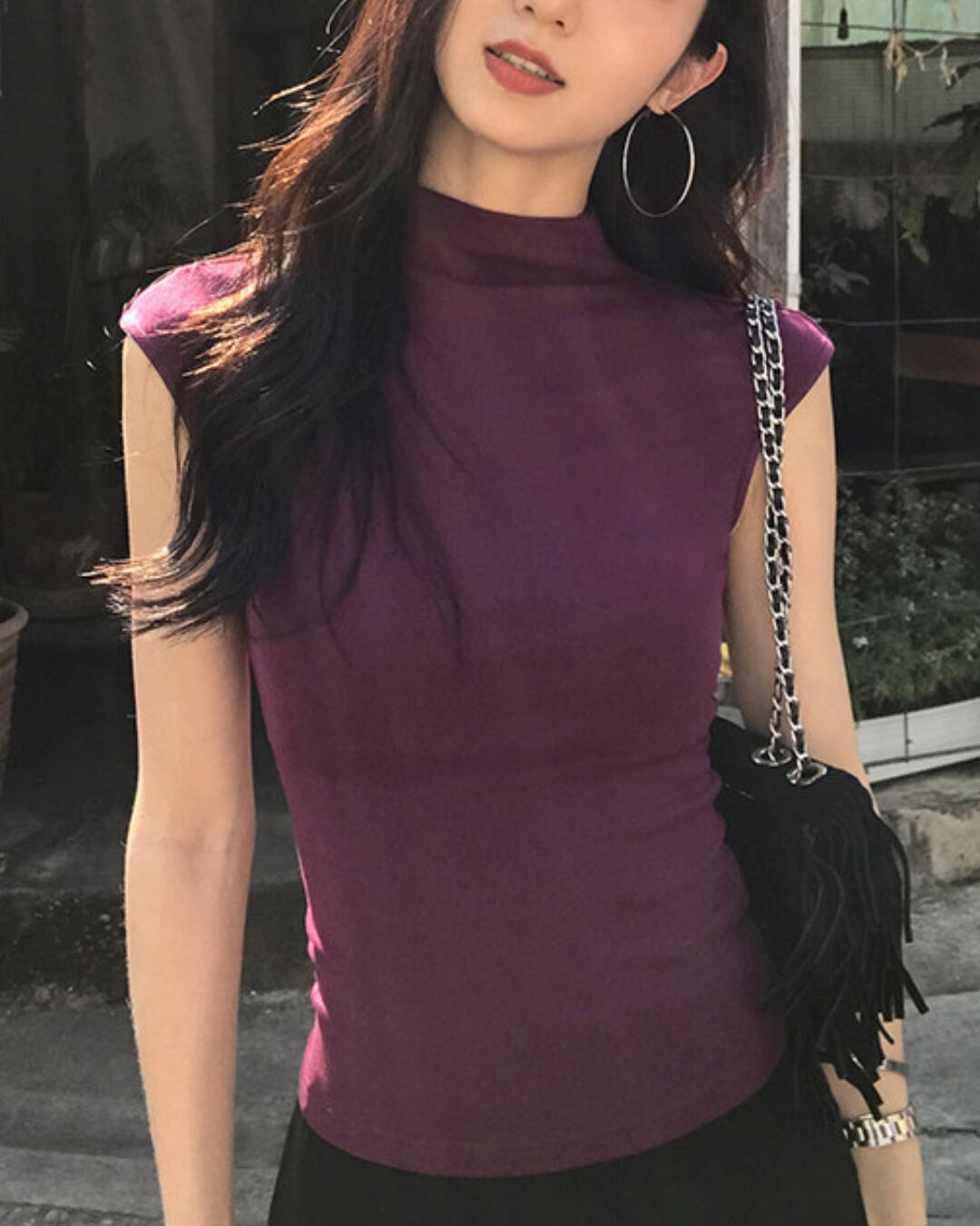 #ノースリーブトップス #ハイネック #フィットトップス #大人カジュアル #着回しアイテム