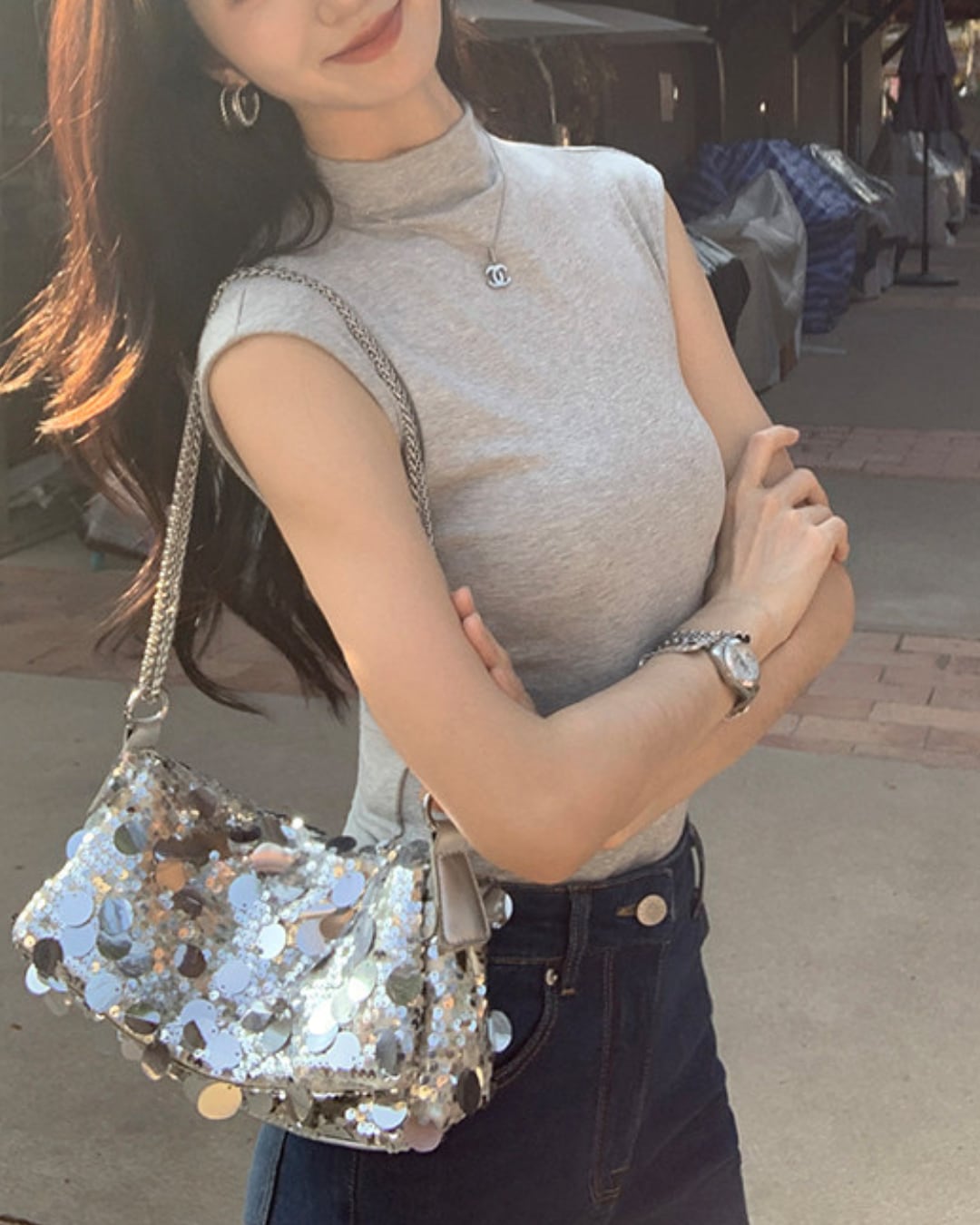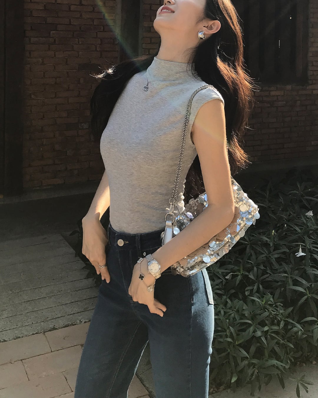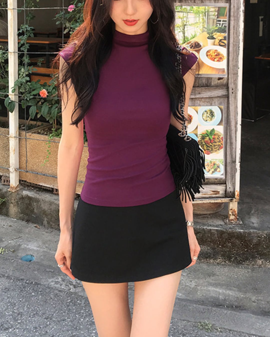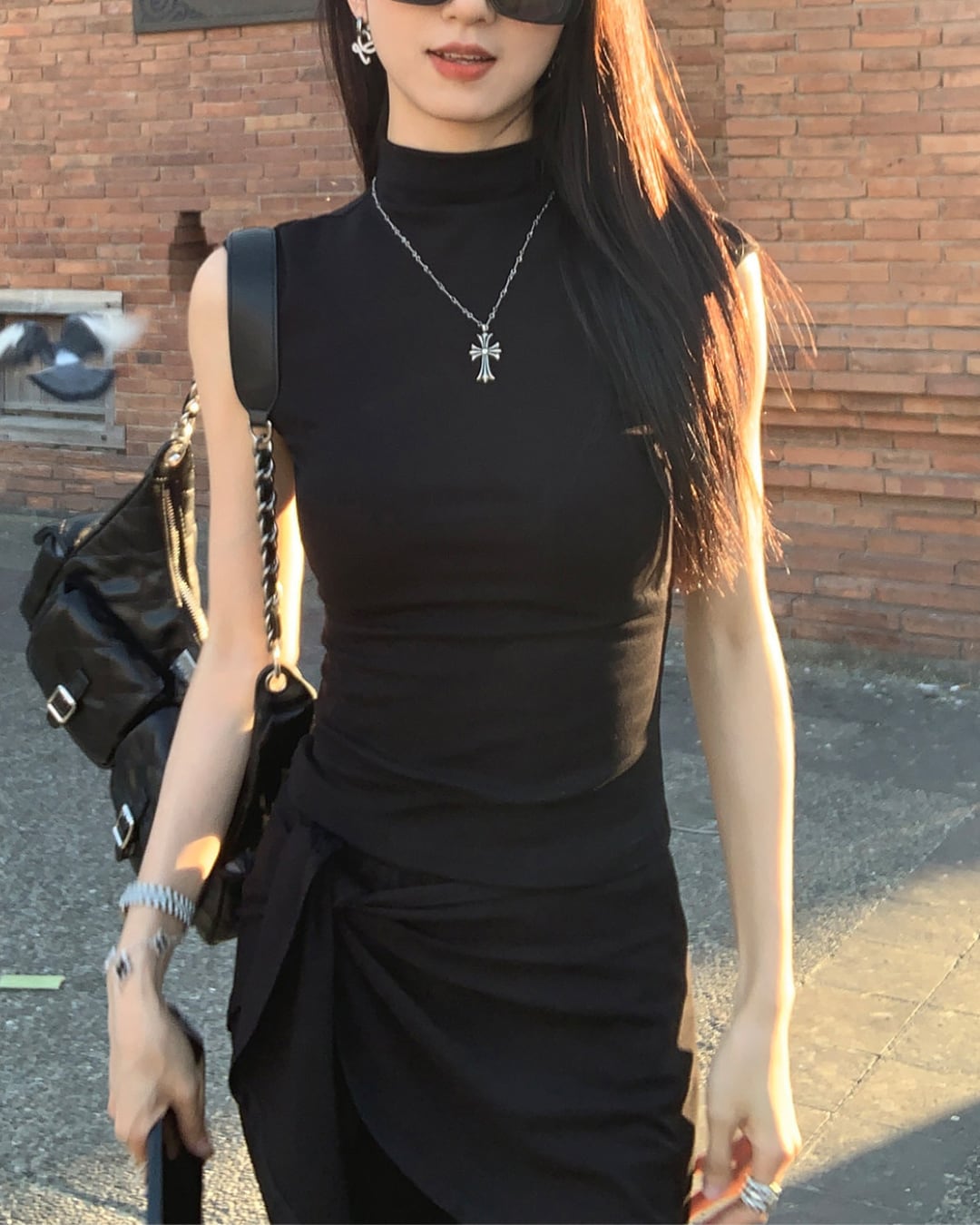 #ノースリーブトップス #ハイネック #フィットトップス #大人カジュアル #着回しアイテム
