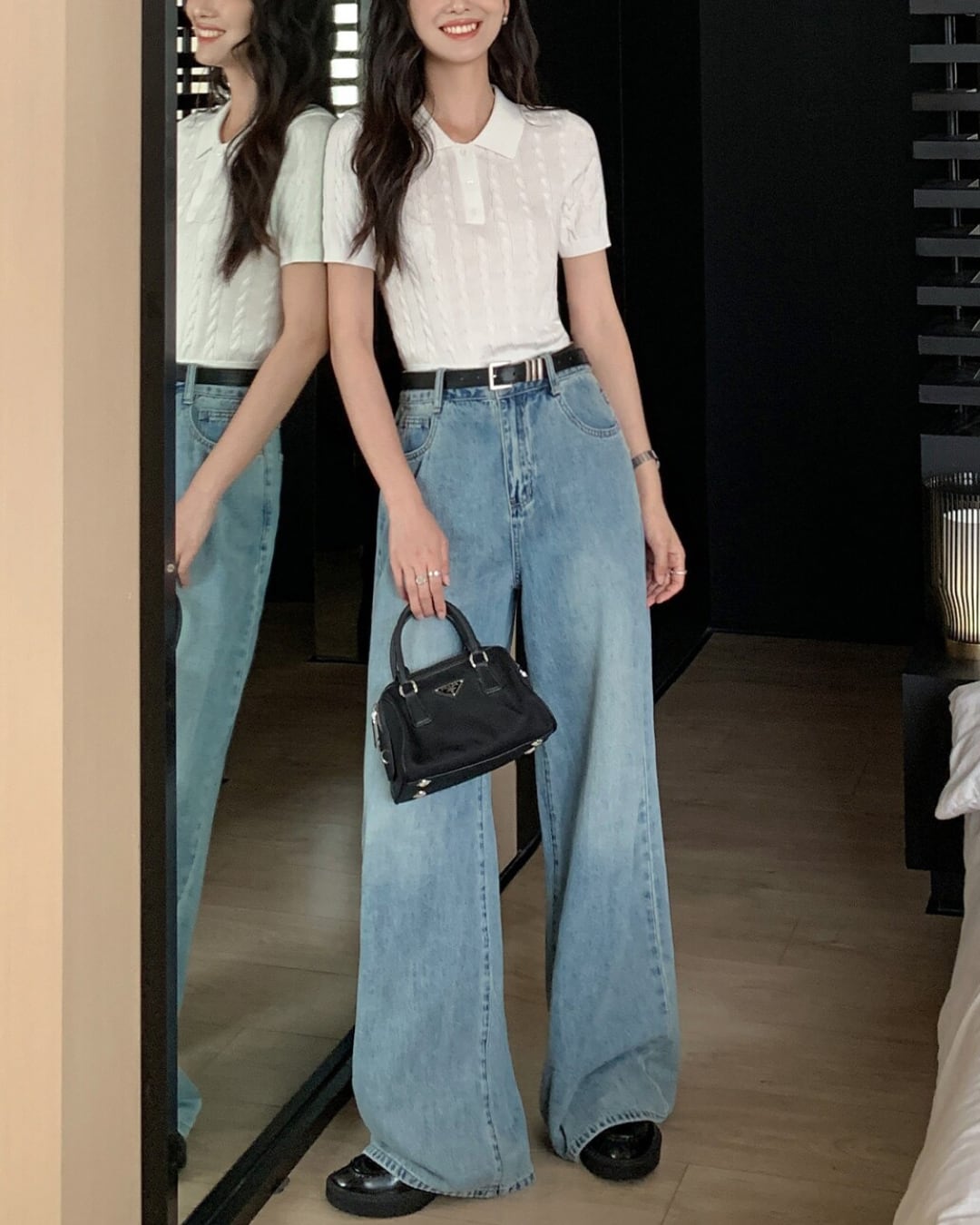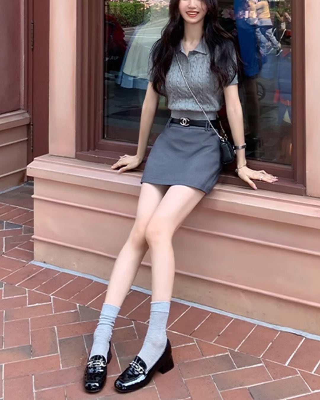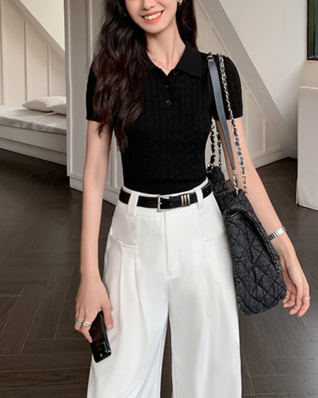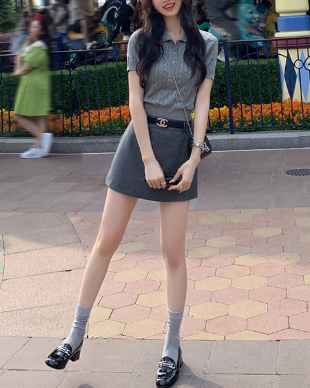 #ケーブルニット #半袖ニット #ポロニット #きれいめカジュアル #シンプルコーデ