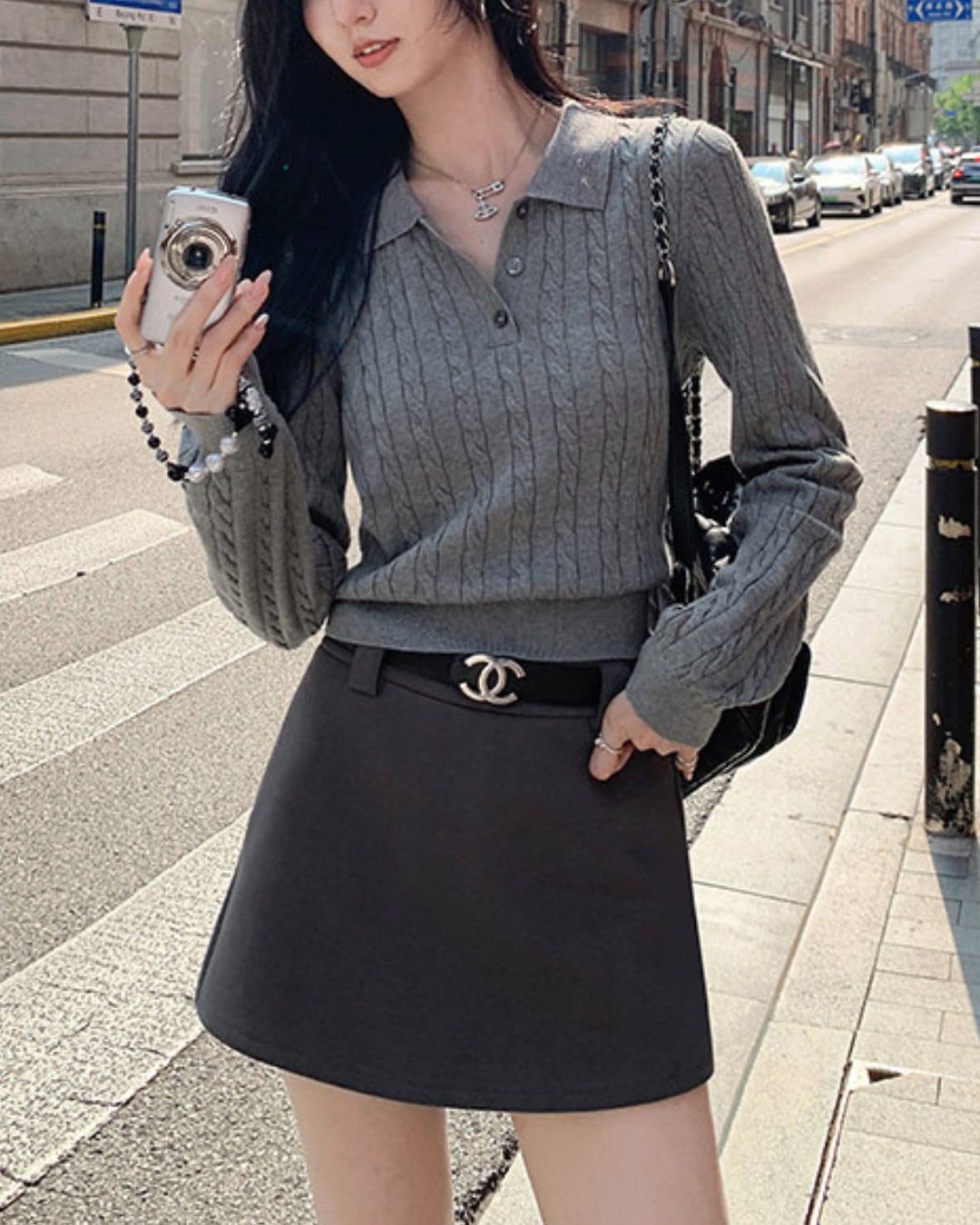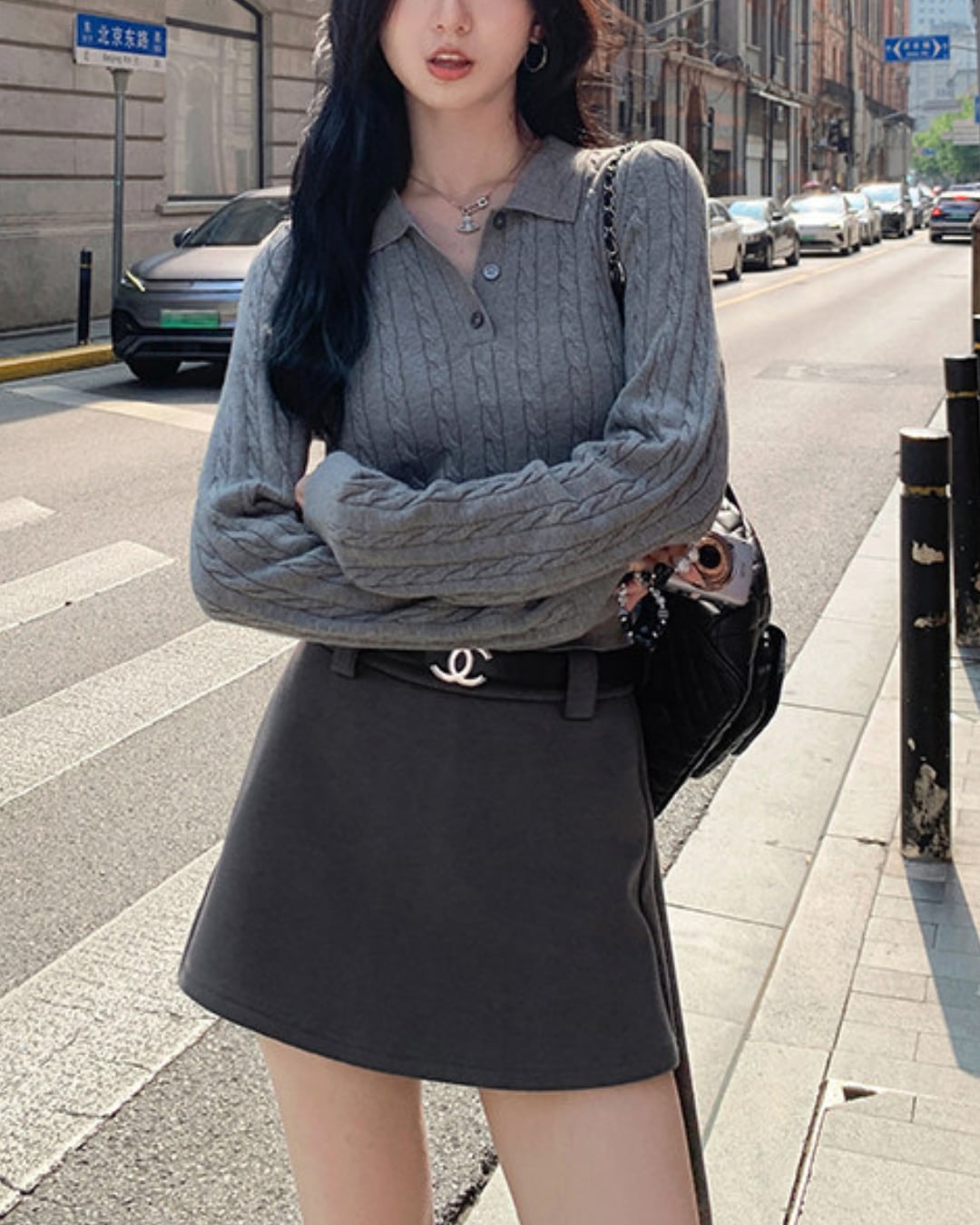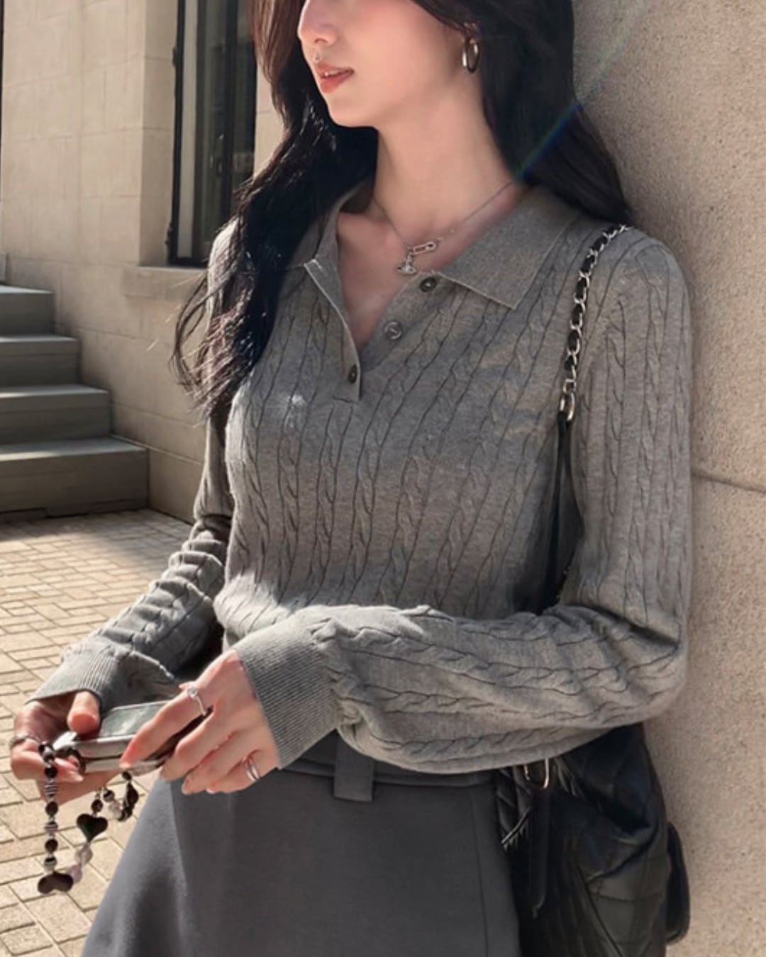 #ケーブルニット #長袖ニット #ポロニット #きれいめカジュアル #秋冬コーデ