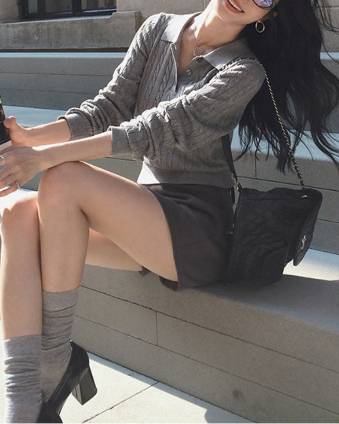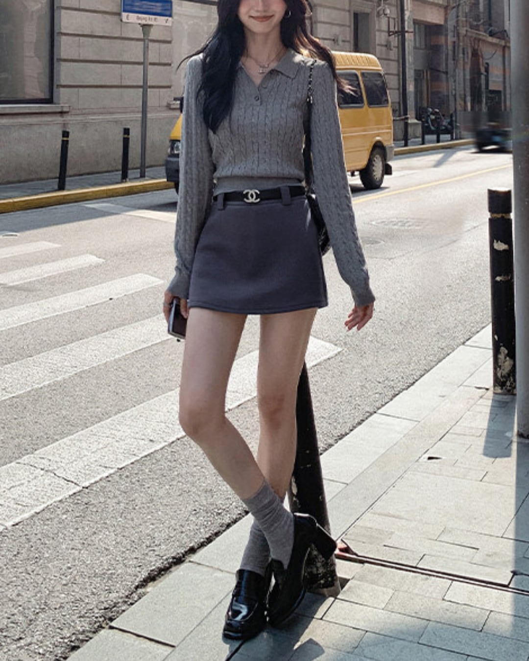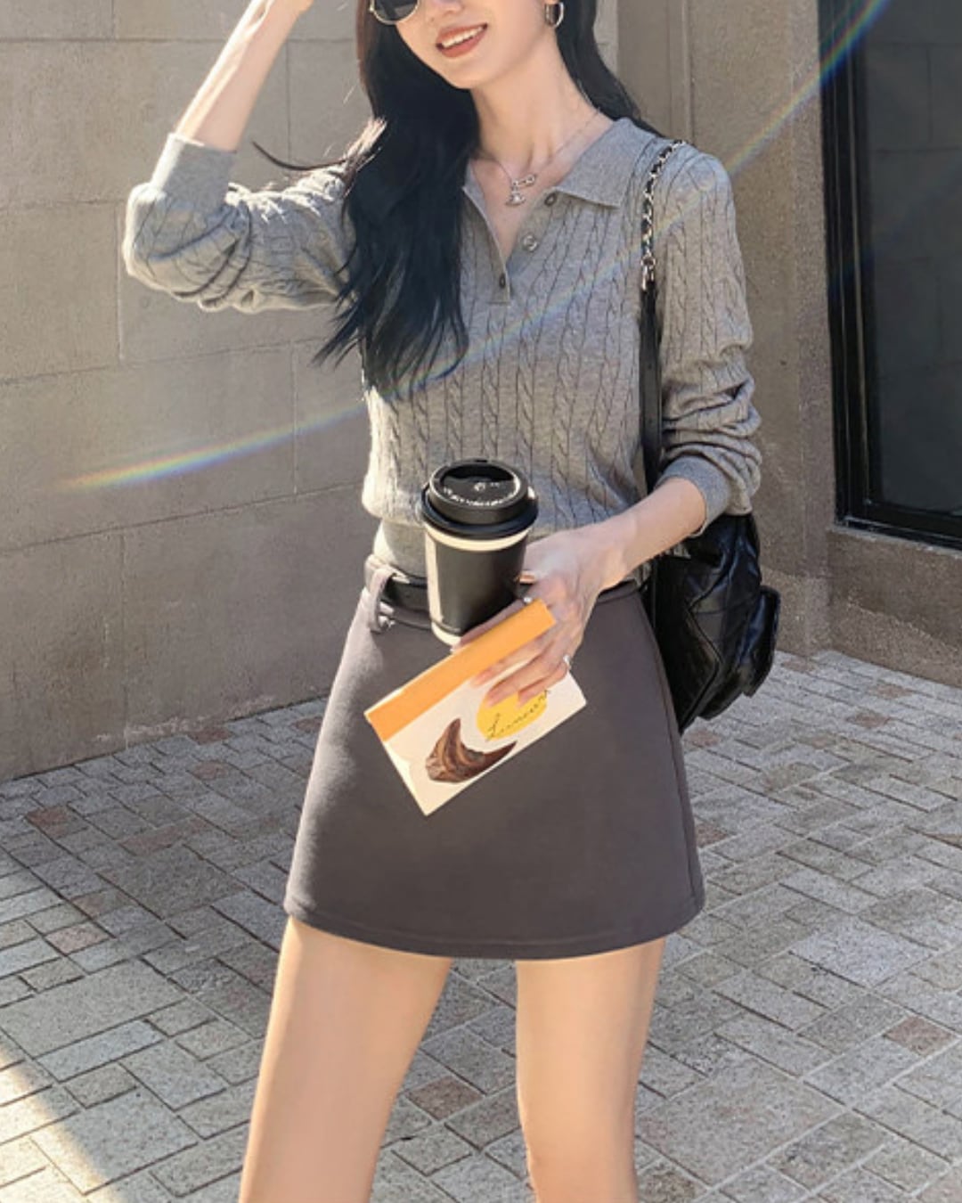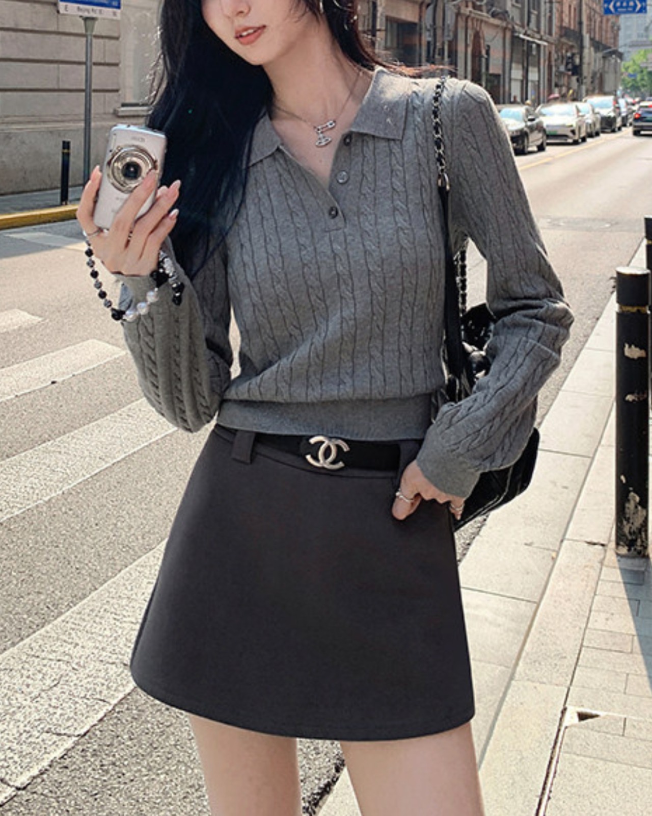#ケーブルニット #長袖ニット #ポロニット #きれいめカジュアル #秋冬コーデ