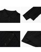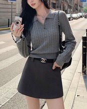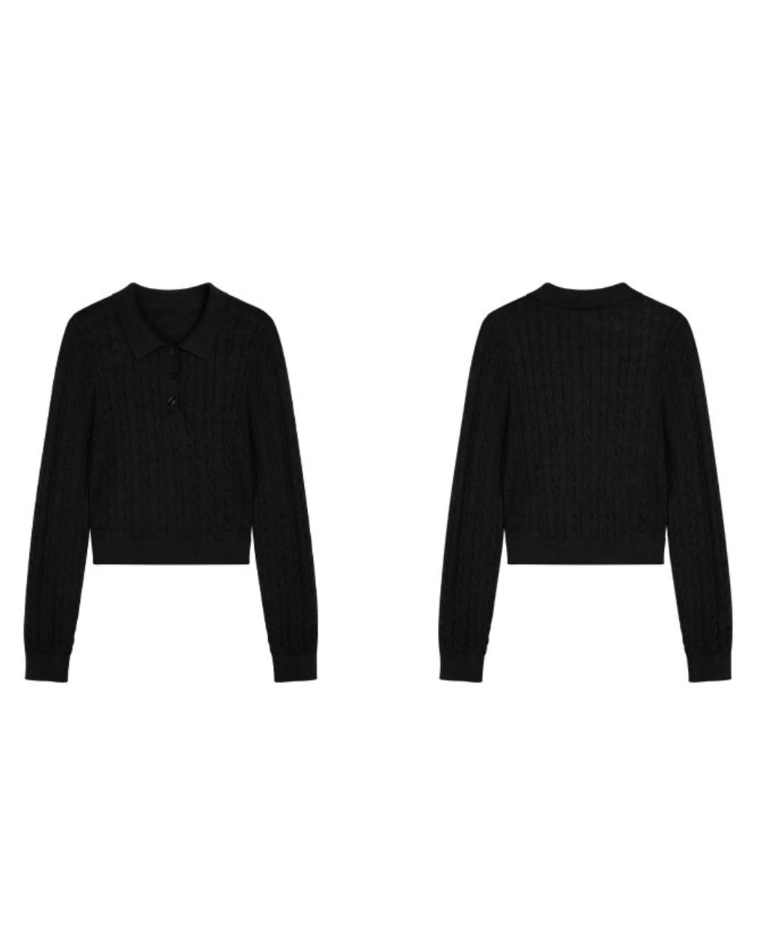 ケーブル編み長袖ニットポロトップス V10040