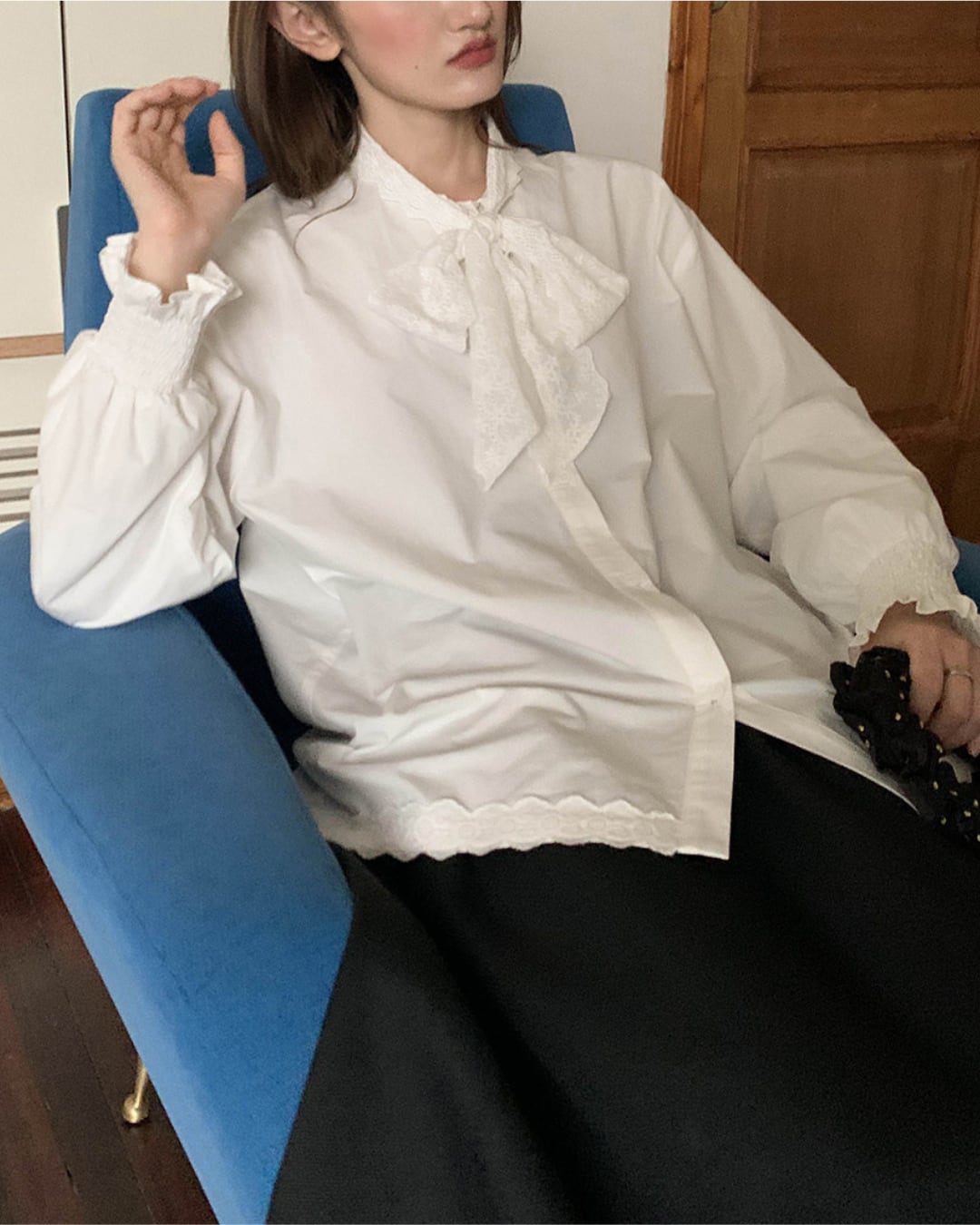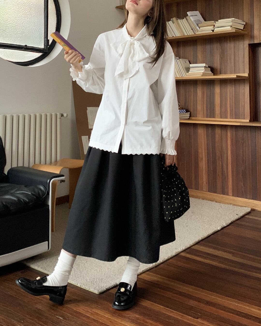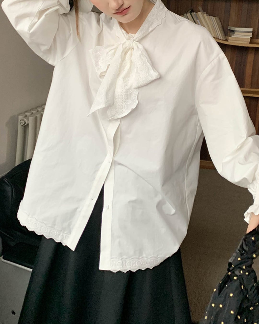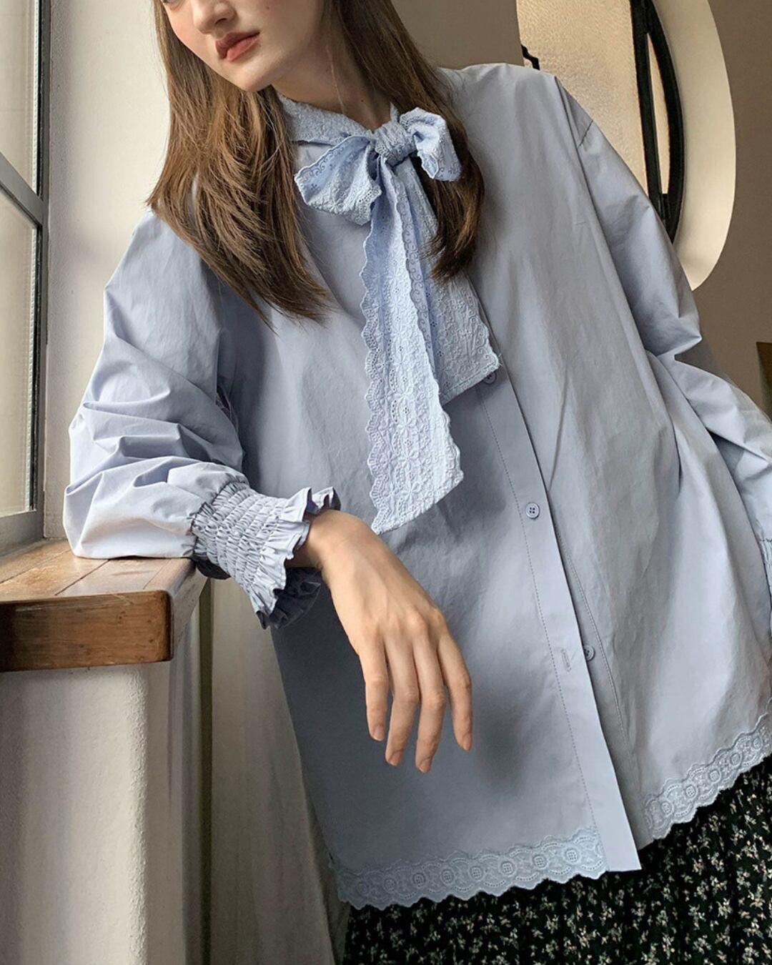 #ブラウス #コットンブラウス #リボンブラウス #長袖トップス #レース