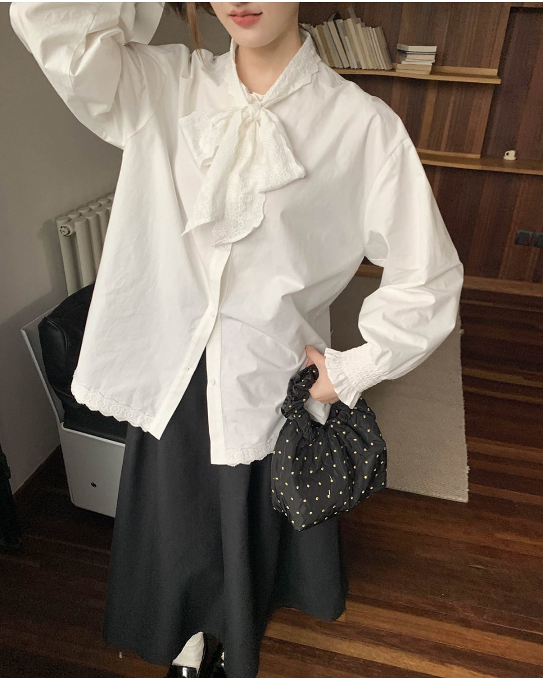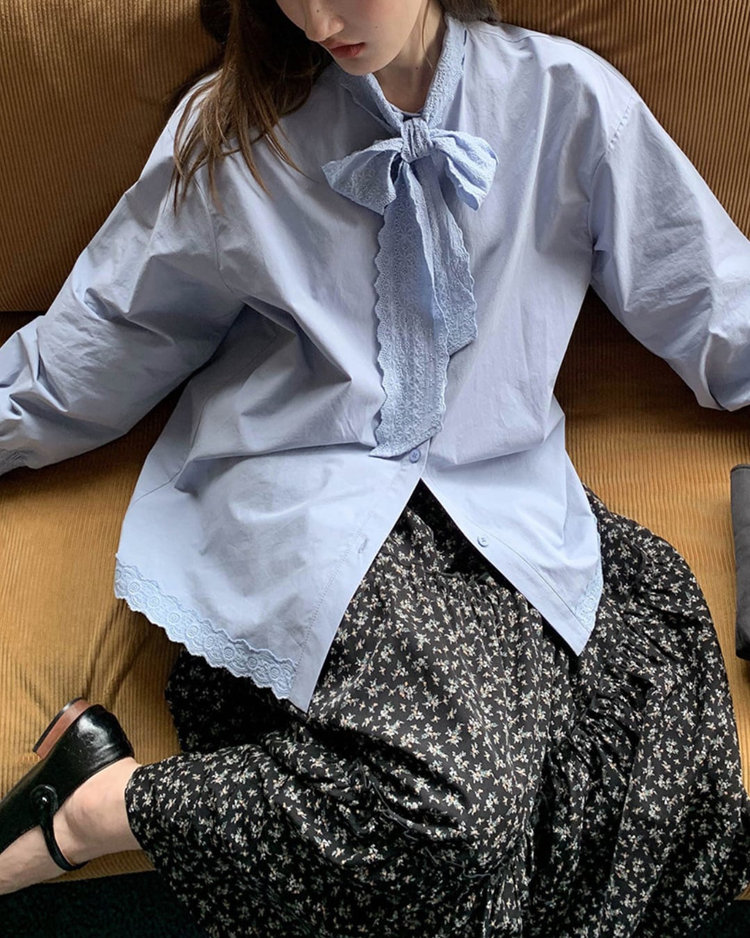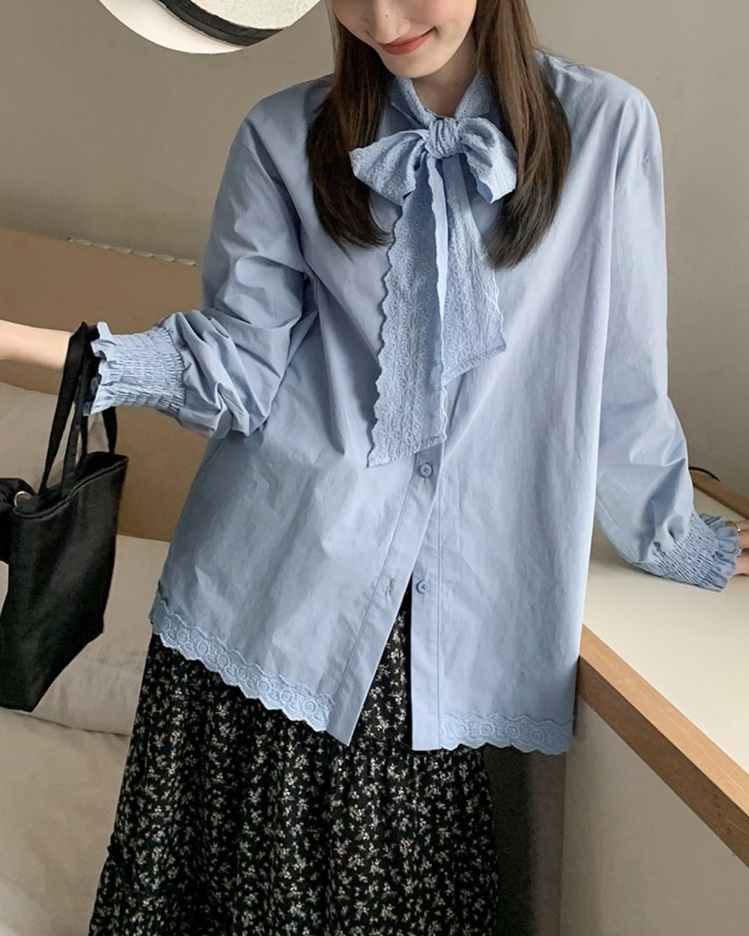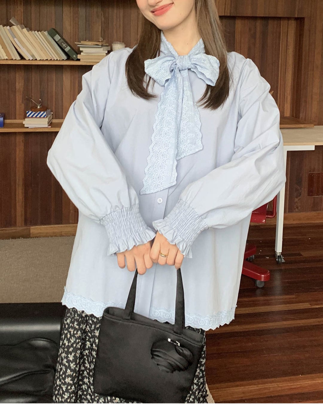 #ブラウス #コットンブラウス #リボンブラウス #長袖トップス #レース