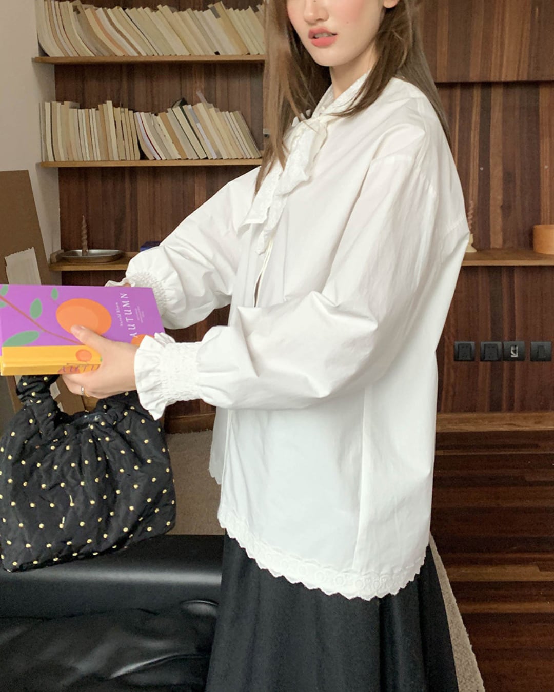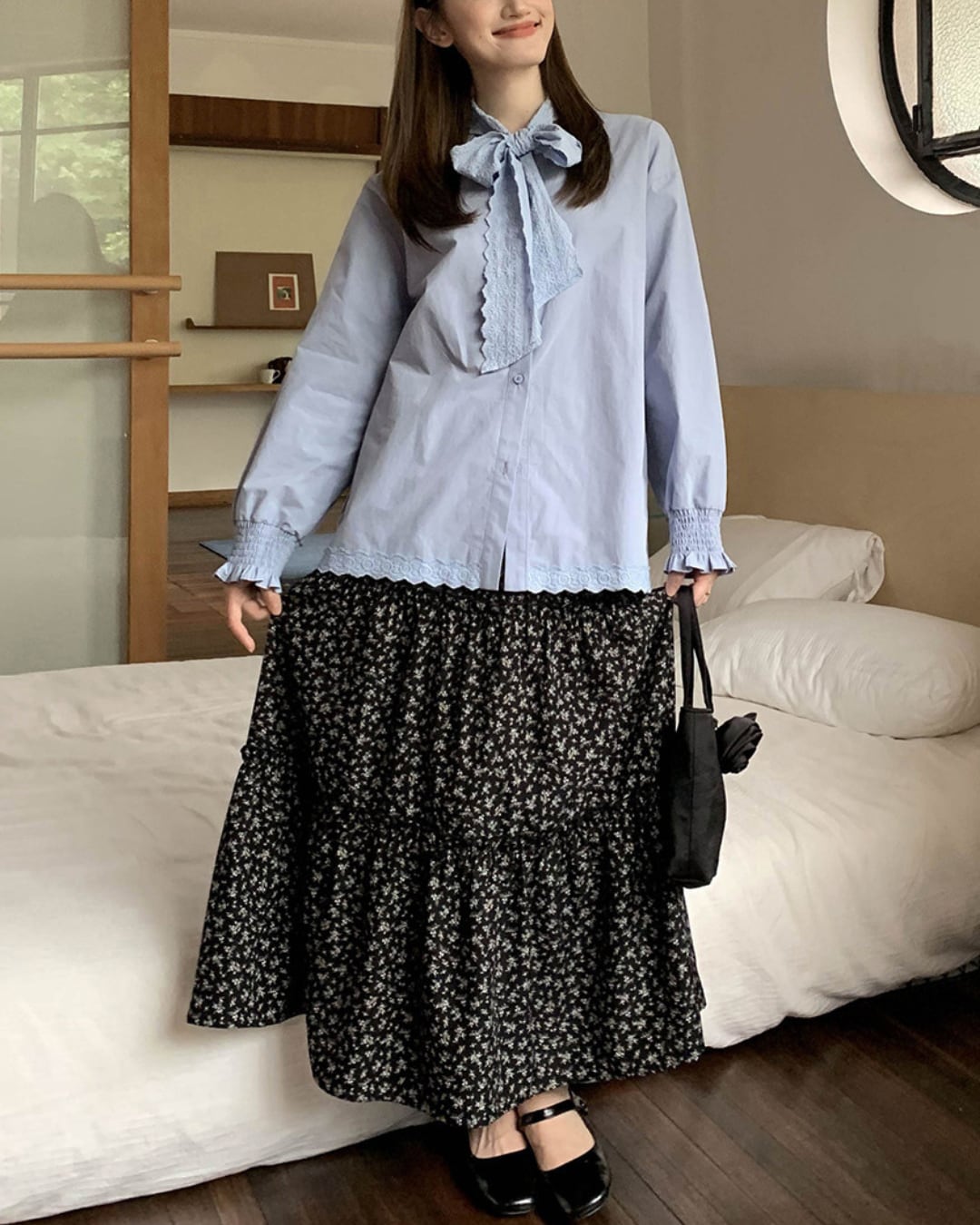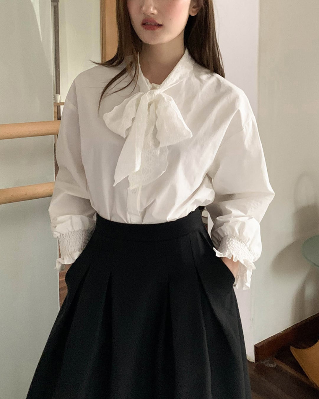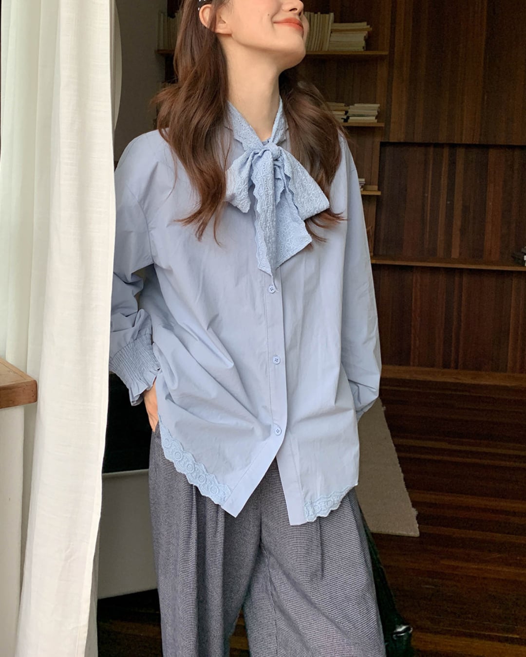 #ブラウス #コットンブラウス #リボンブラウス #長袖トップス #レース