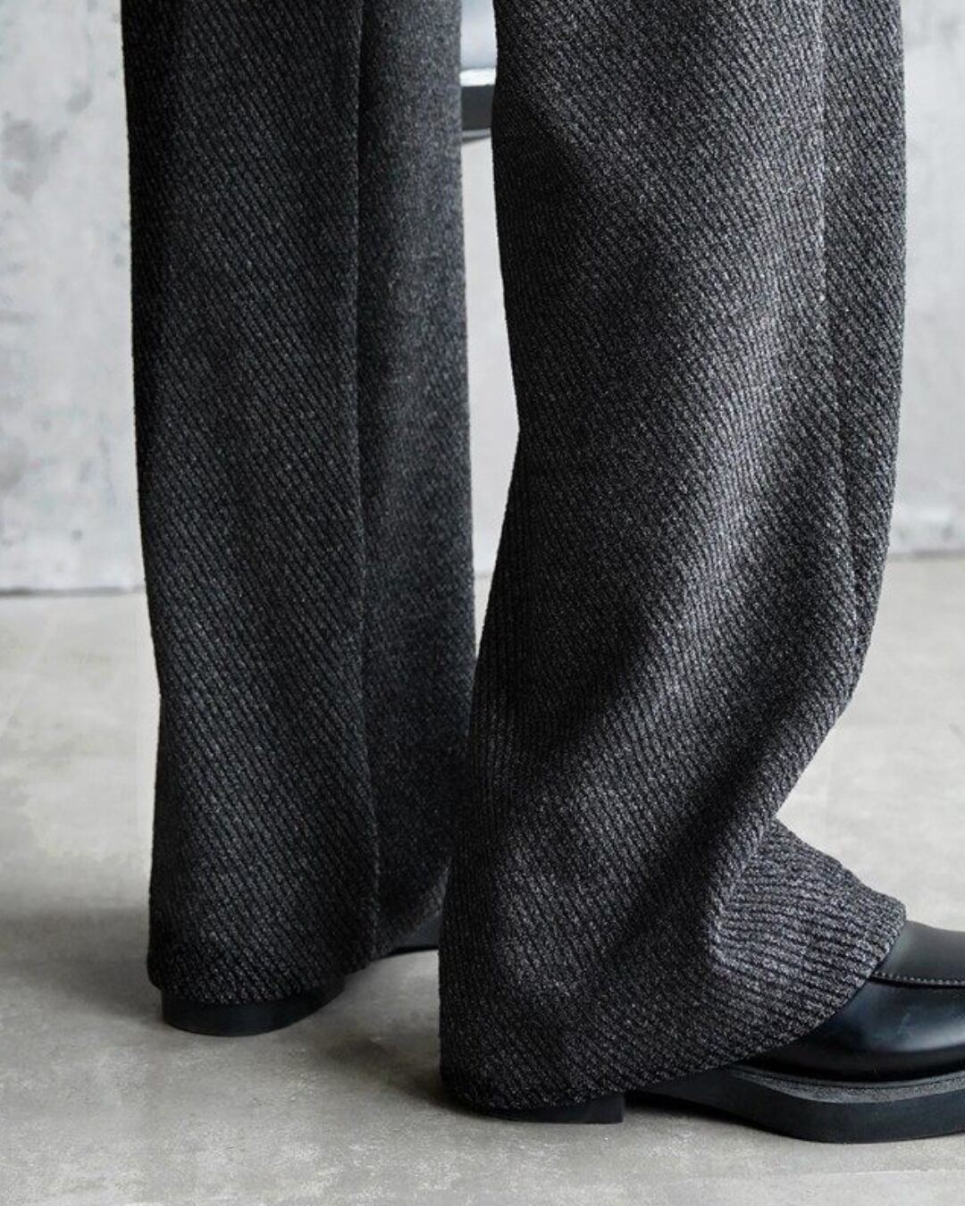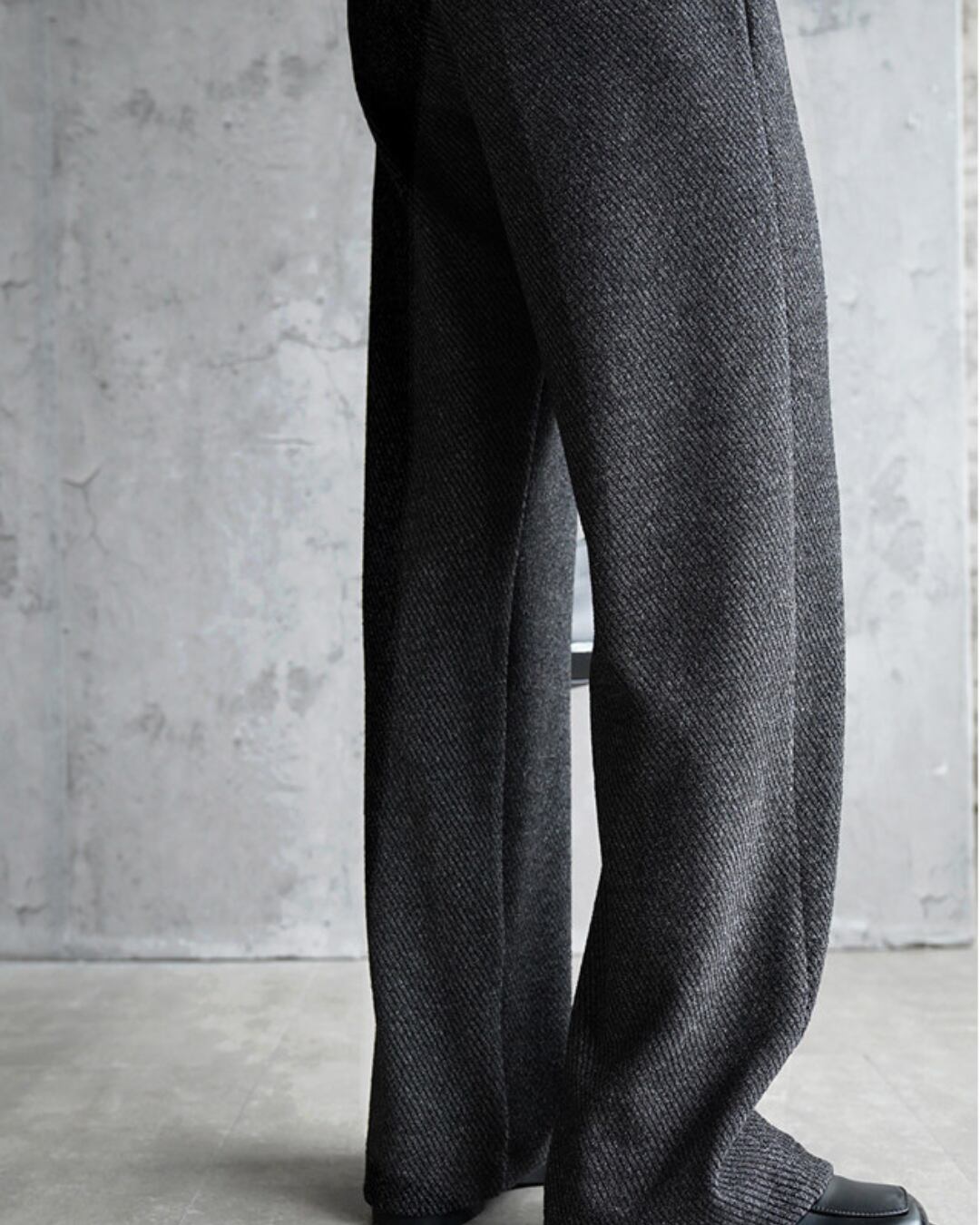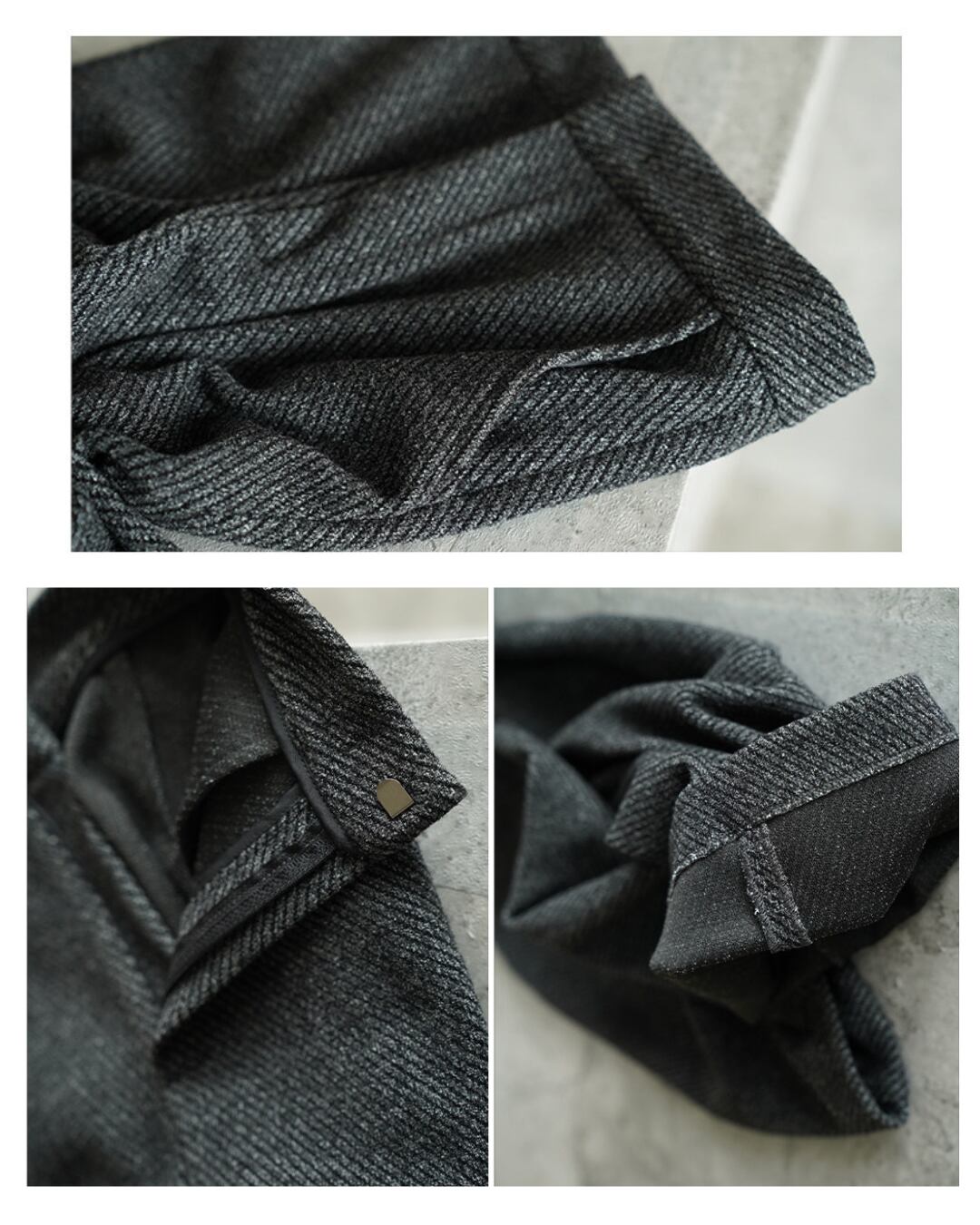 立体感のあるヘリンボーン柄が魅力のワイドスラックス。ほどよい厚みの生地で、美しい落ち感と高級感のある仕上がりに。シンプルながらも上品な存在感を演出してくれる1本です。