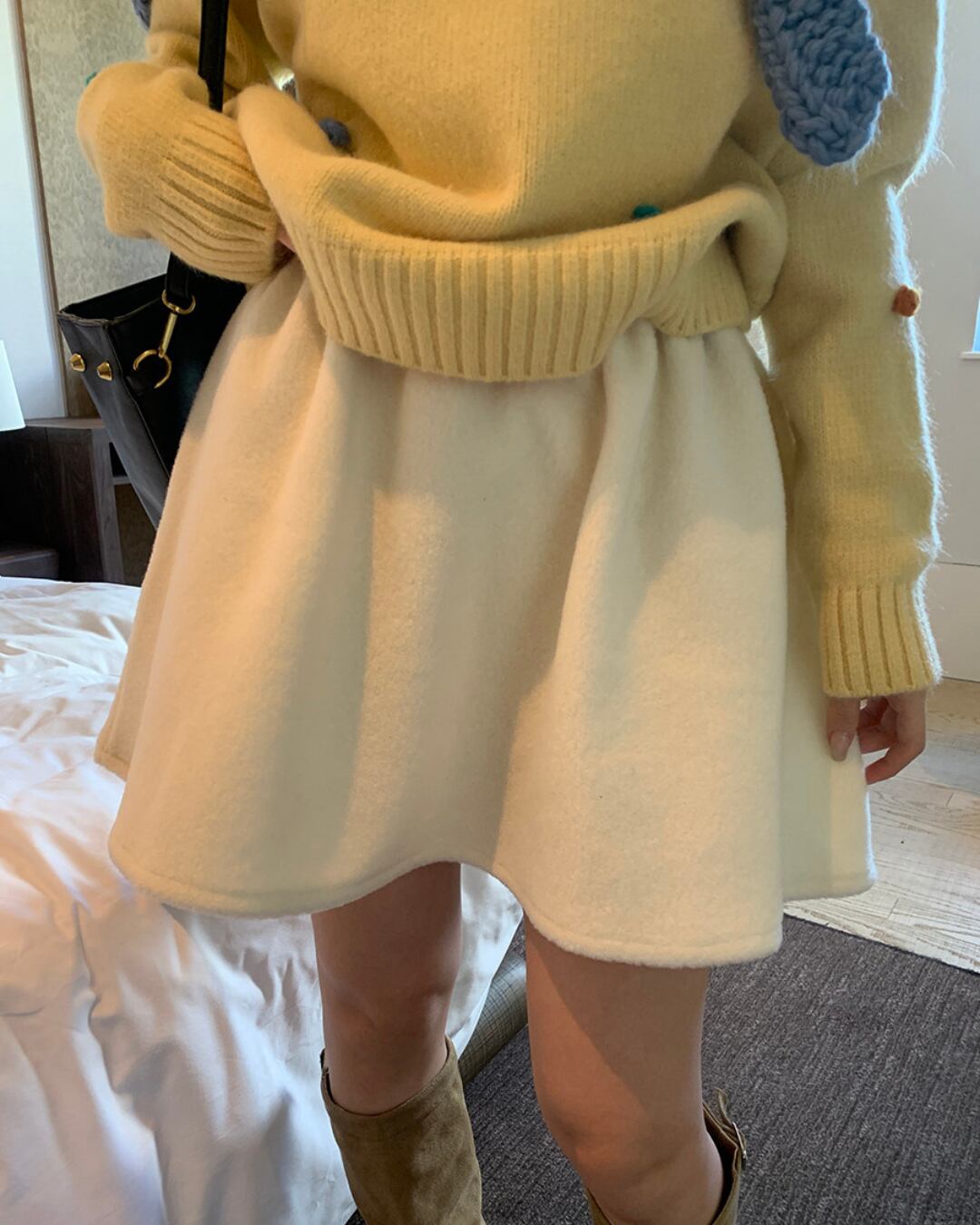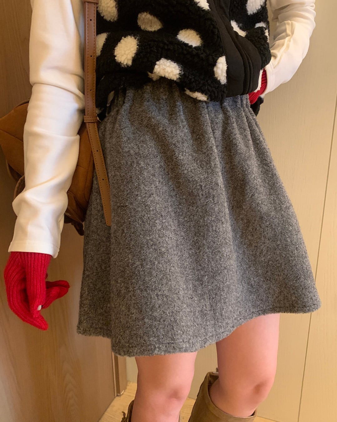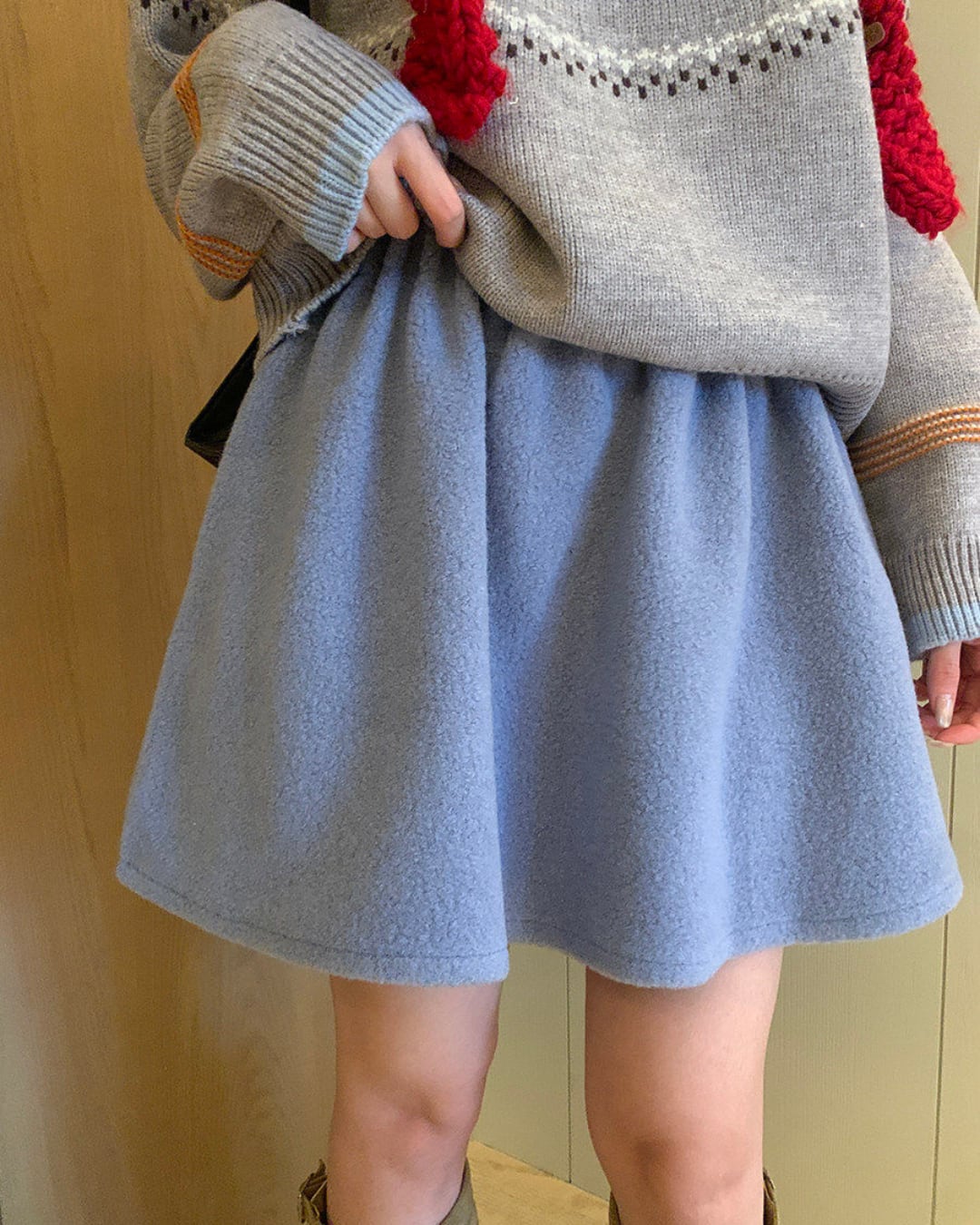 #フレアスカート #ウールライク #ミニスカート #秋冬コーデ #ガーリー #ウエストゴム