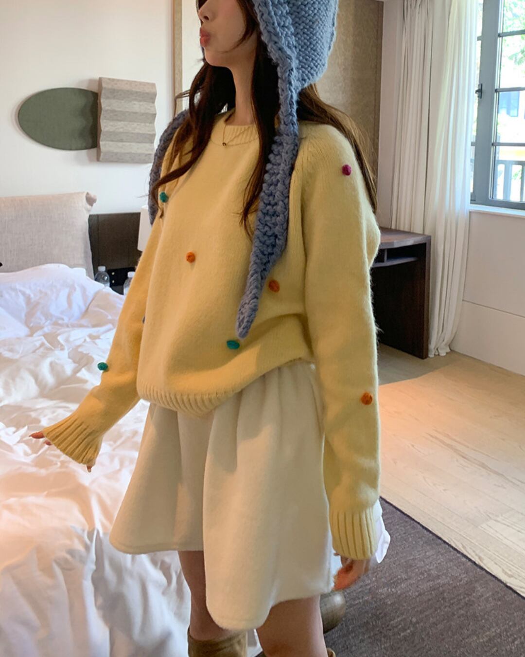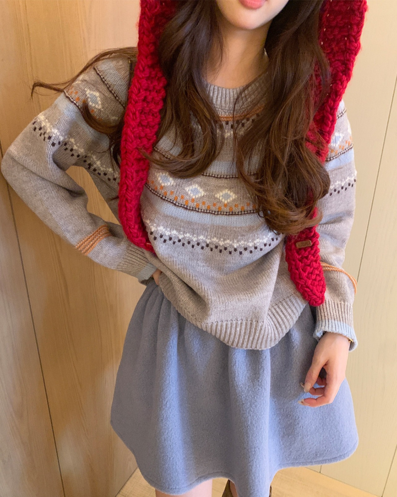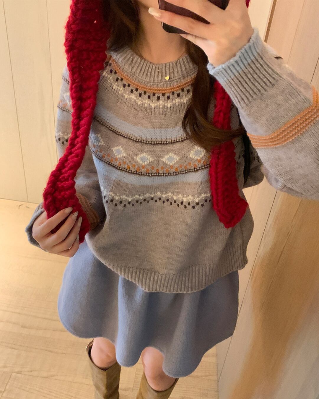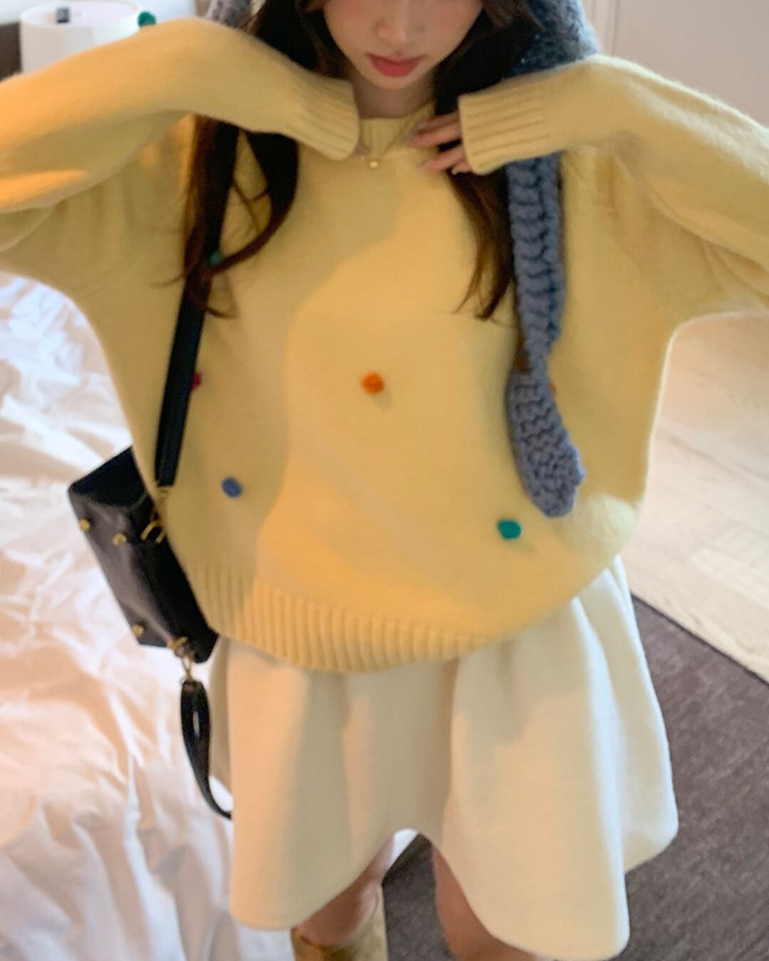 #フレアスカート #ウールライク #ミニスカート #秋冬コーデ #ガーリー #ウエストゴム