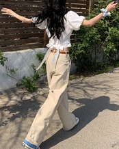 #ブラウス #セーラーカラー #パフスリーブ #ショート丈 #ホワイトトップス #フェミニン