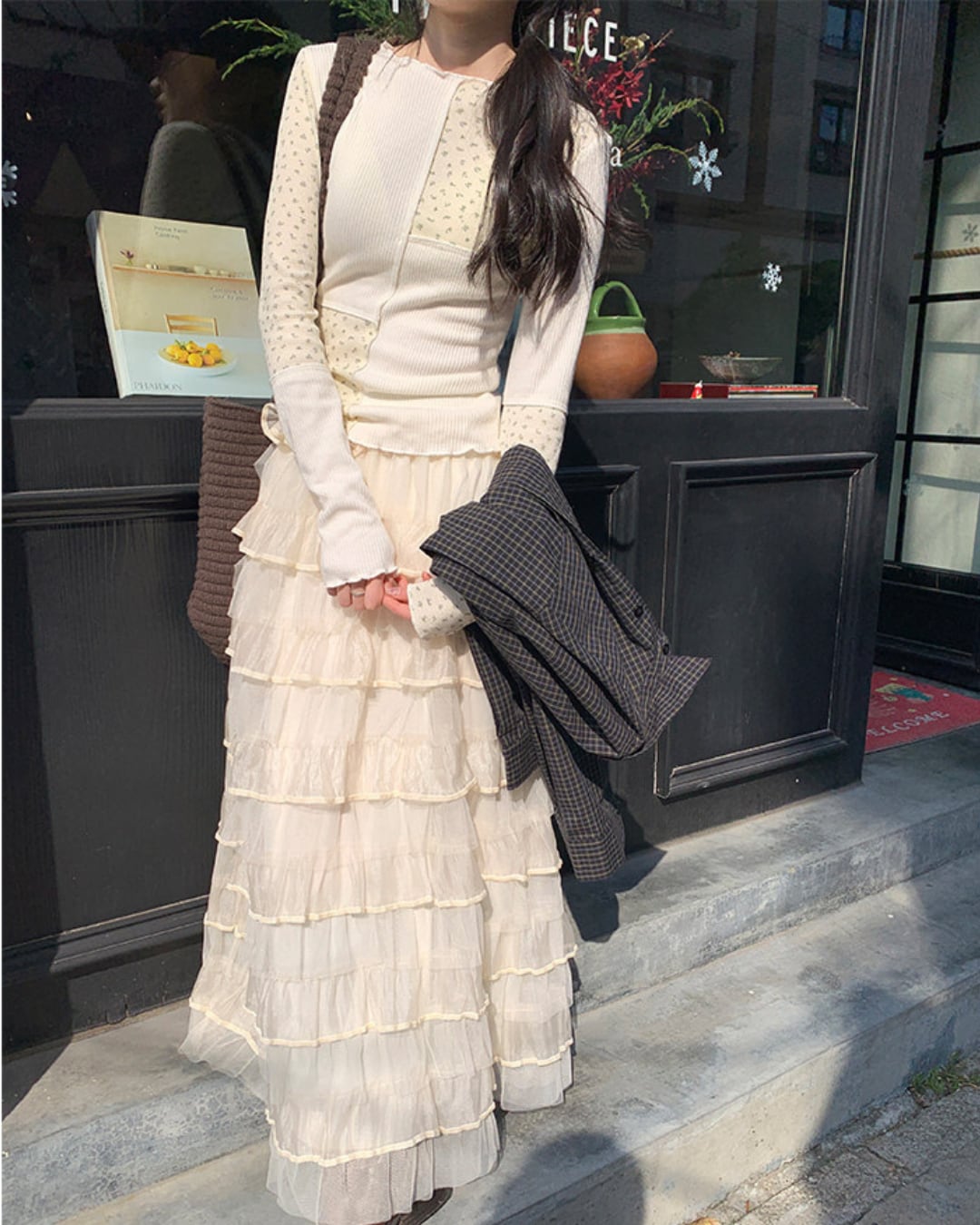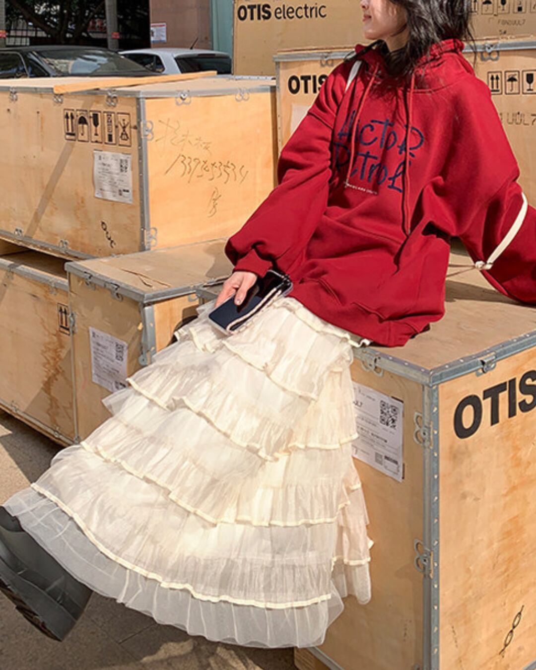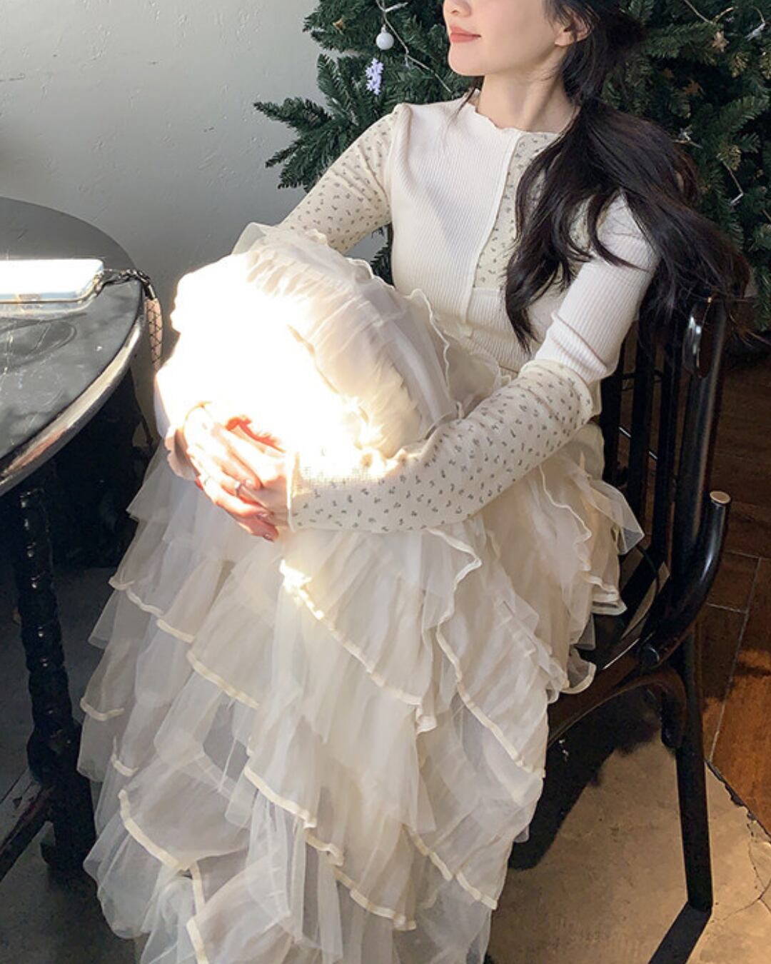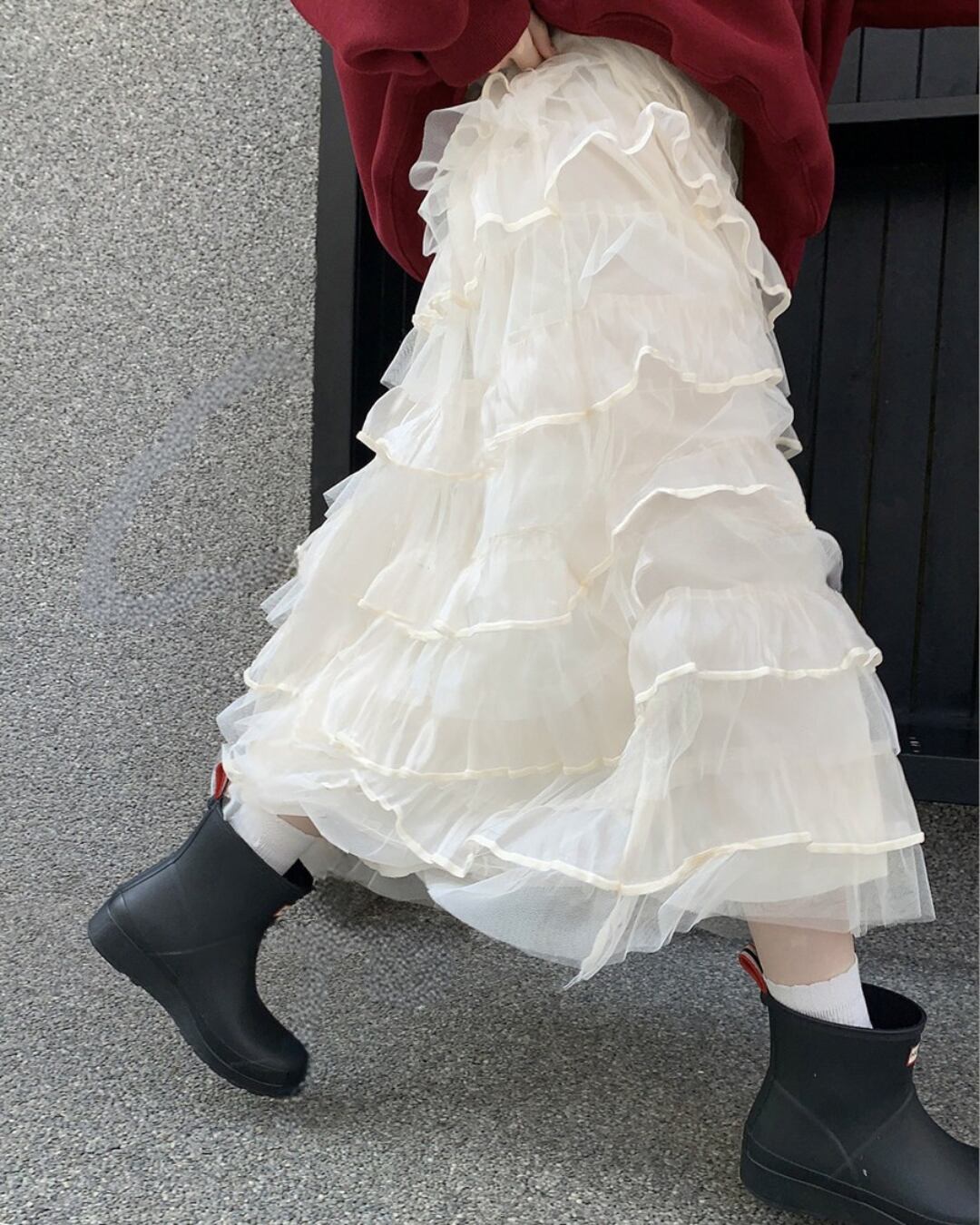 #チュールスカート #フリルスカート #ティアード #ボリュームスカート #甘めコーデ #ガーリースタイル