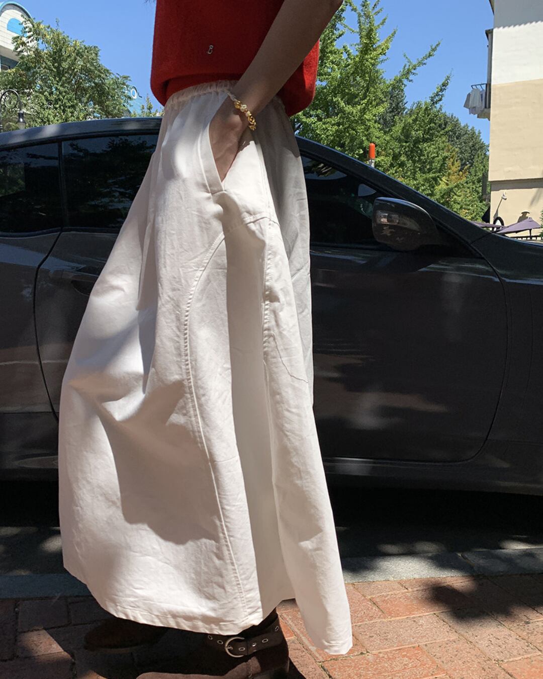 #ロングスカート #コットンスカート #ホワイトコーデ #ナチュラルスタイル #ウエストゴム #カジュアルガーリー