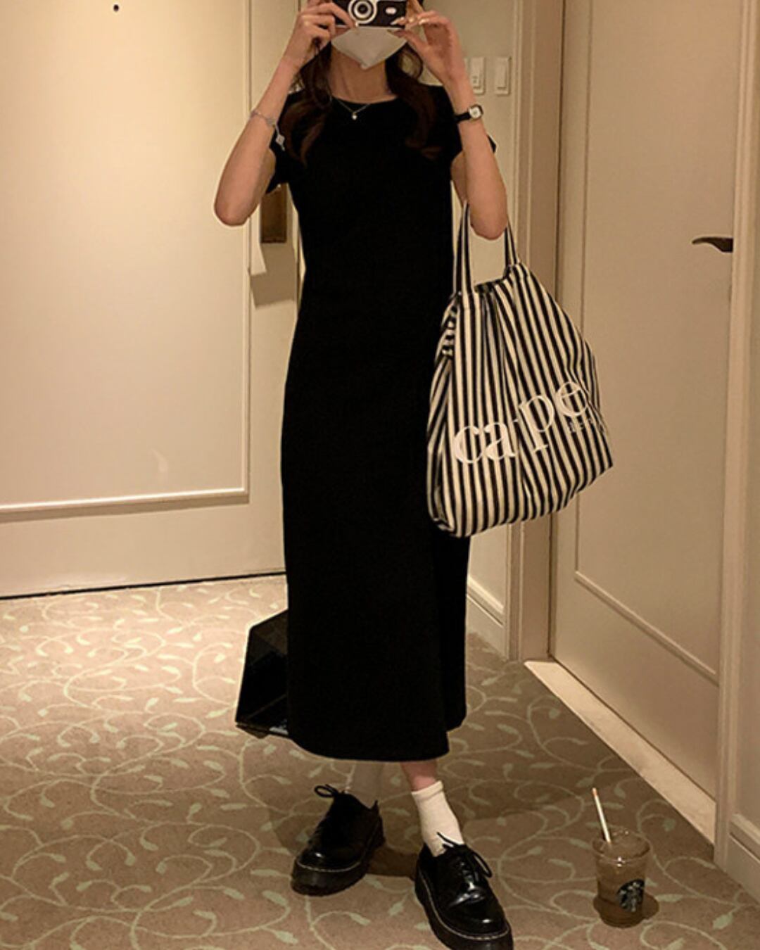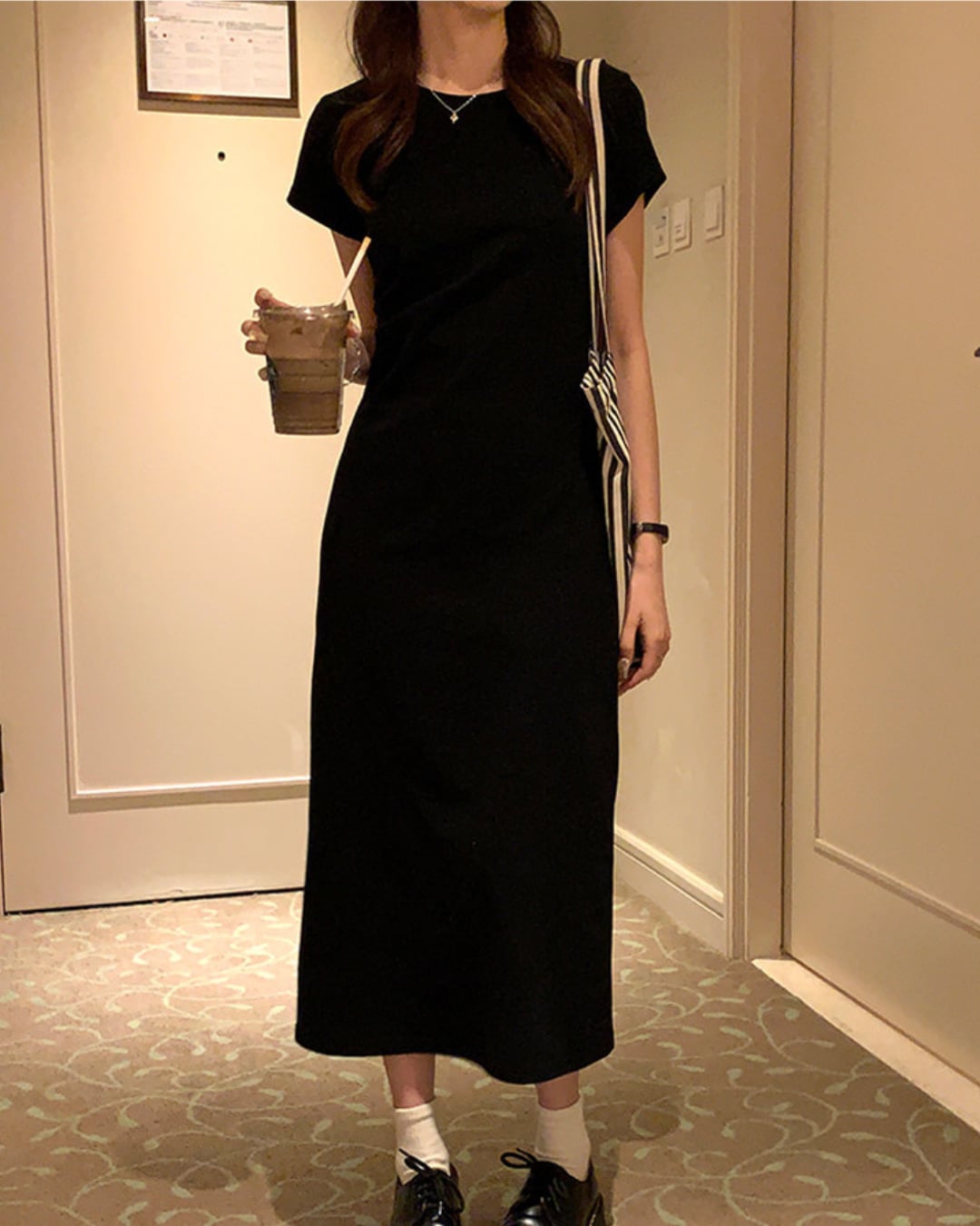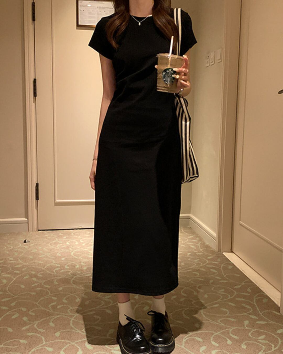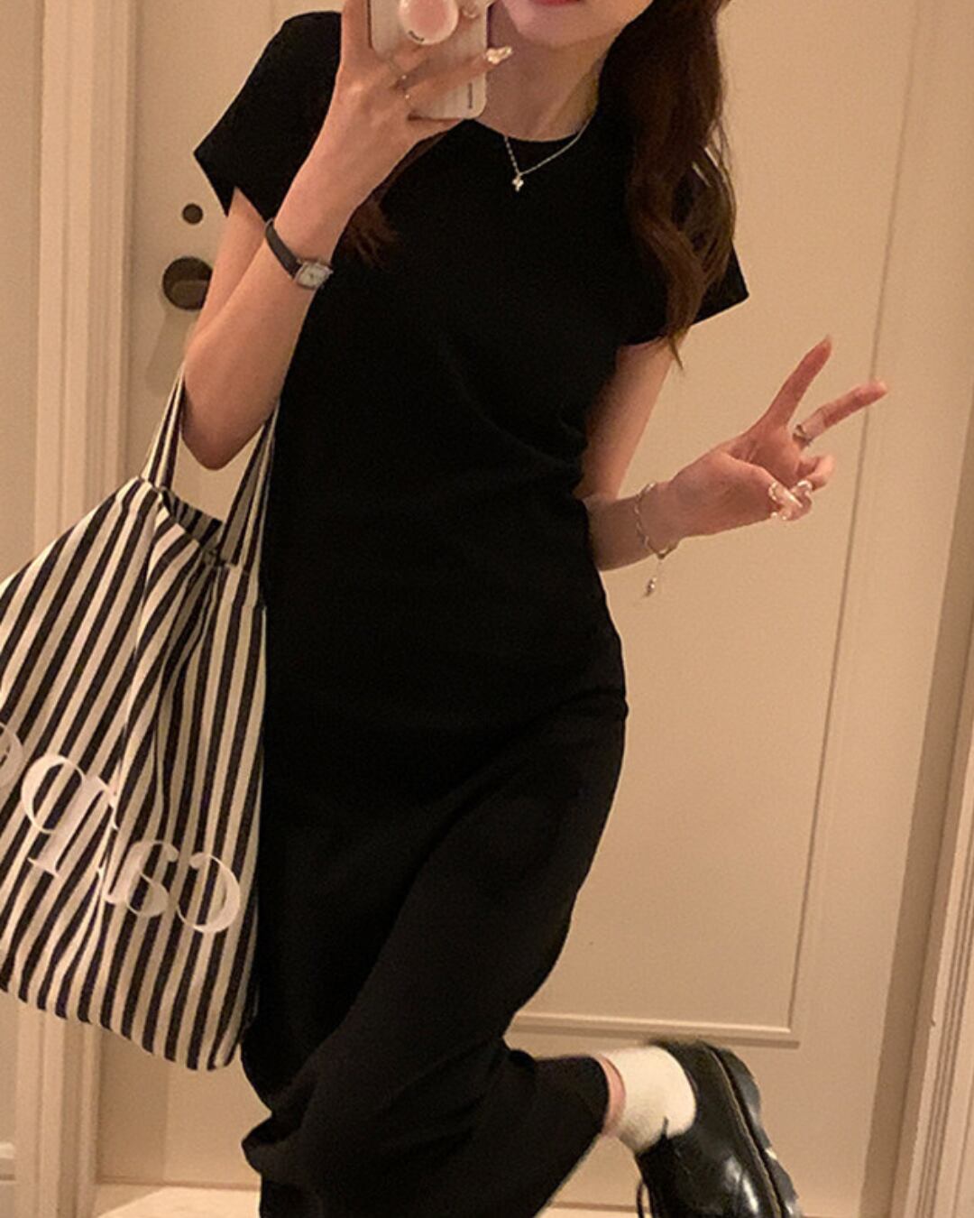 #ロングワンピース #ブラックワンピース #タイトワンピース #半袖ワンピース #大人カジュアル #ミニマルコーデ