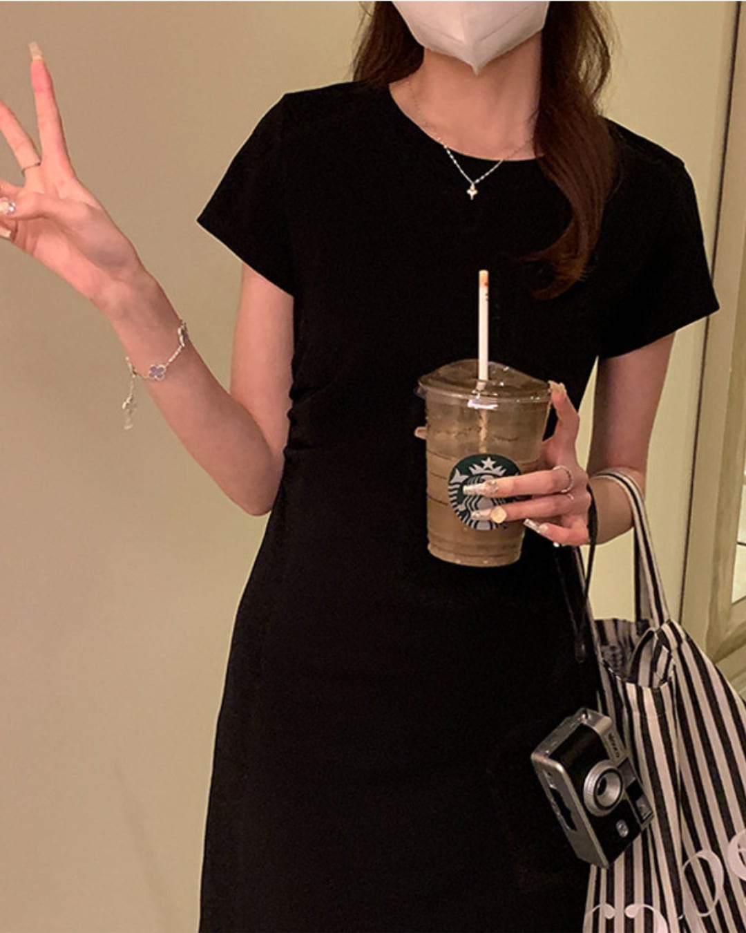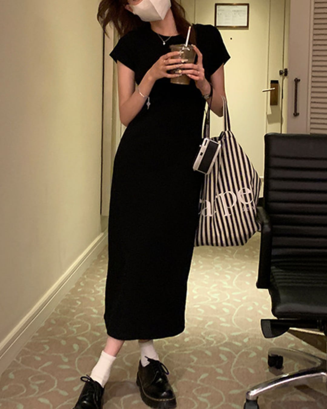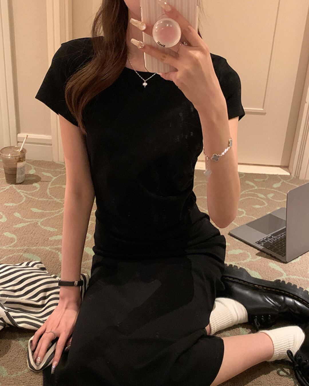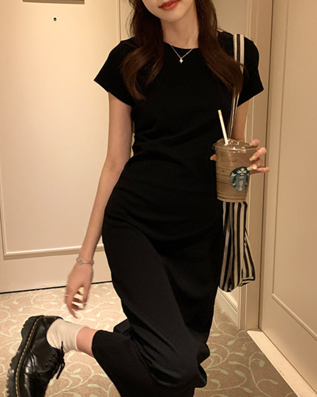 #ロングワンピース #ブラックワンピース #タイトワンピース #半袖ワンピース #大人カジュアル #ミニマルコーデ