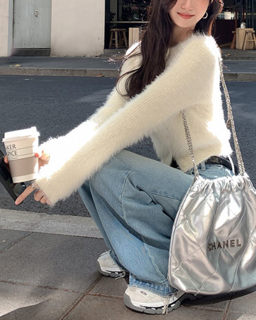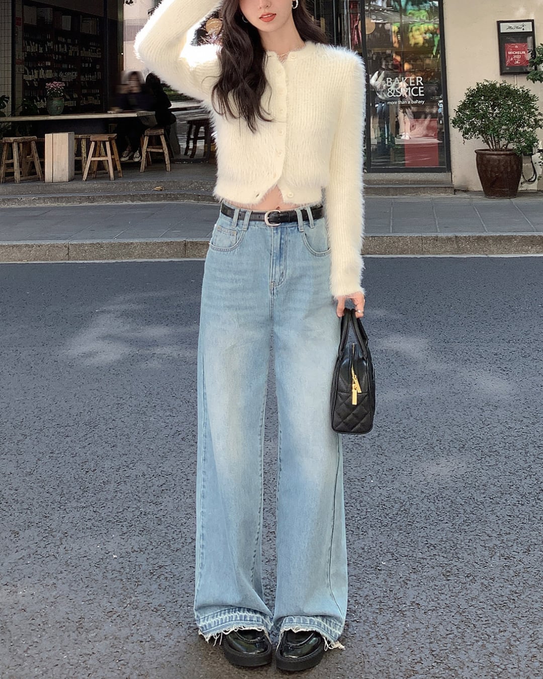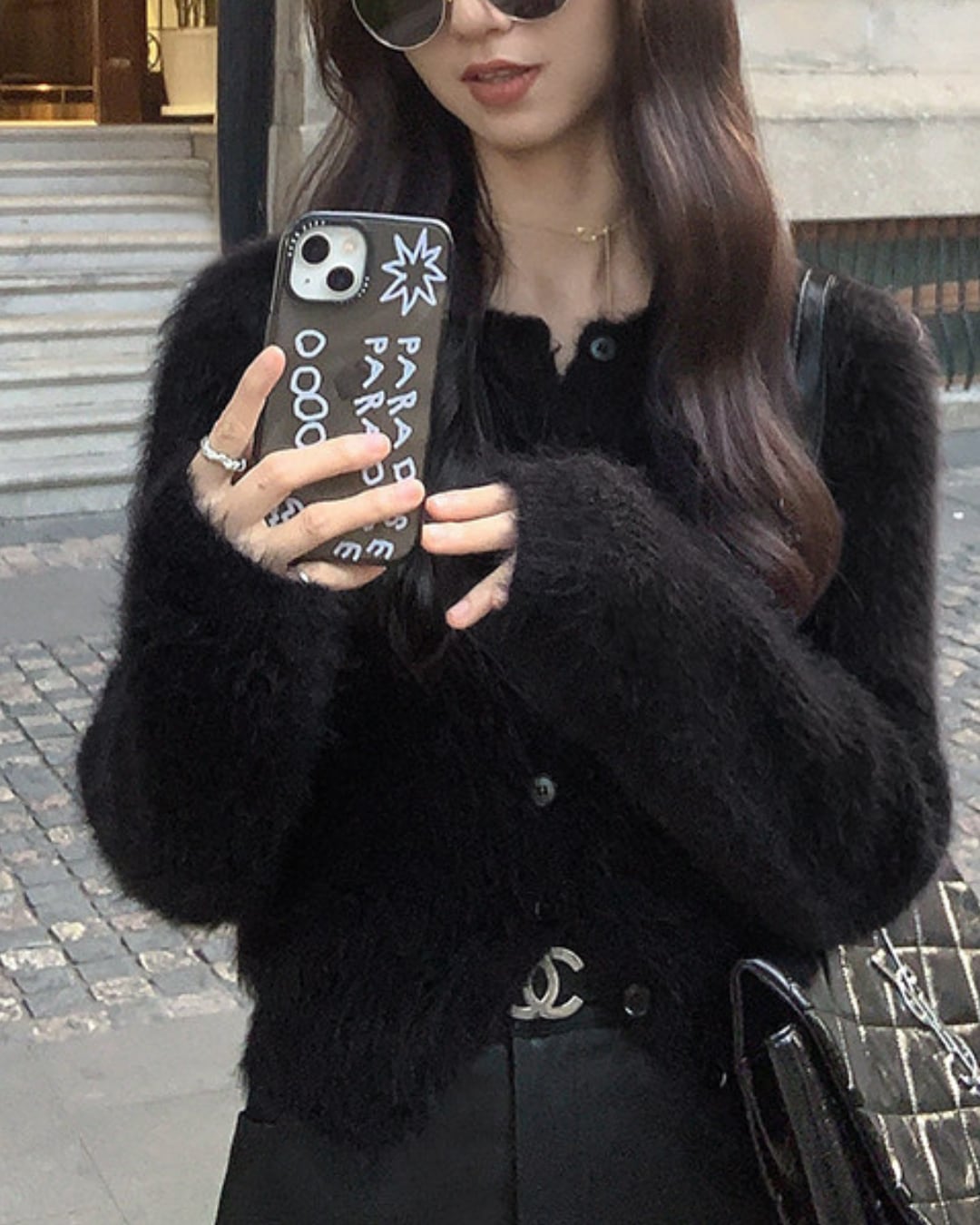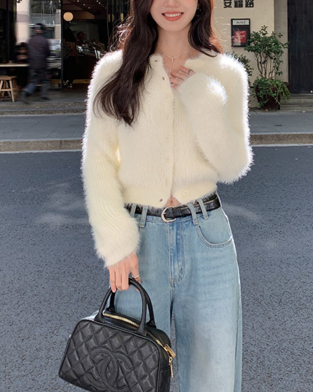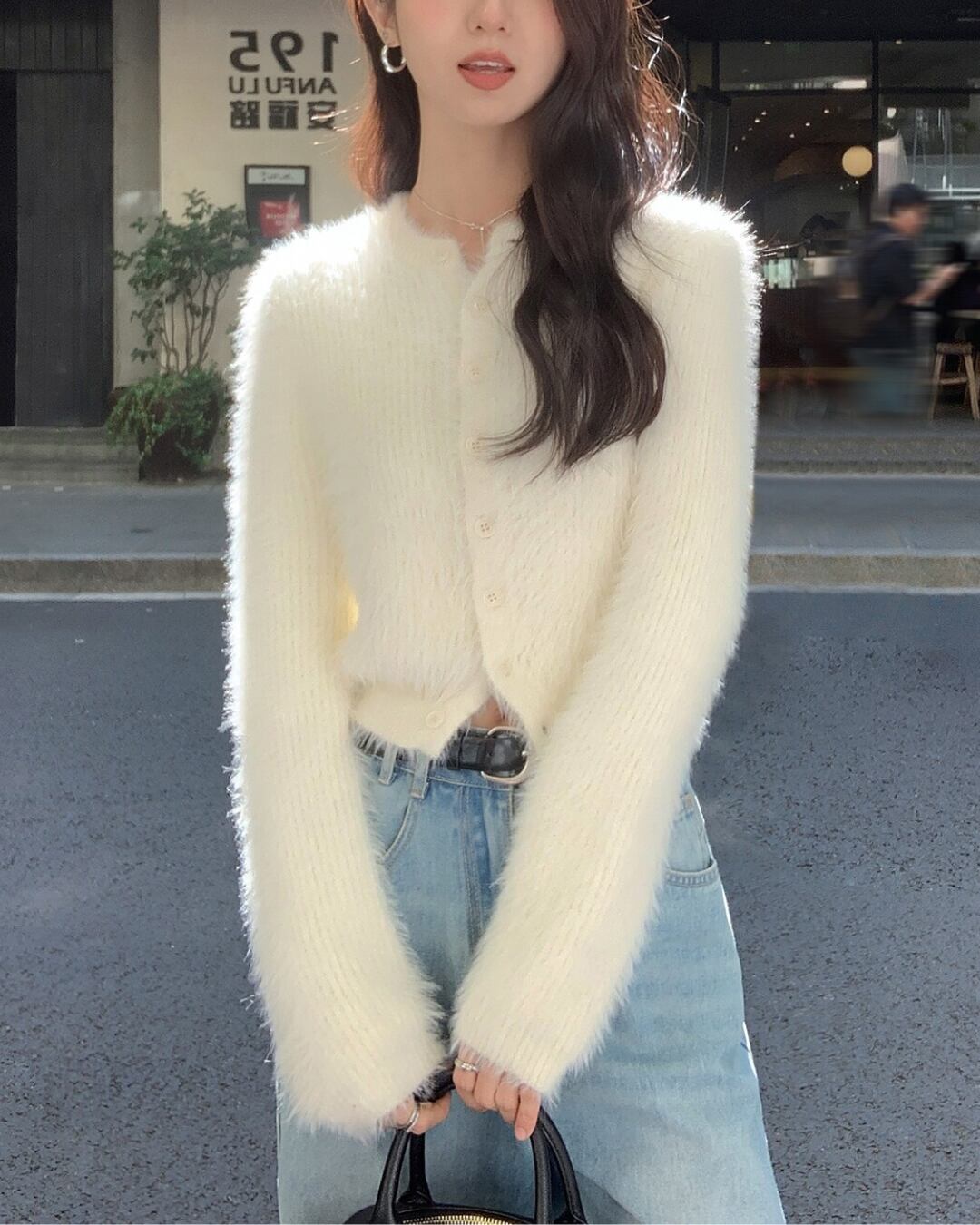 #シャギーニット #ニットカーディガン #ショート丈トップス #大人カジュアル #フェミニンスタイル