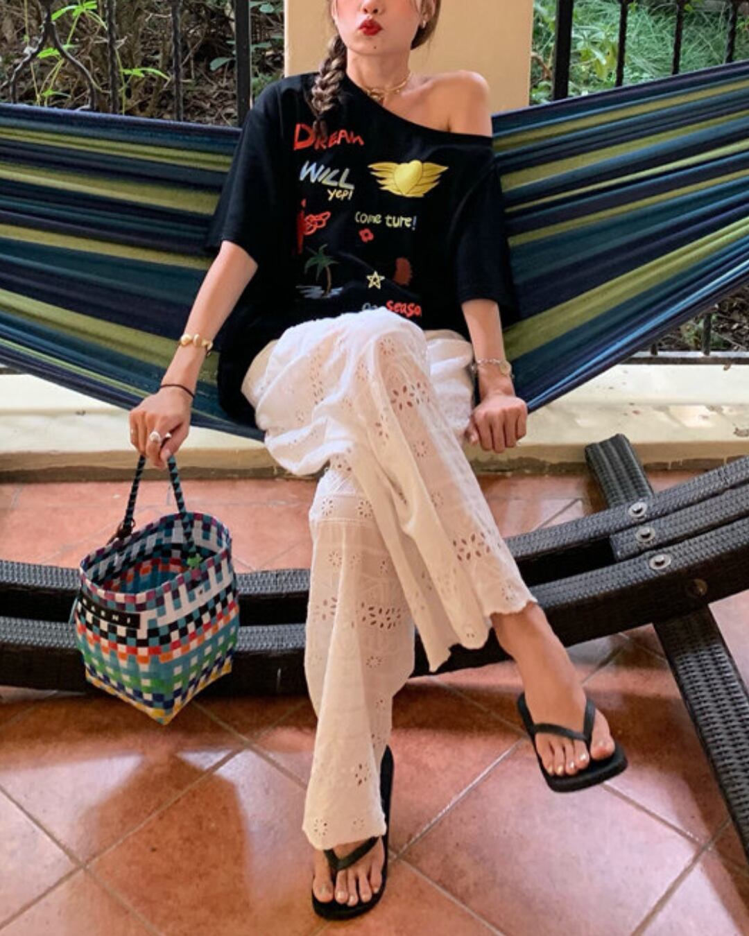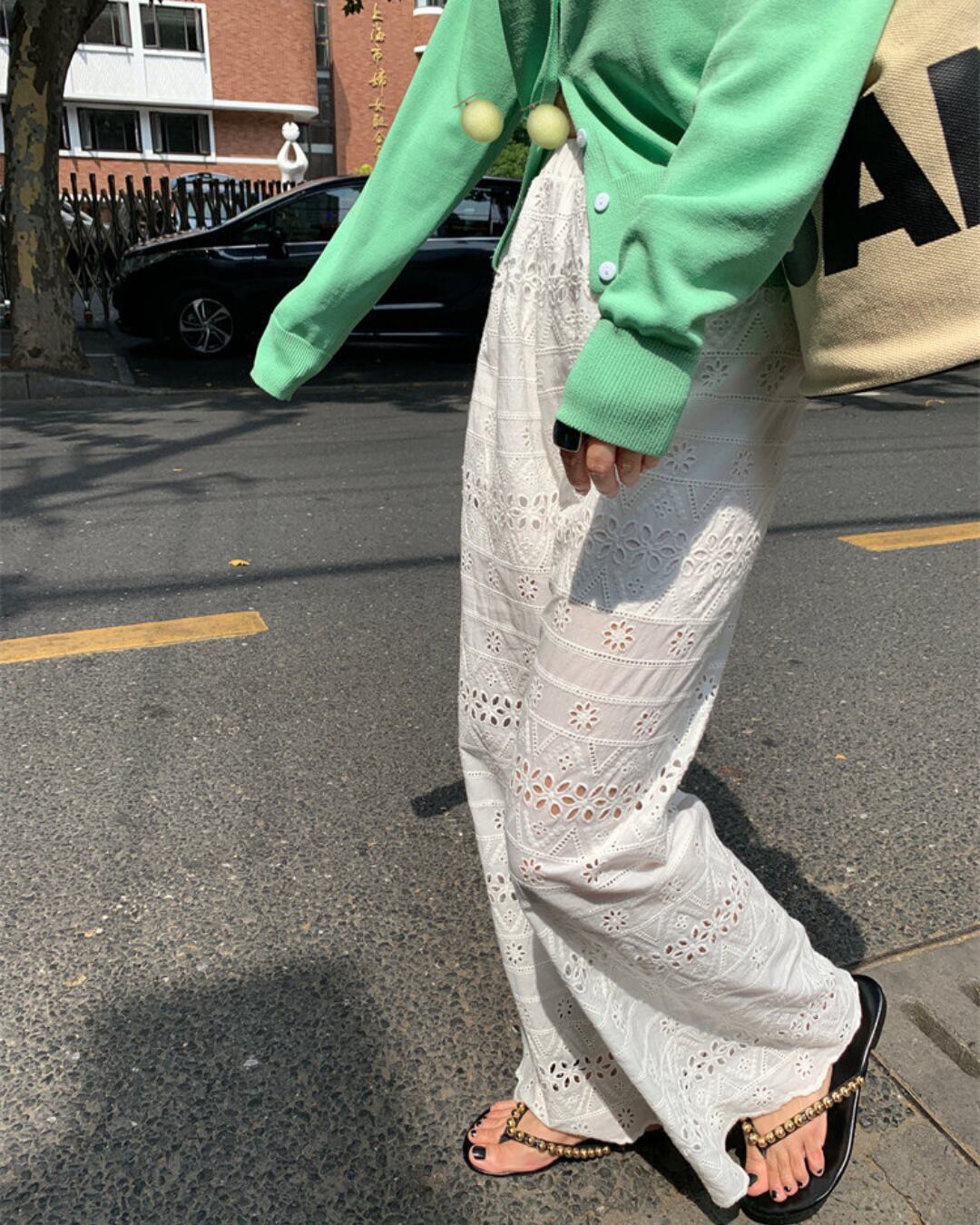 #レースパンツ #ワイドパンツ #ホワイトコーデ #大人フェミニン #春夏コーデ #きれいめスタイル
