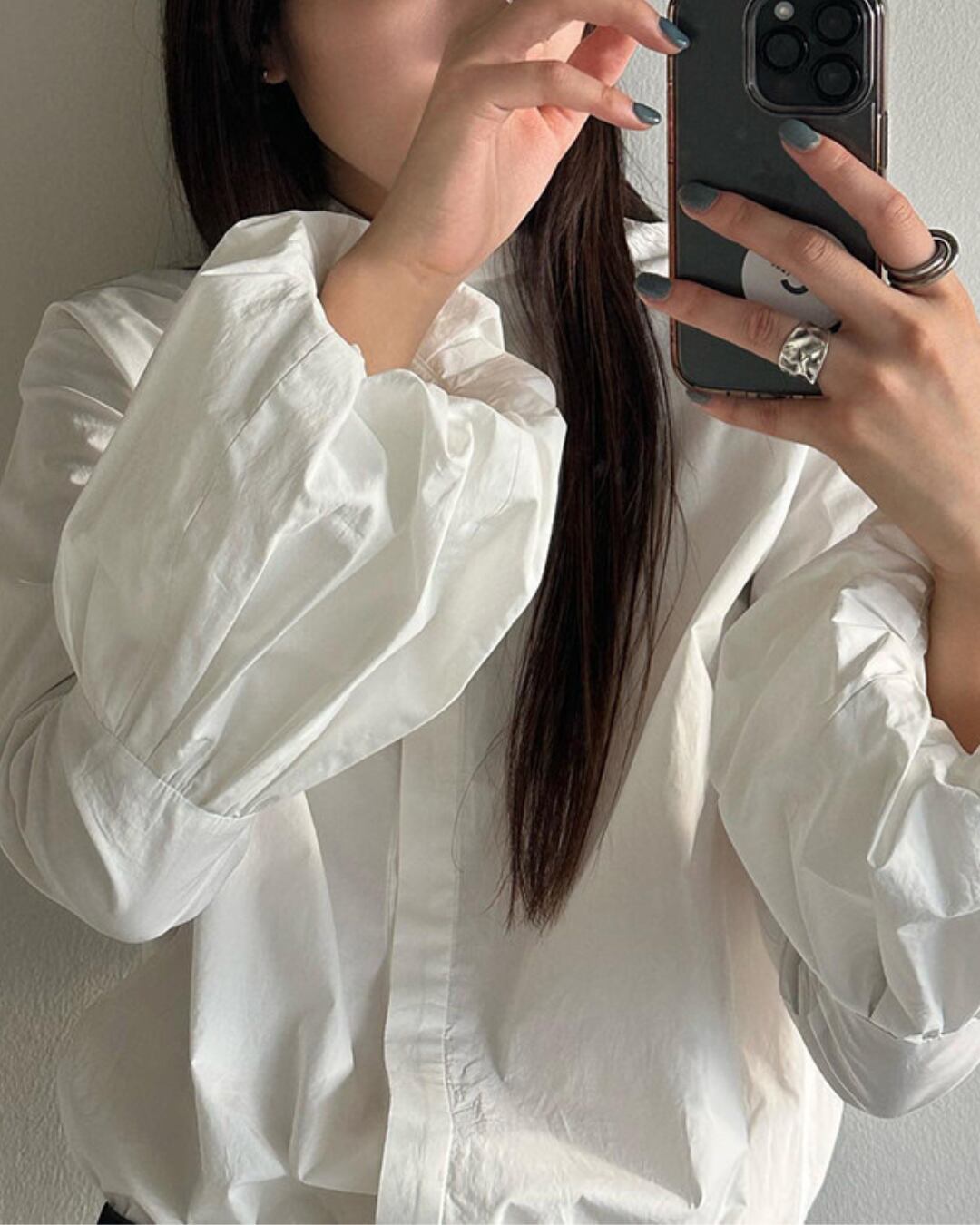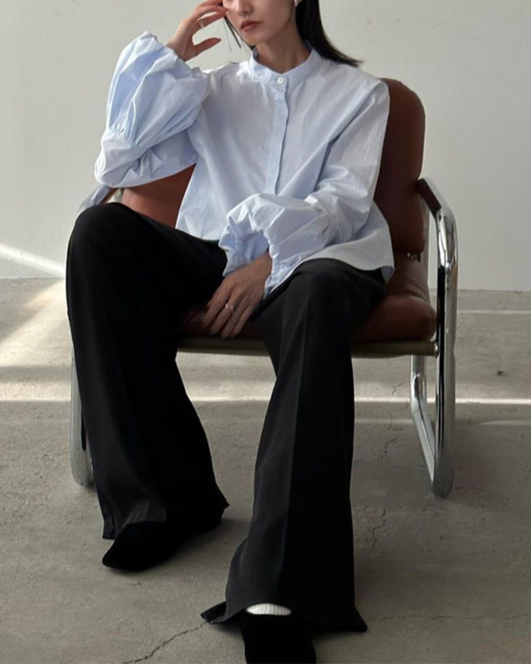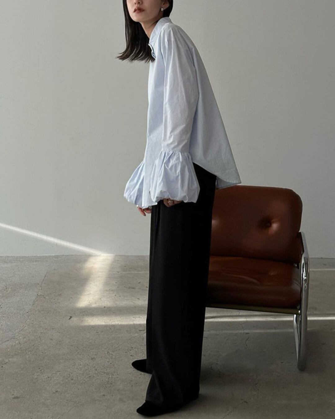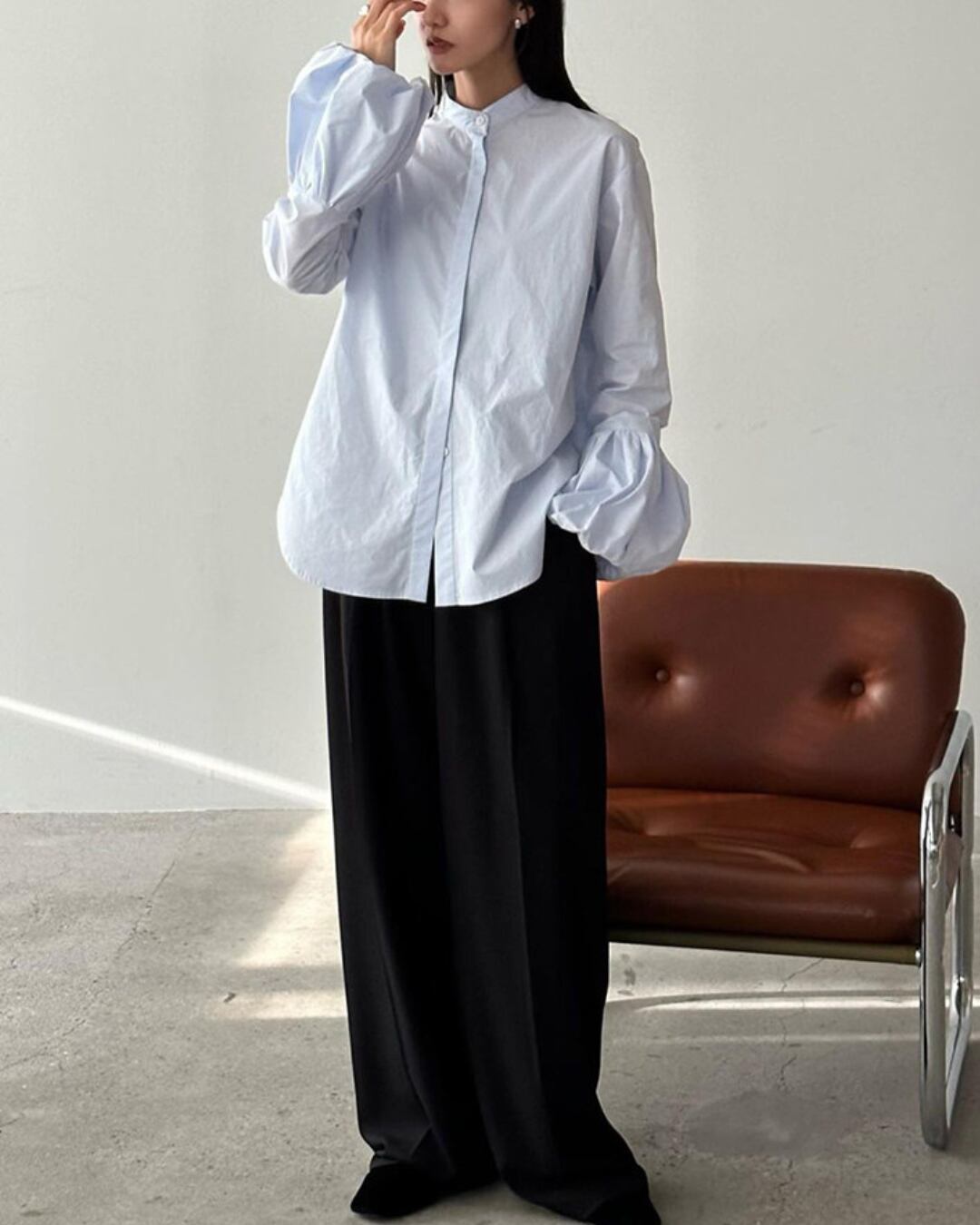 #バルーンスリーブ #ボリューム袖 #コットンブラウス #スタンドカラー #大人カジュアル #きれいめコーデ