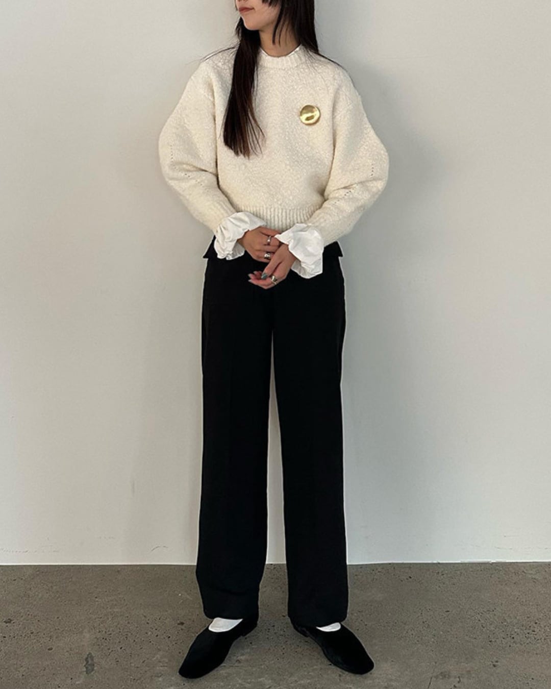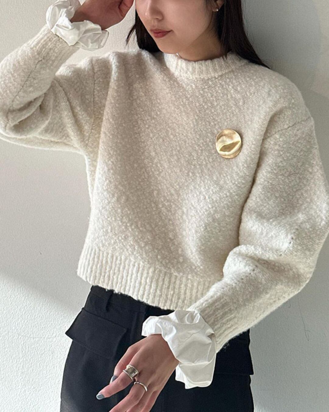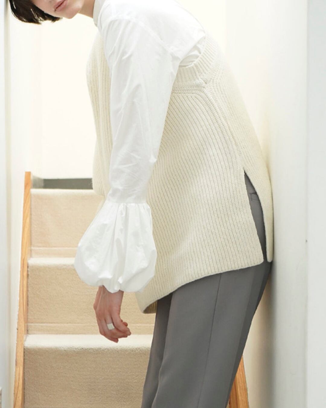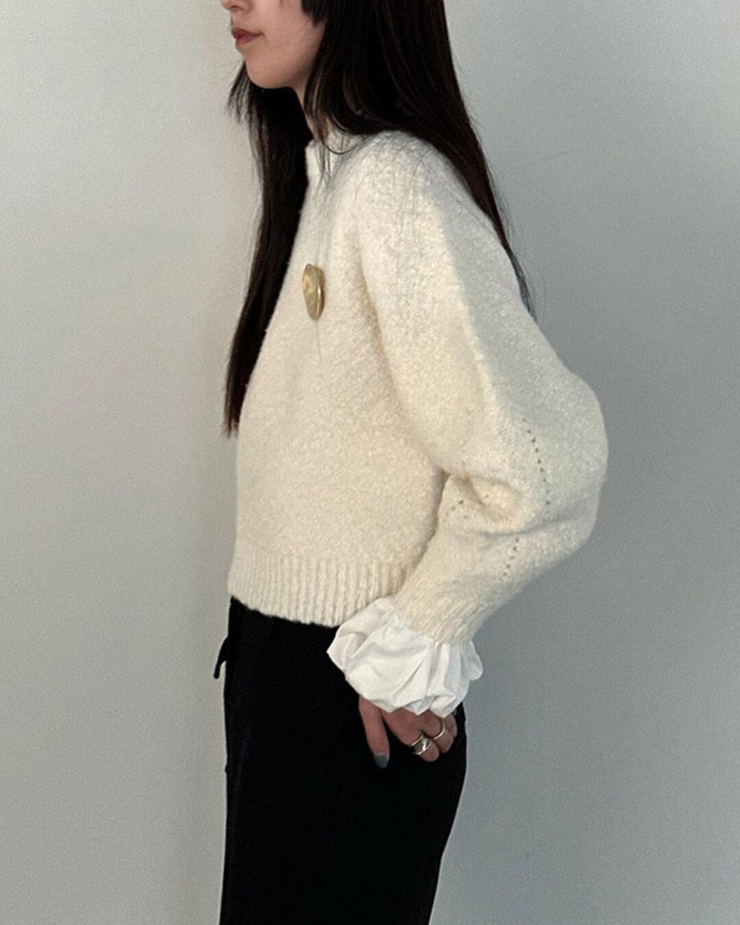 #バルーンスリーブ #ボリューム袖 #コットンブラウス #スタンドカラー #大人カジュアル #きれいめコーデ