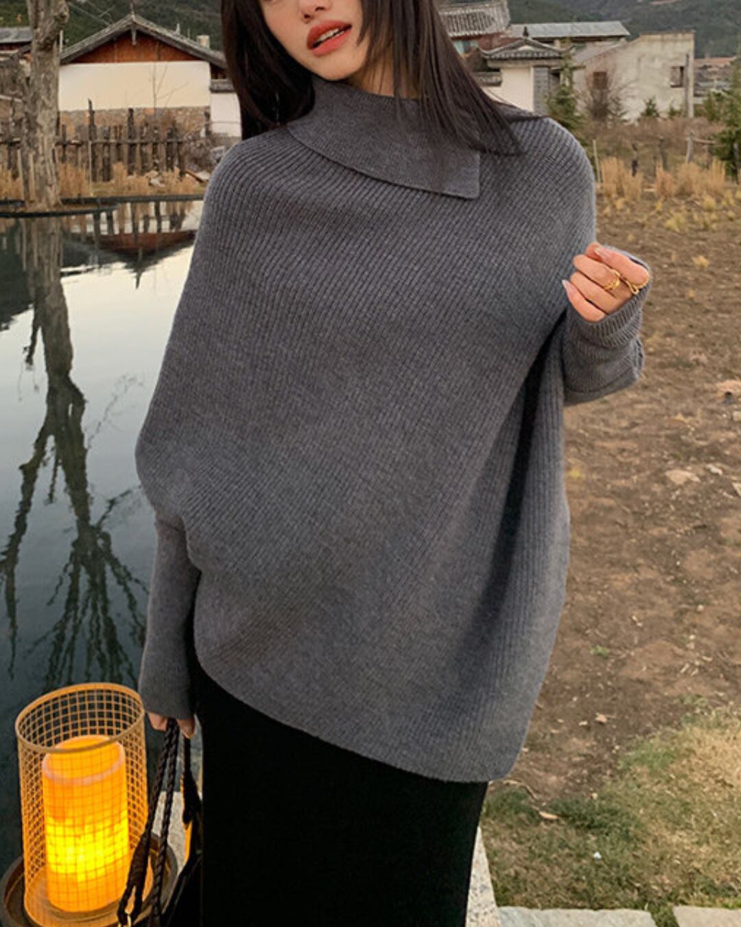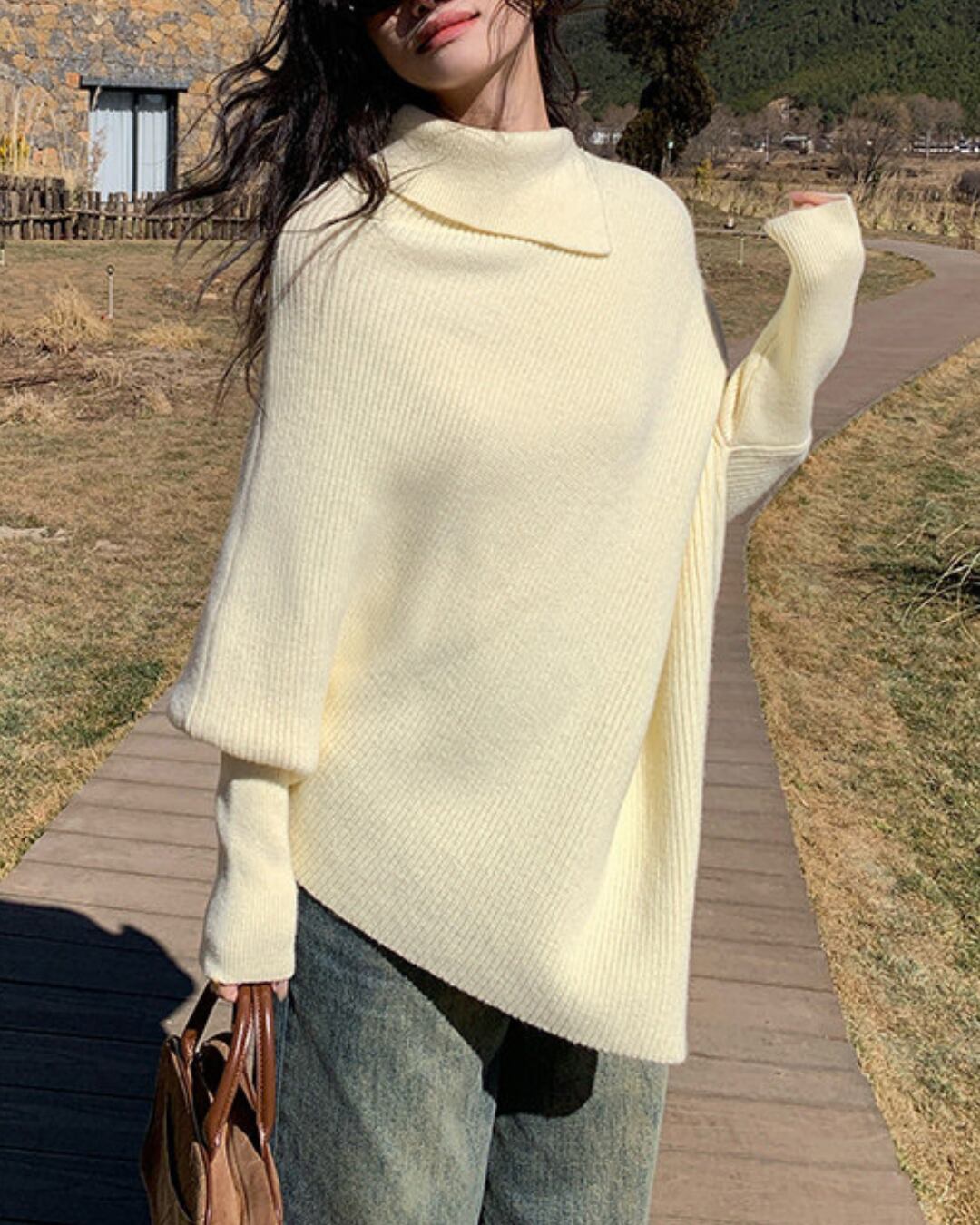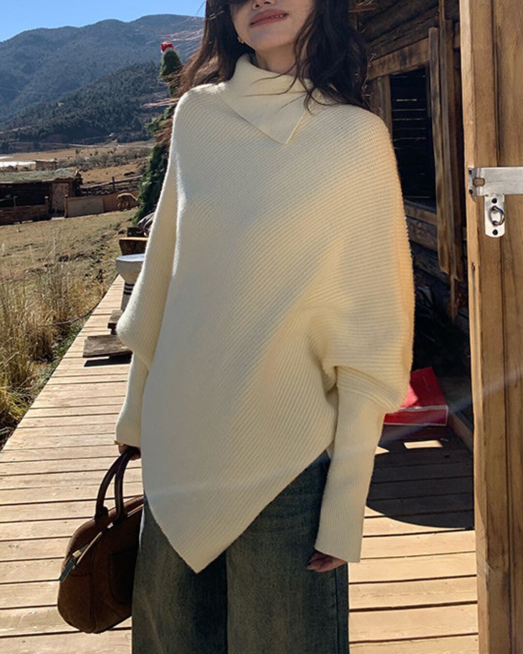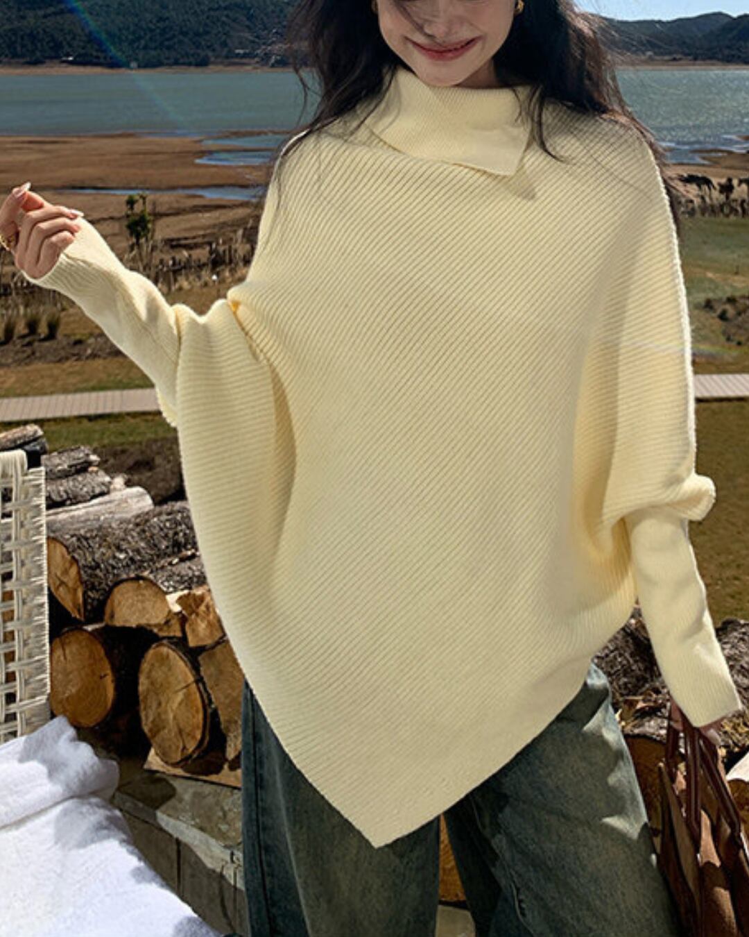 #ドルマンニット #ウール混ニット #ハイネックニット #体型カバー #大人カジュアル #冬コーデ