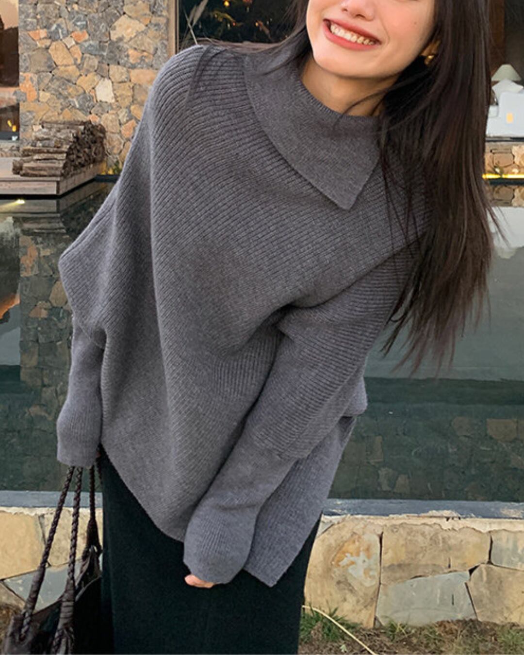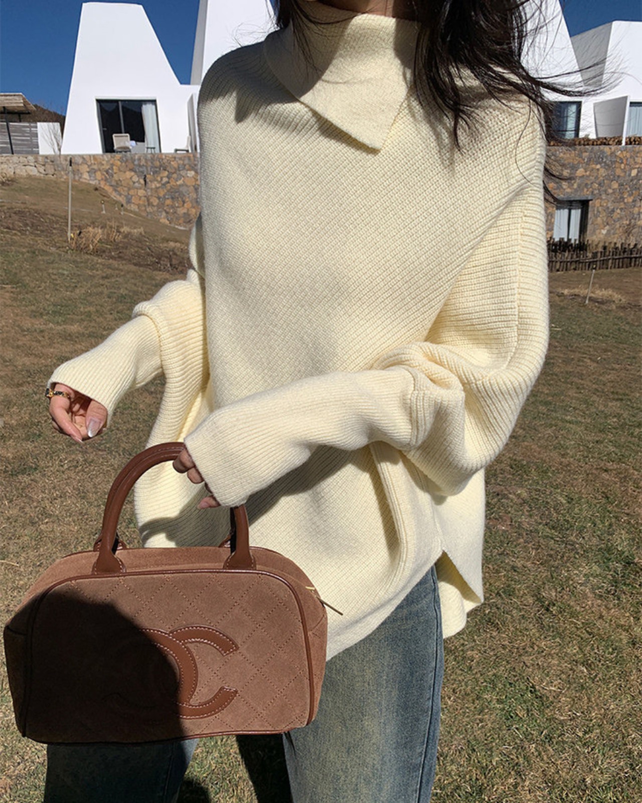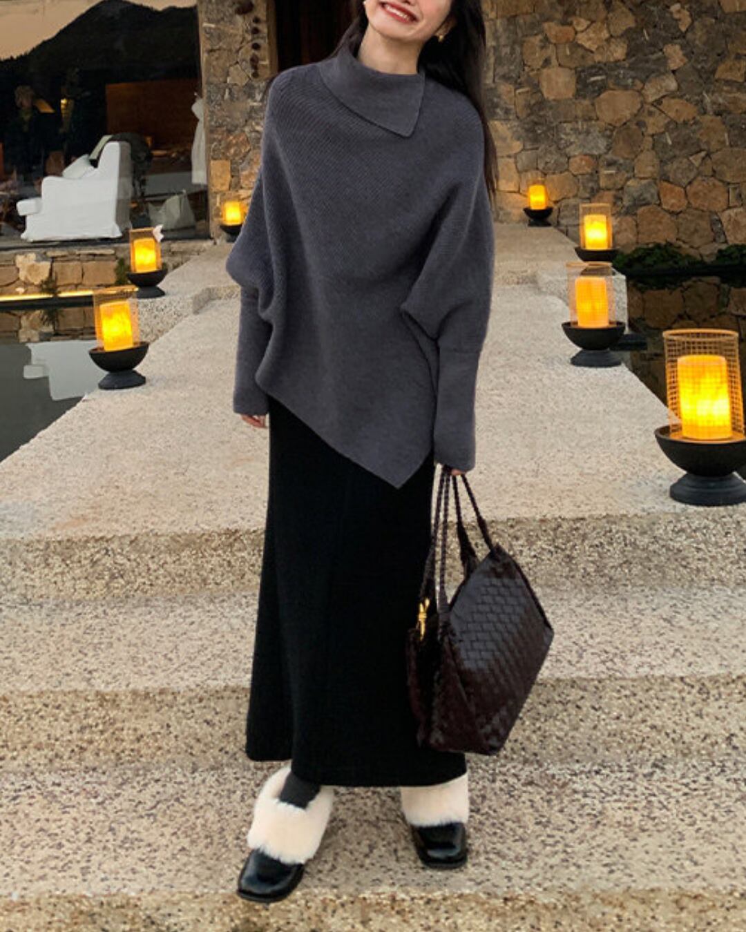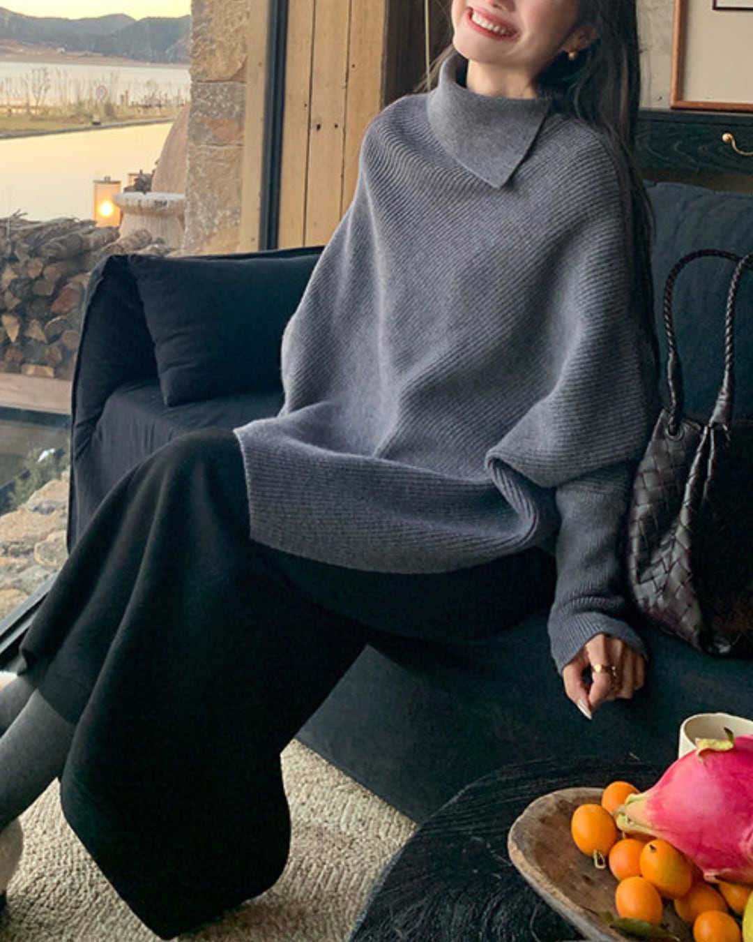 #ドルマンニット #ウール混ニット #ハイネックニット #体型カバー #大人カジュアル #冬コーデ