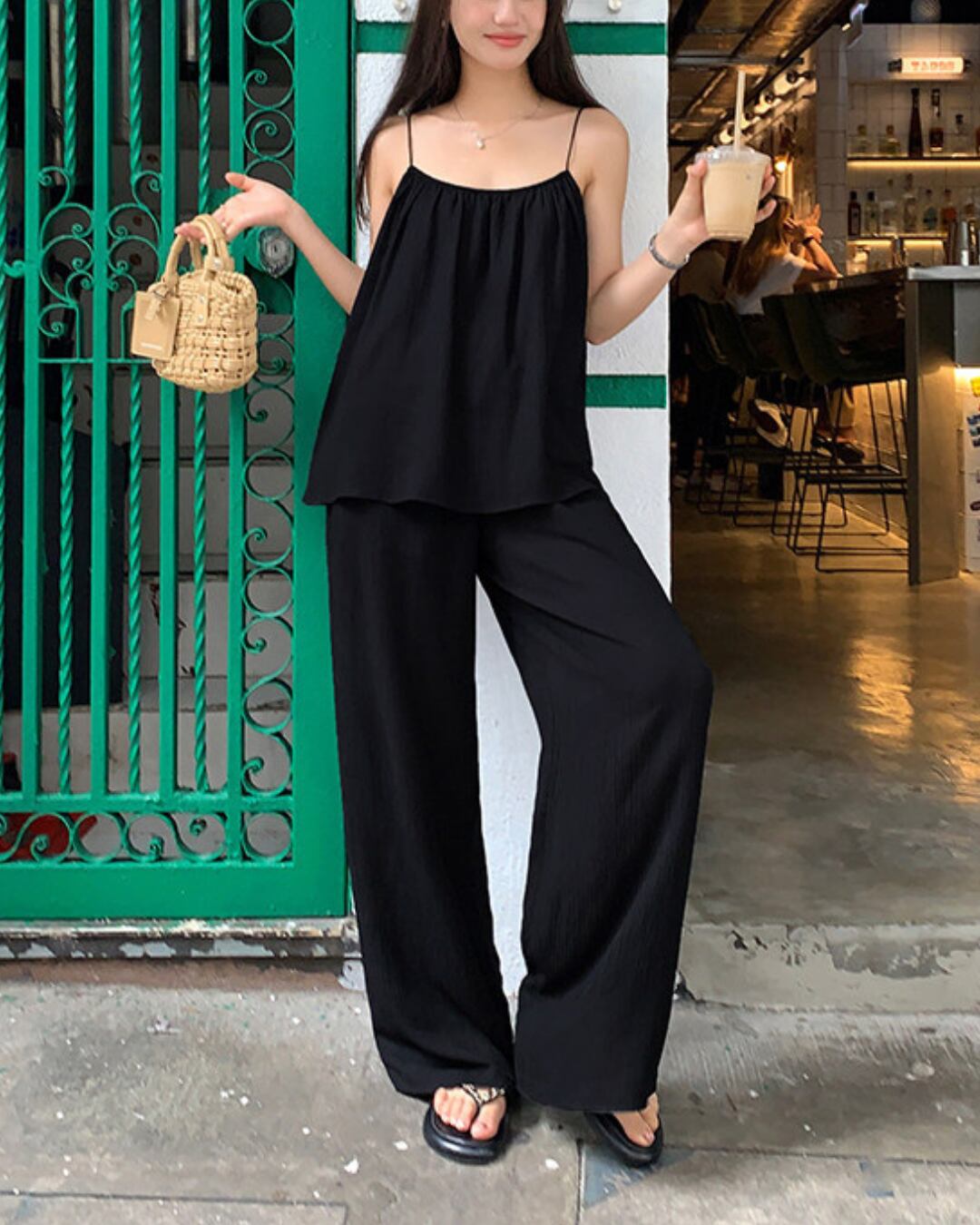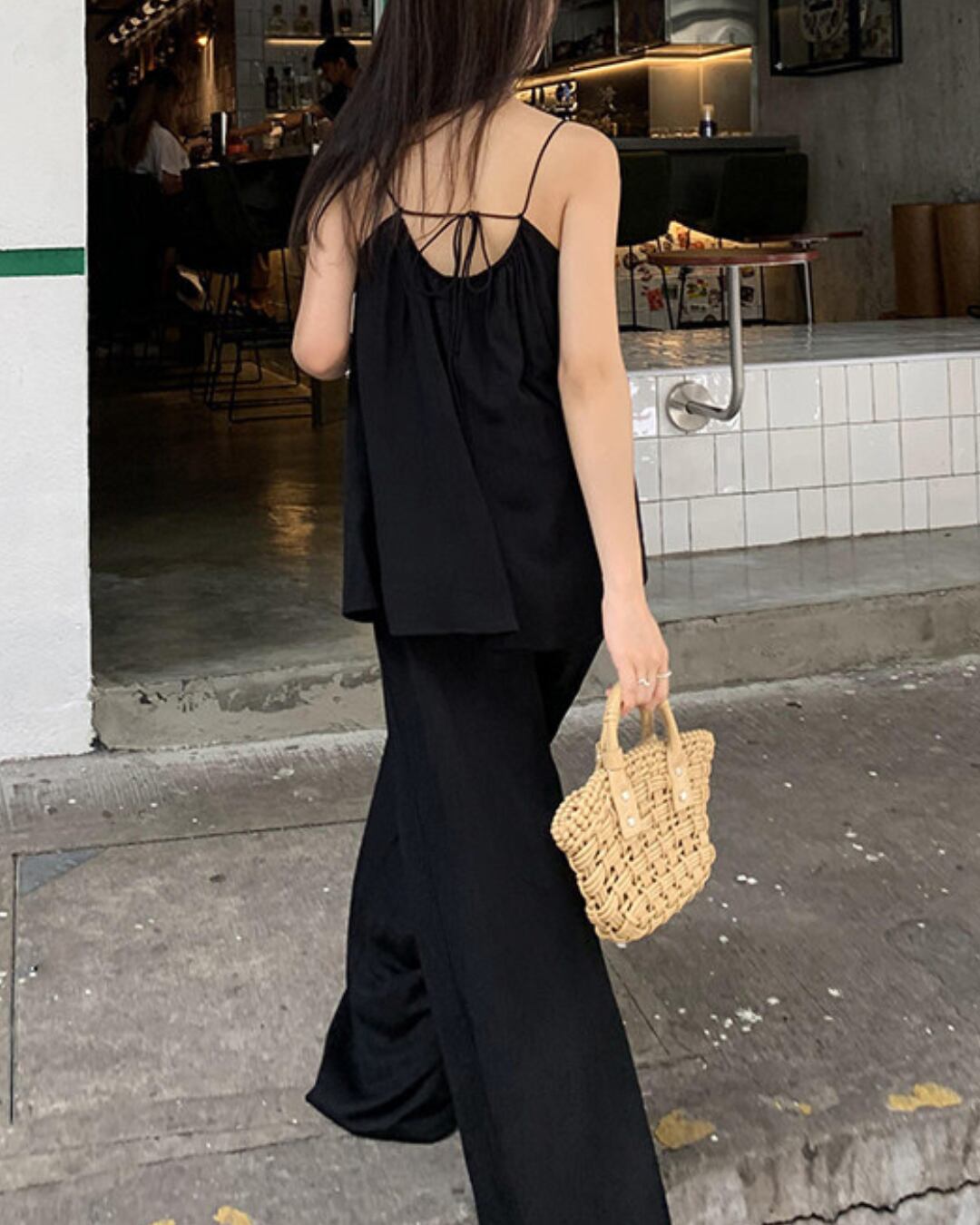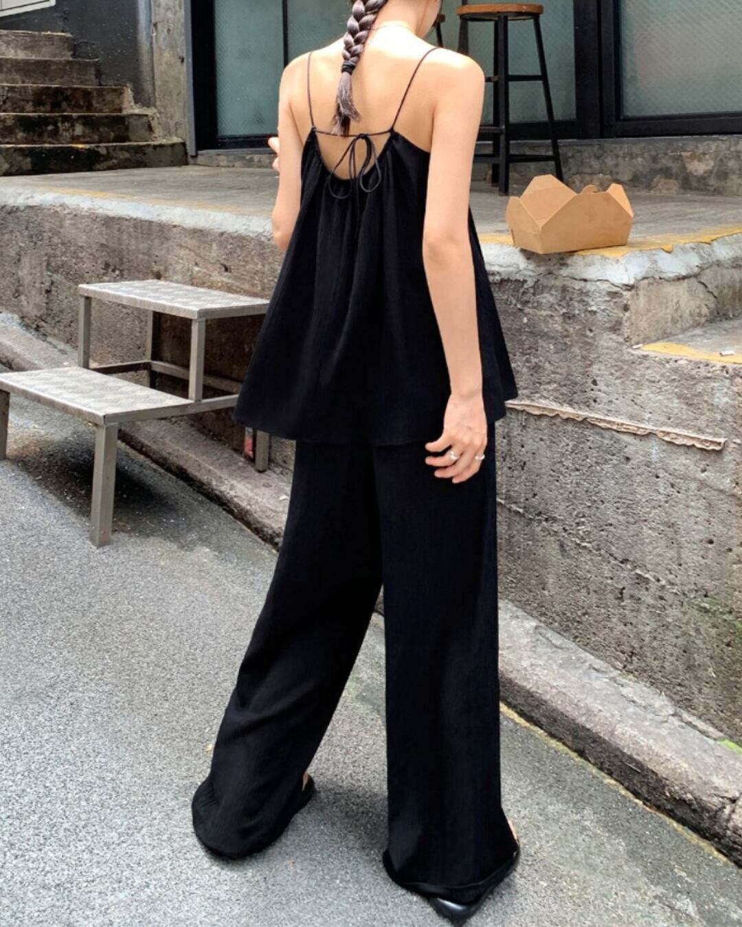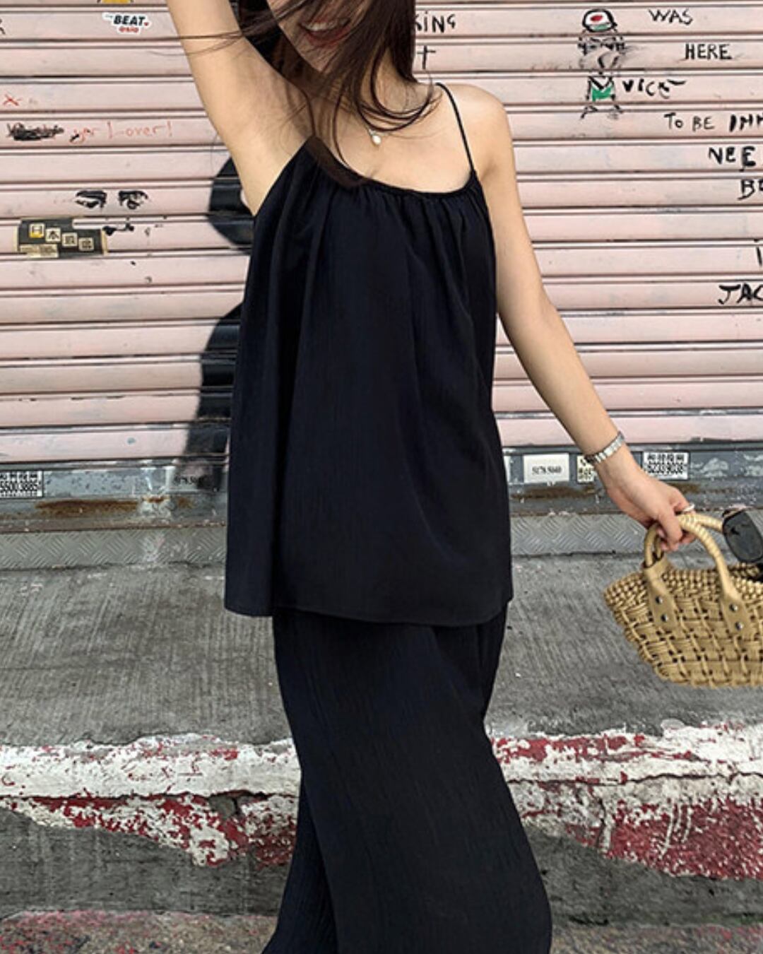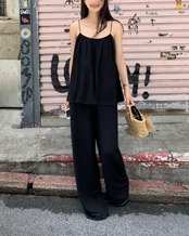 #セットアップ #キャミソール #ワイドパンツ #ブラックコーデ #リラックスコーデ #夏コーデ