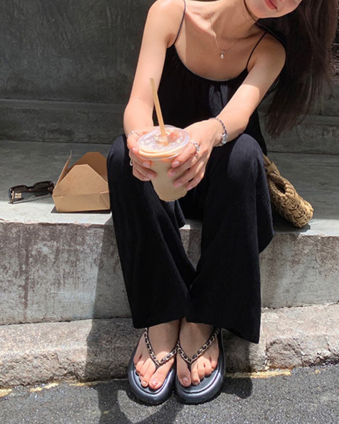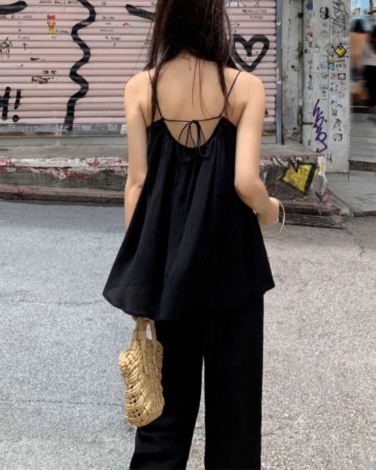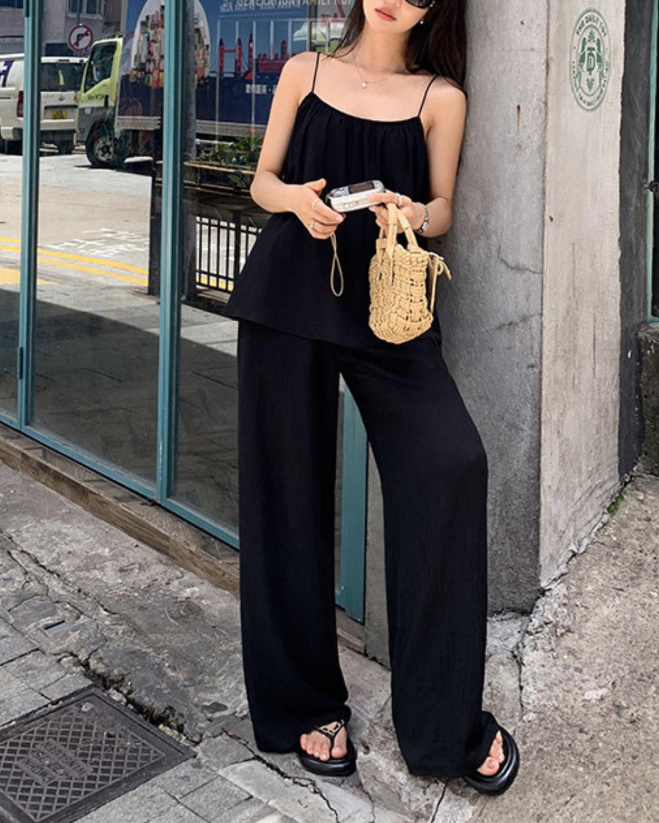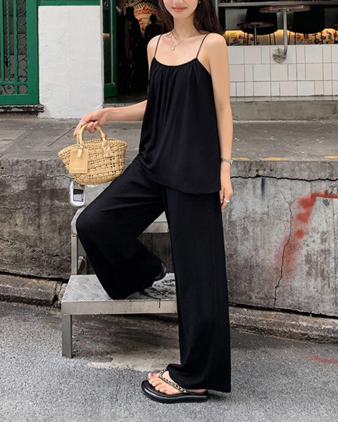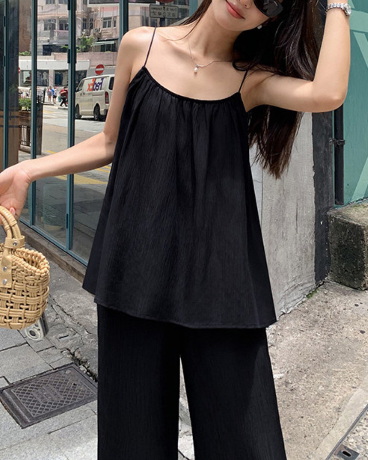 #セットアップ #キャミソール #ワイドパンツ #ブラックコーデ #リラックスコーデ #夏コーデ