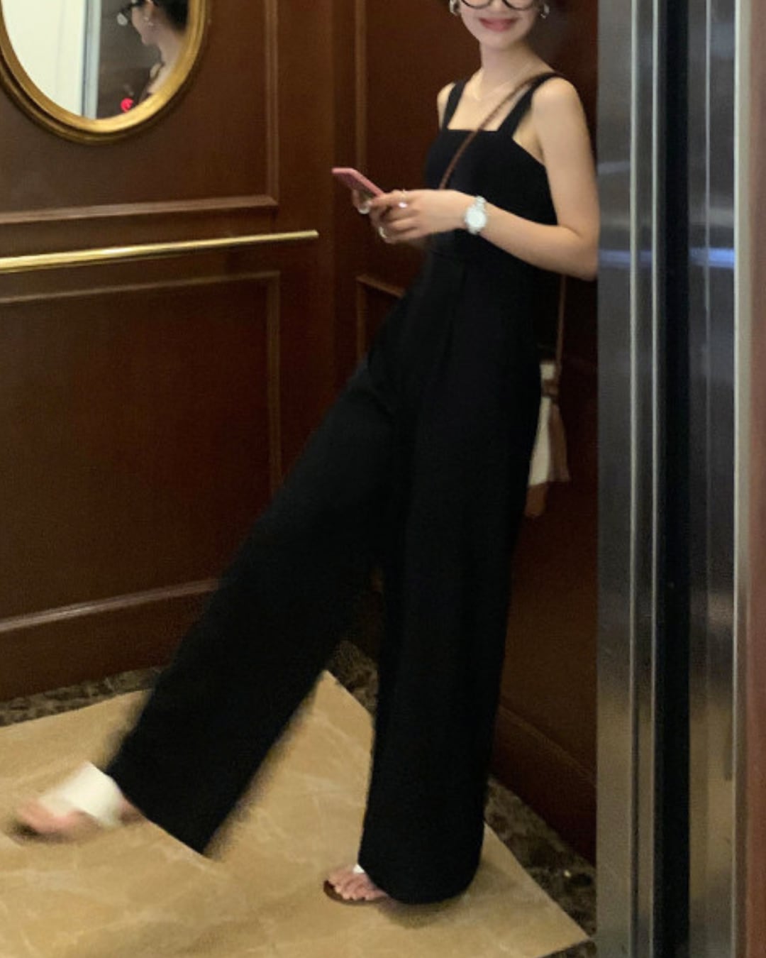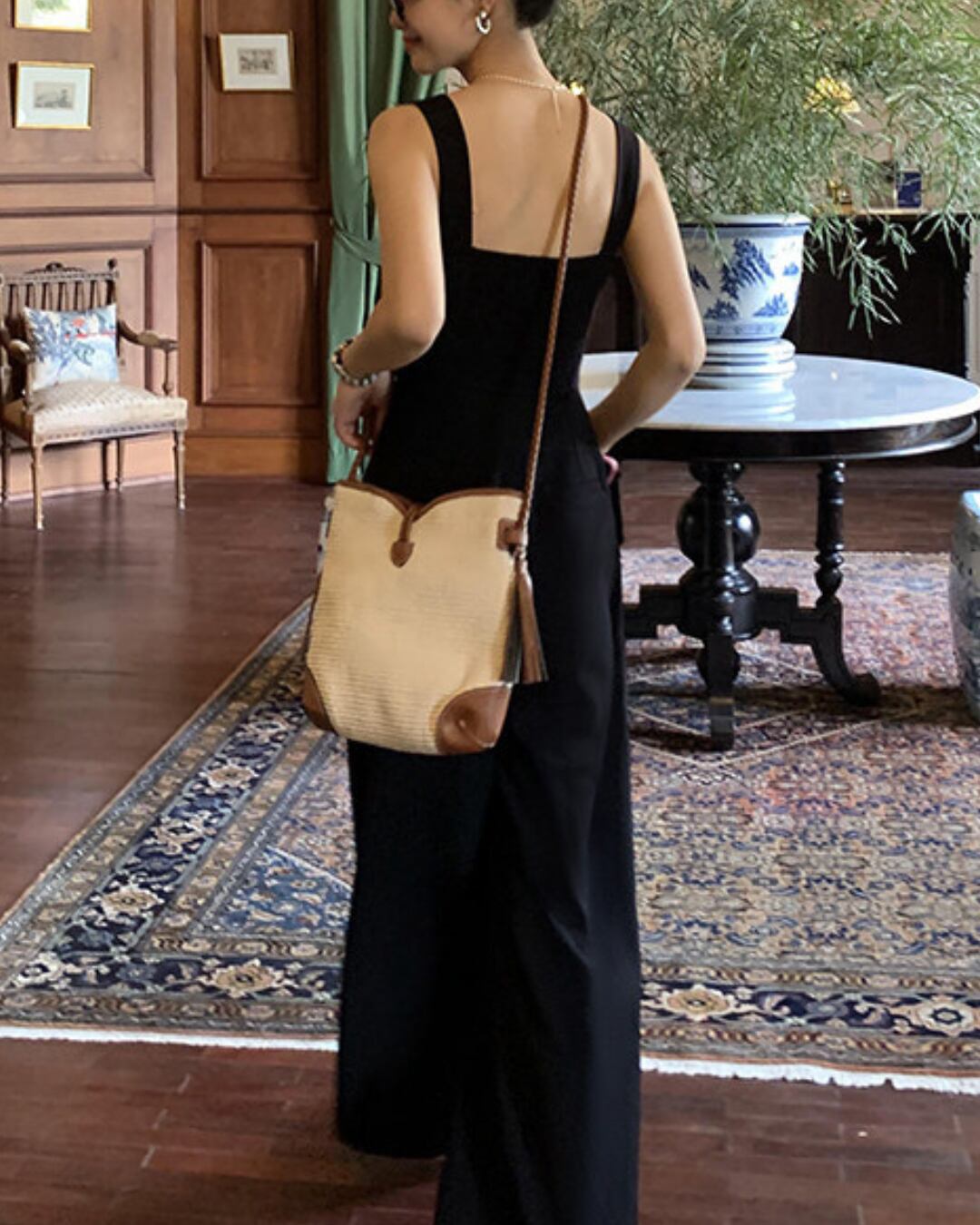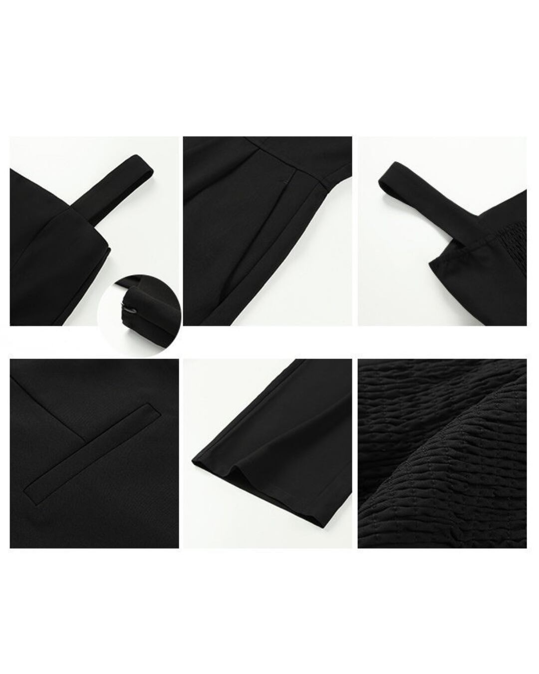 洗練されたシルエットが魅力のブラックオールインワン。すっきりとしたスクエアネックと程よく太めのストラップが上品な印象を演出します。ウエスト切替デザインでスタイルアップ効果があり、裾に向かって広がるワイドシルエットが美脚ラインを叶える一着。サイドファスナー仕様で着脱しやすく、バックはシャーリングデザインで程よくフィット。裏地付きで安心感のある着心地です。きれいめにもカジュアルにも着回せる、大人のためのブラックアイテムです。