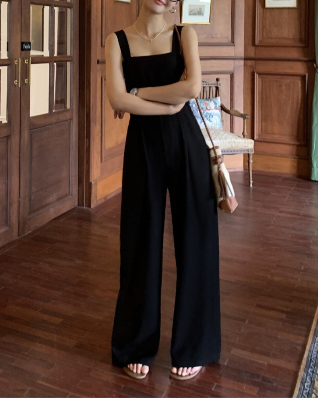 #オールインワン #ブラックコーデ #スクエアネック #ワイドシルエット #大人コーデ #きれいめスタイル