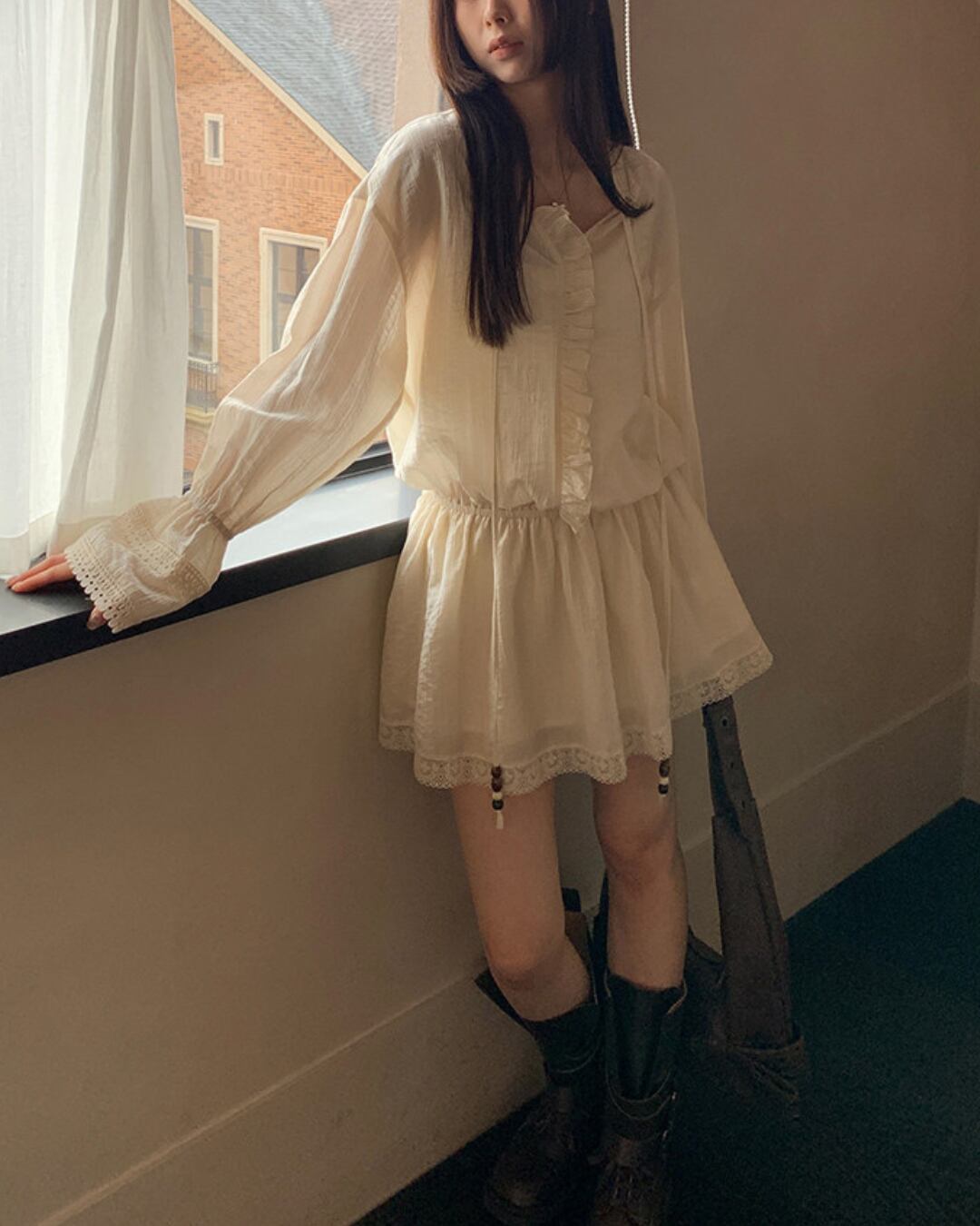 #ミニワンピース #レースワンピース #フリルワンピース #リボンデザイン #韓国ファッション #フェミニンコーデ #大人ガーリー